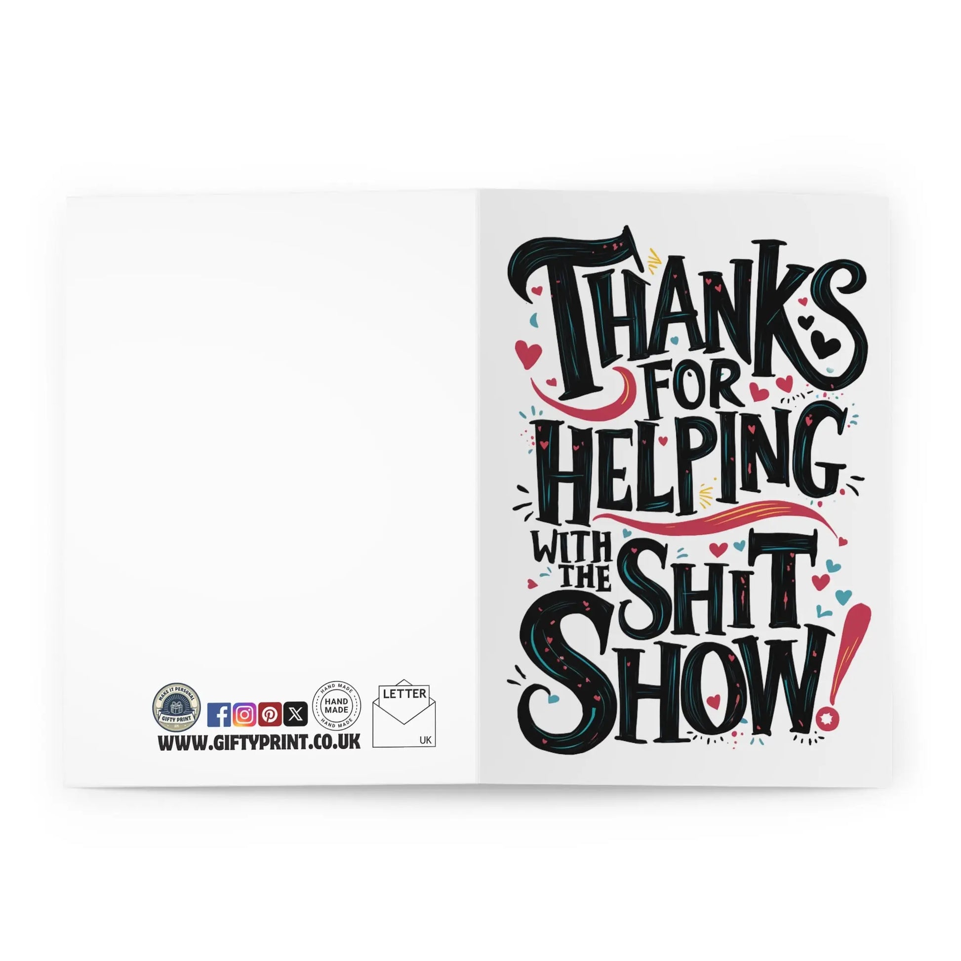 Funny Thank You Card, Show your appreciation with this fun and quirky Thank You card. Perfect for those who helped you through the shit show! Let them know how much their support means to you. No need to take life too seriously - send a smile and a laugh their way!
