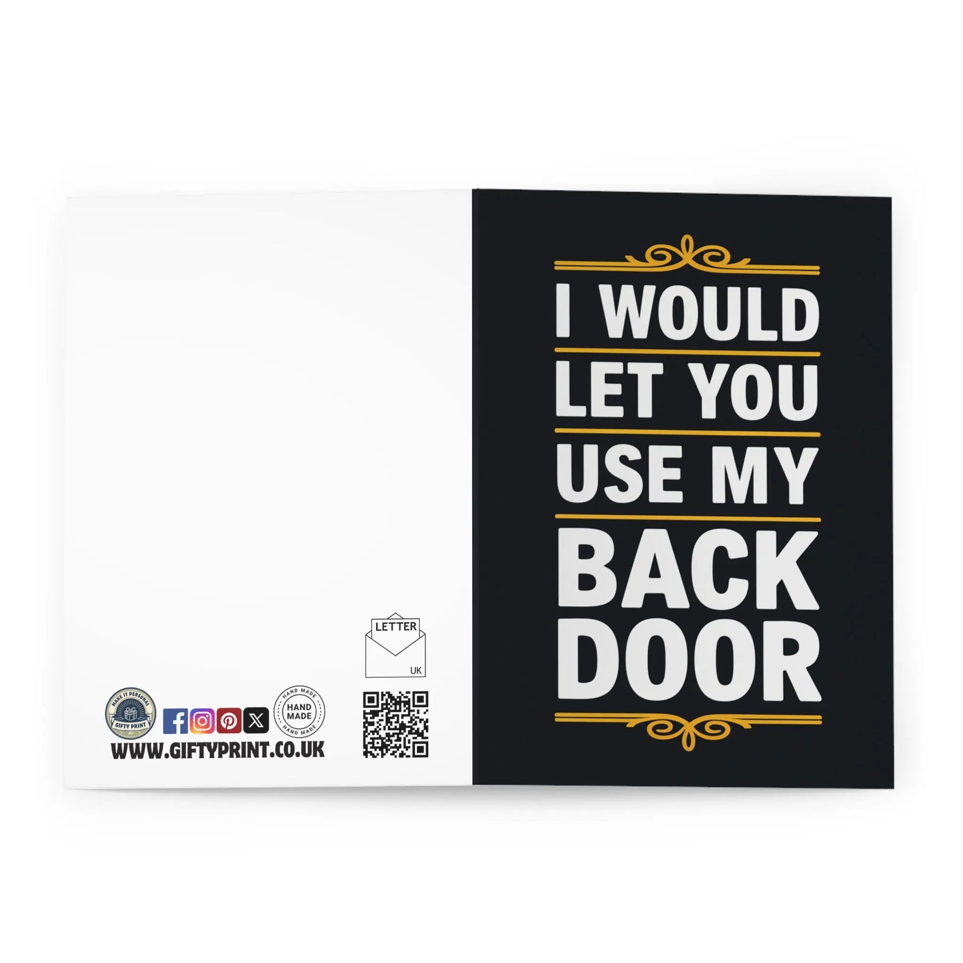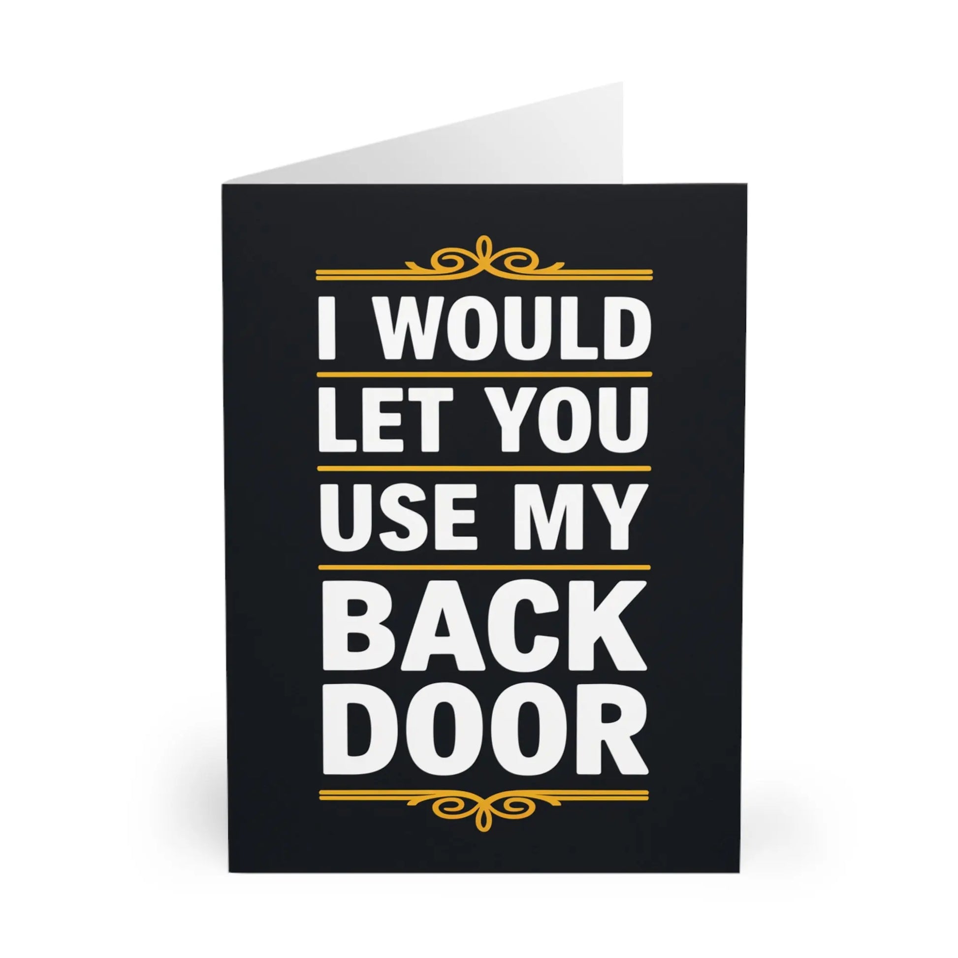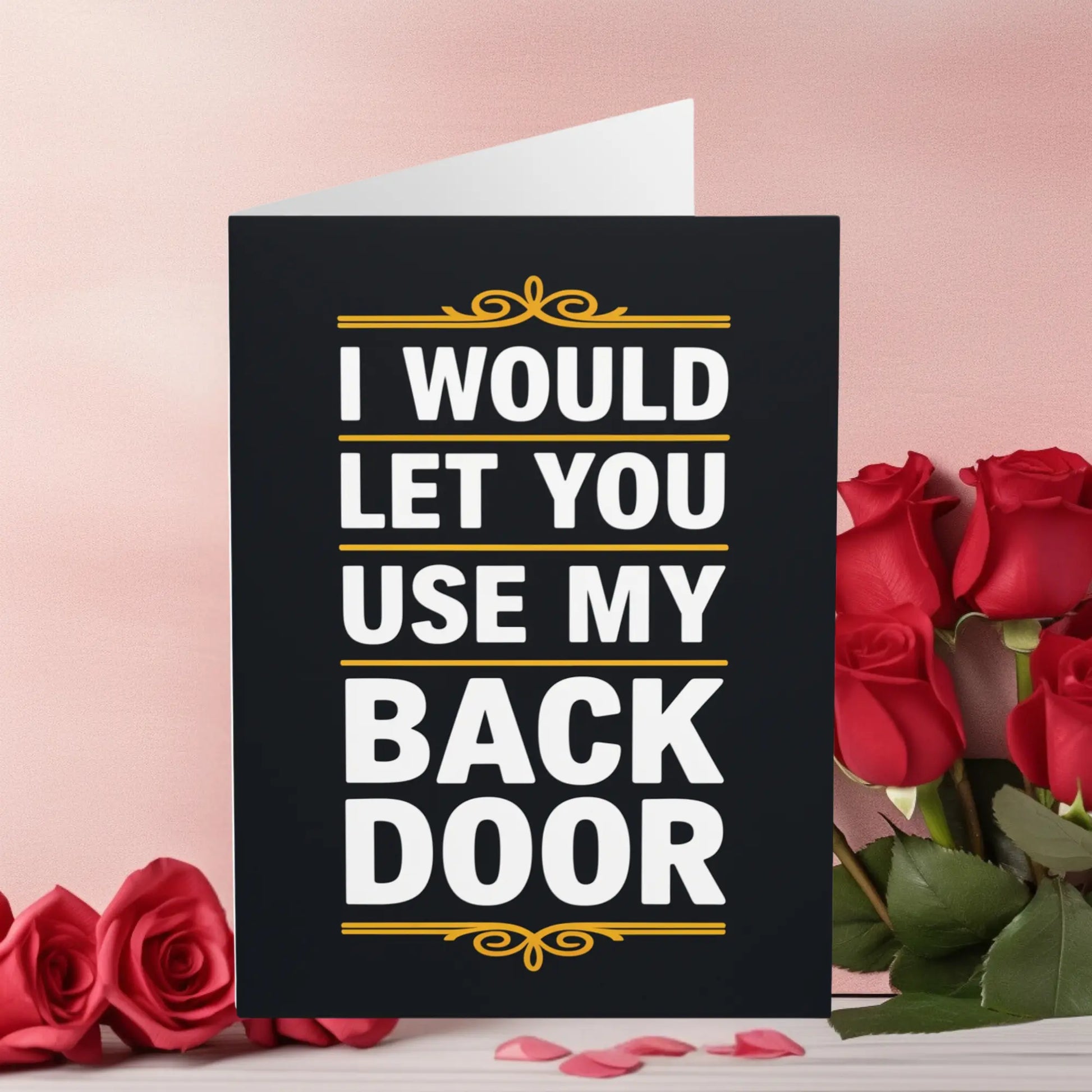 Funny Valentines Day Card, Looking for a cheeky, playful way to express your love this Valentine's Day? Look no further than this card with a double meaning - "I Would Let You Use My Back Door". With a playful tone and a subtle hint, this card is sure to make your significant other laugh and feel special.