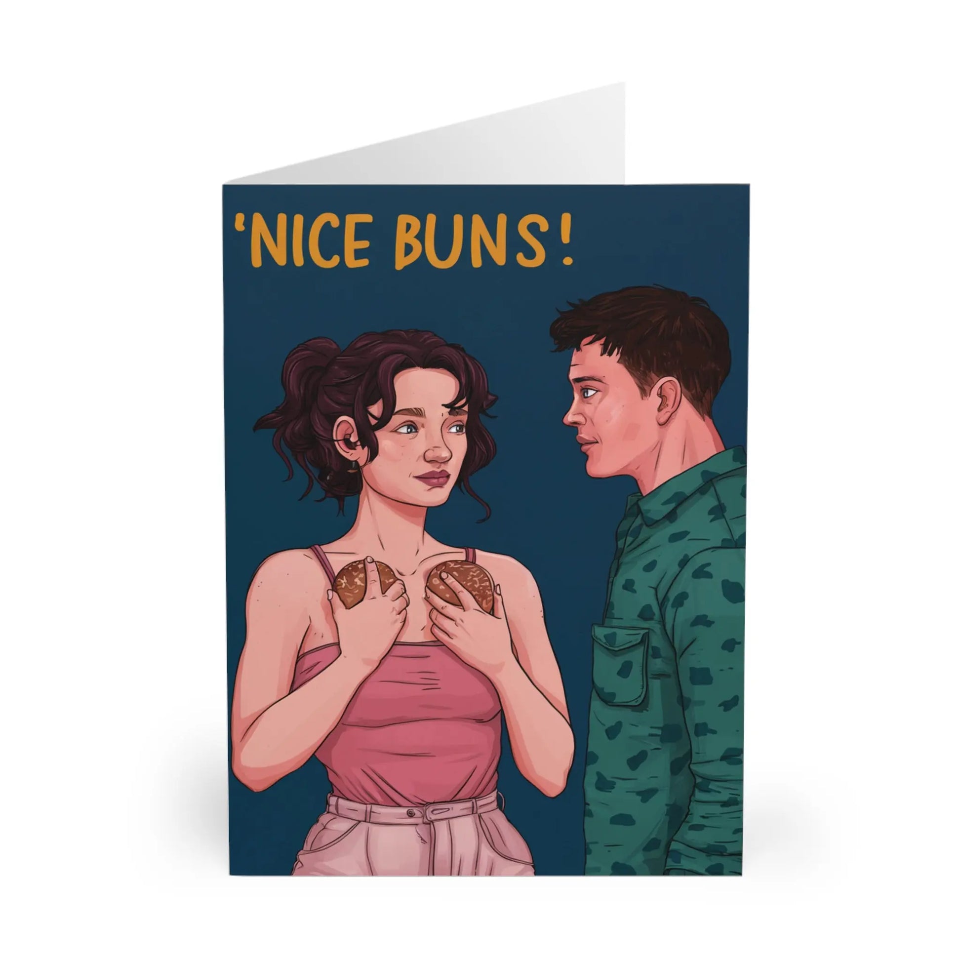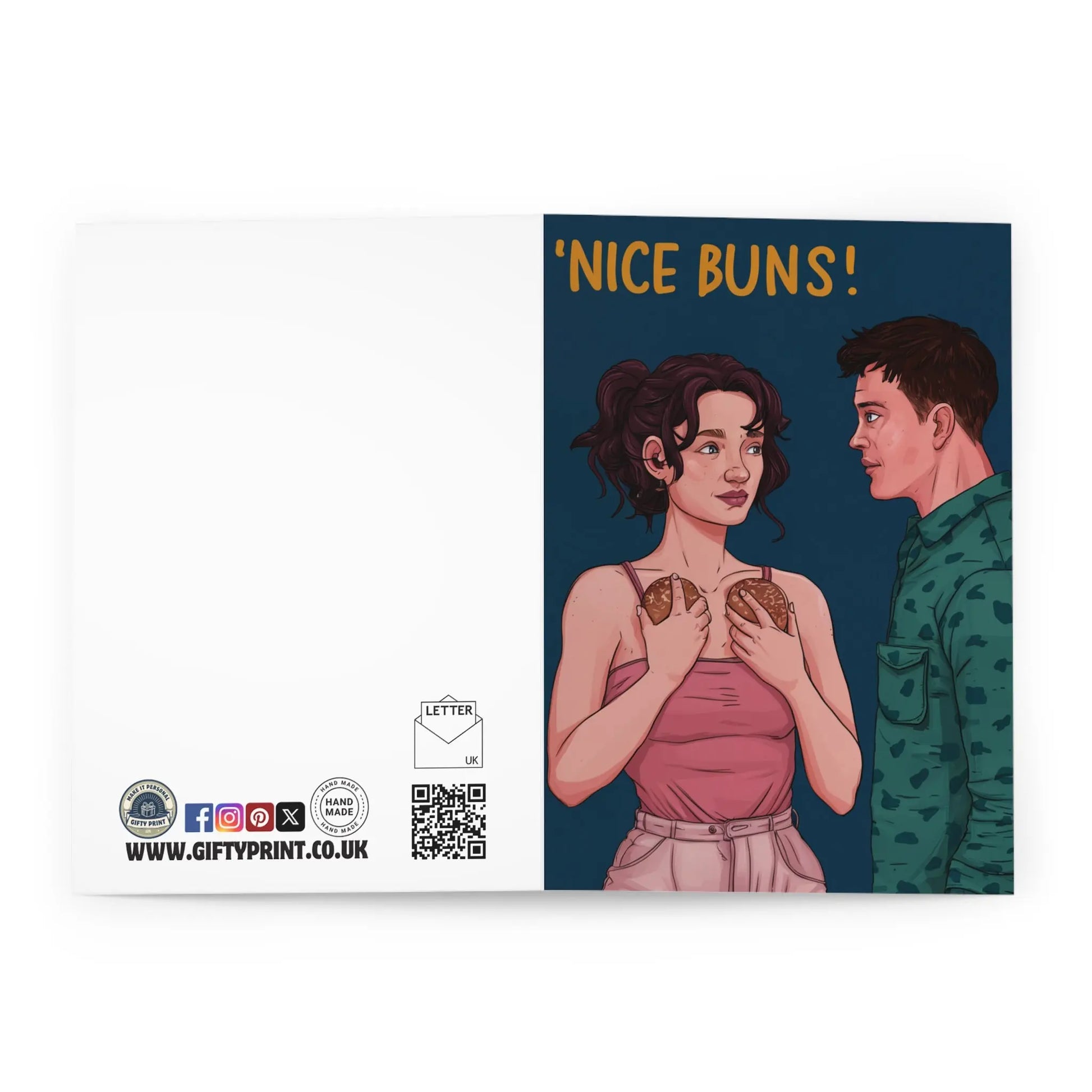 Funny Valentines Day Card, Send a playful and cheeky message this Valentine's Day with our Funny Valentines Day Card Nice Buns. This humorous card features a punny phrase that will surely make your significant other laugh. Perfect for adding some fun and humour to your love-filled day.