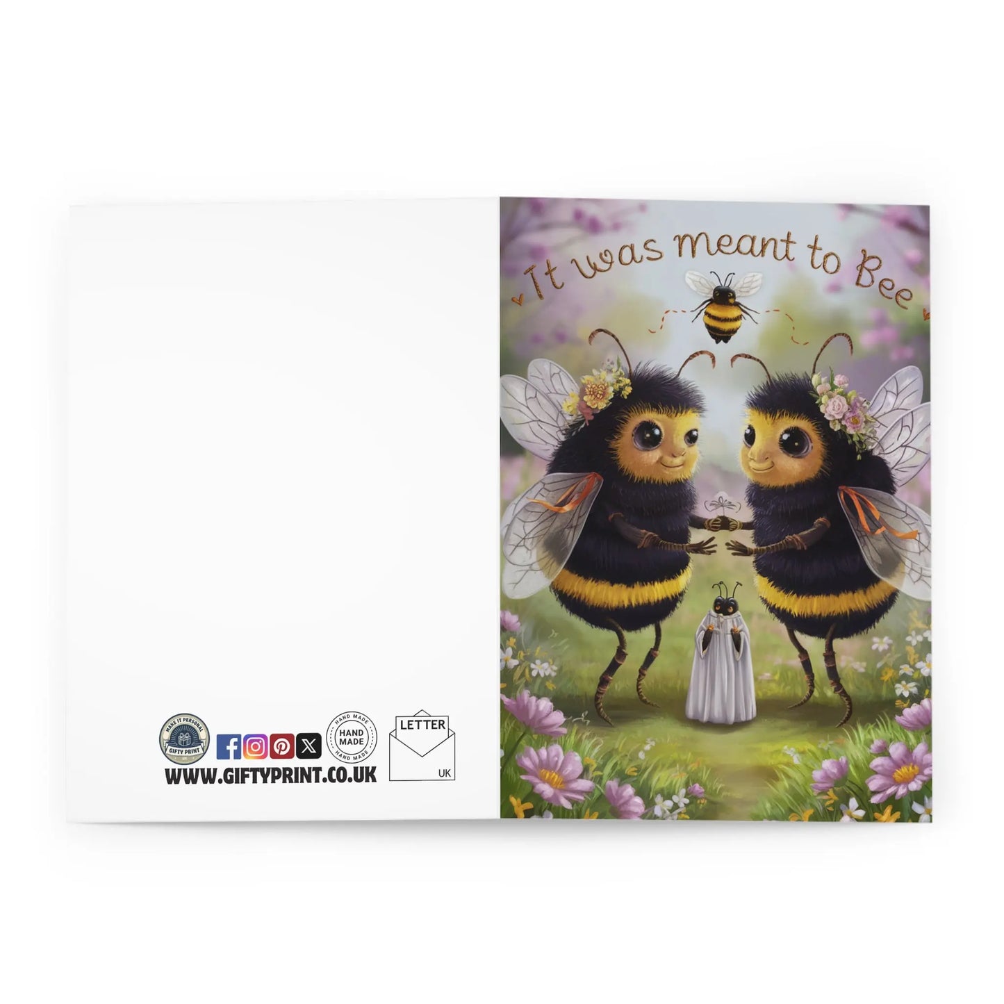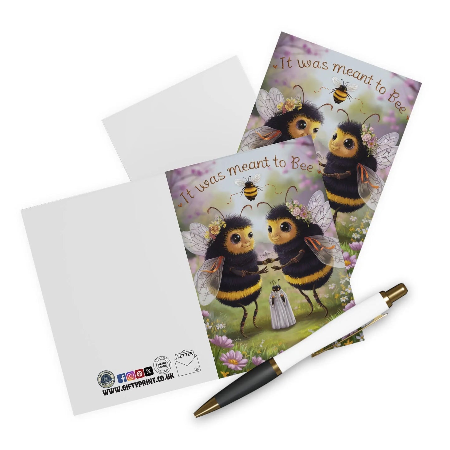 Funny Wedding Card, Celebrate their "bee"-autiful love with this charming wedding card featuring adorable bees and the punny phrase "It Was Meant To Bee". Perfect for couples who don't take themselves too seriously but are serious about their love.