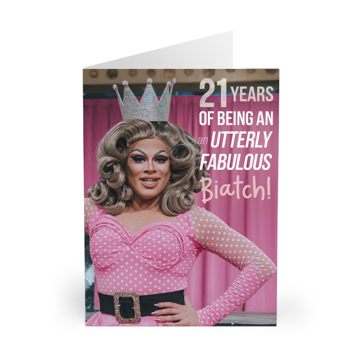 Celebrate a fabulous 21 years with our Gay 21st Birthday Card! Show your pride and joy with this card that reads "21 Years of Being an Utterly Fabulous Biatch". Perfect for any LGBTQ+ member, this card is a bold and fun way to celebrate a milestone birthday.