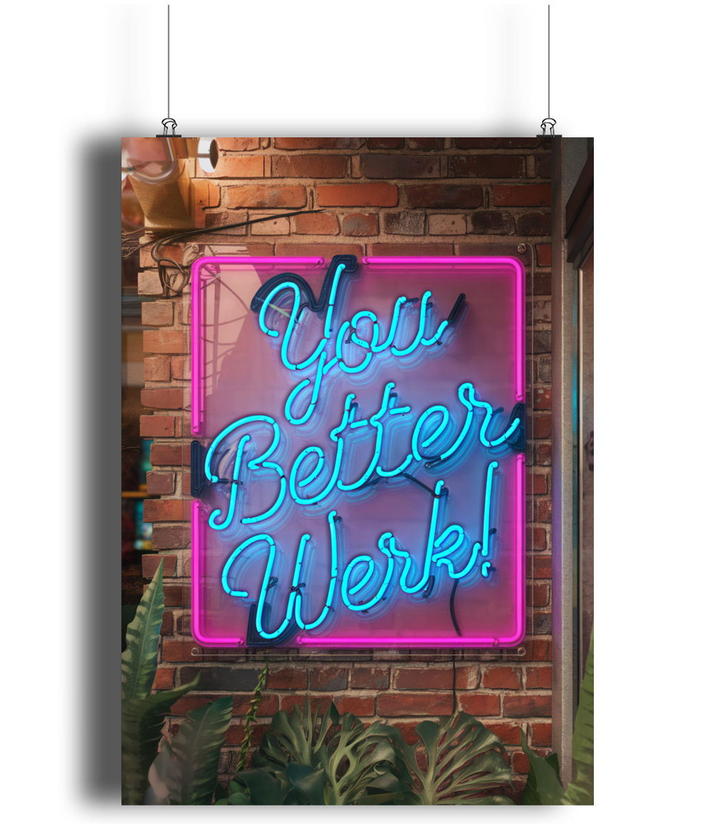 Gay Art Print , Get ready to slay with this Gay Art Print Neon You Better Werk! Featuring bold neon colors and a playful design, this art print is the perfect addition to any space. Show off your pride and add a touch of whimsy to your home or office. (Yaaas queen, work it!)