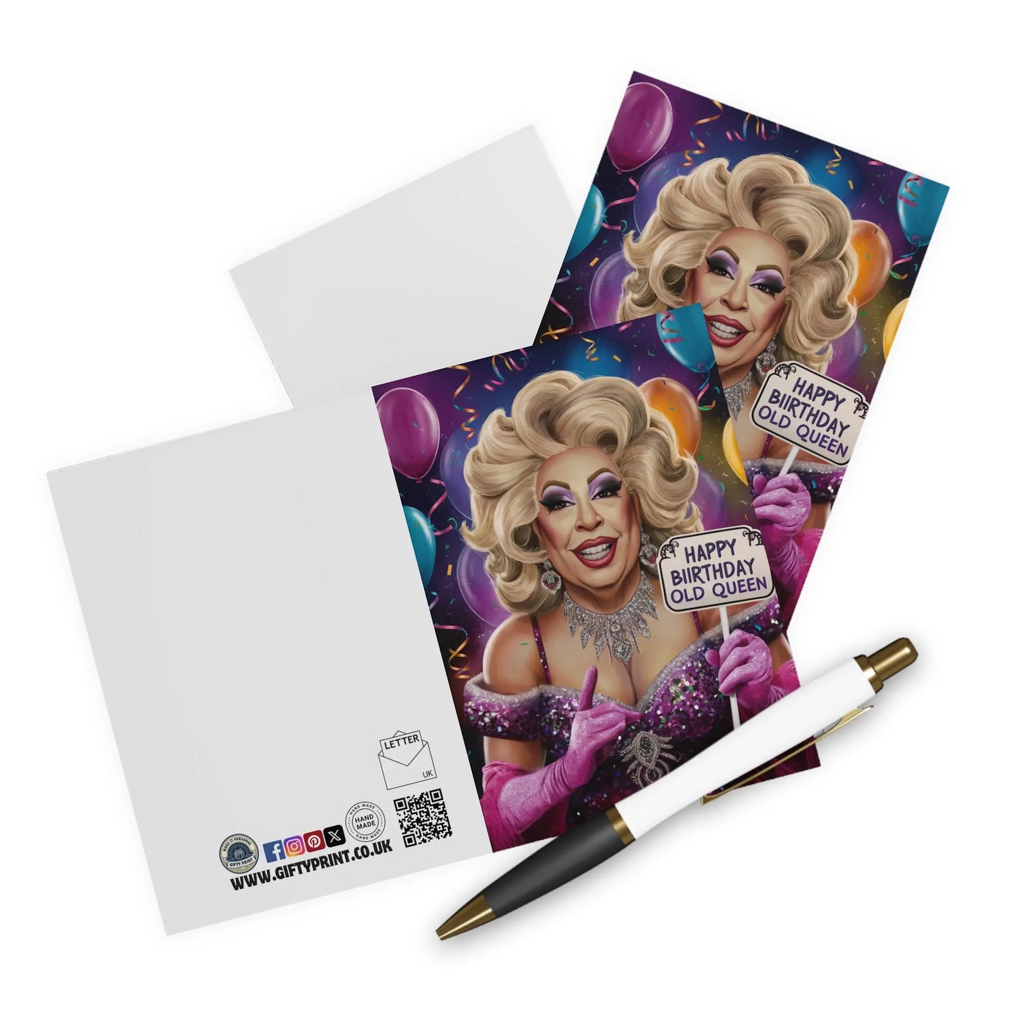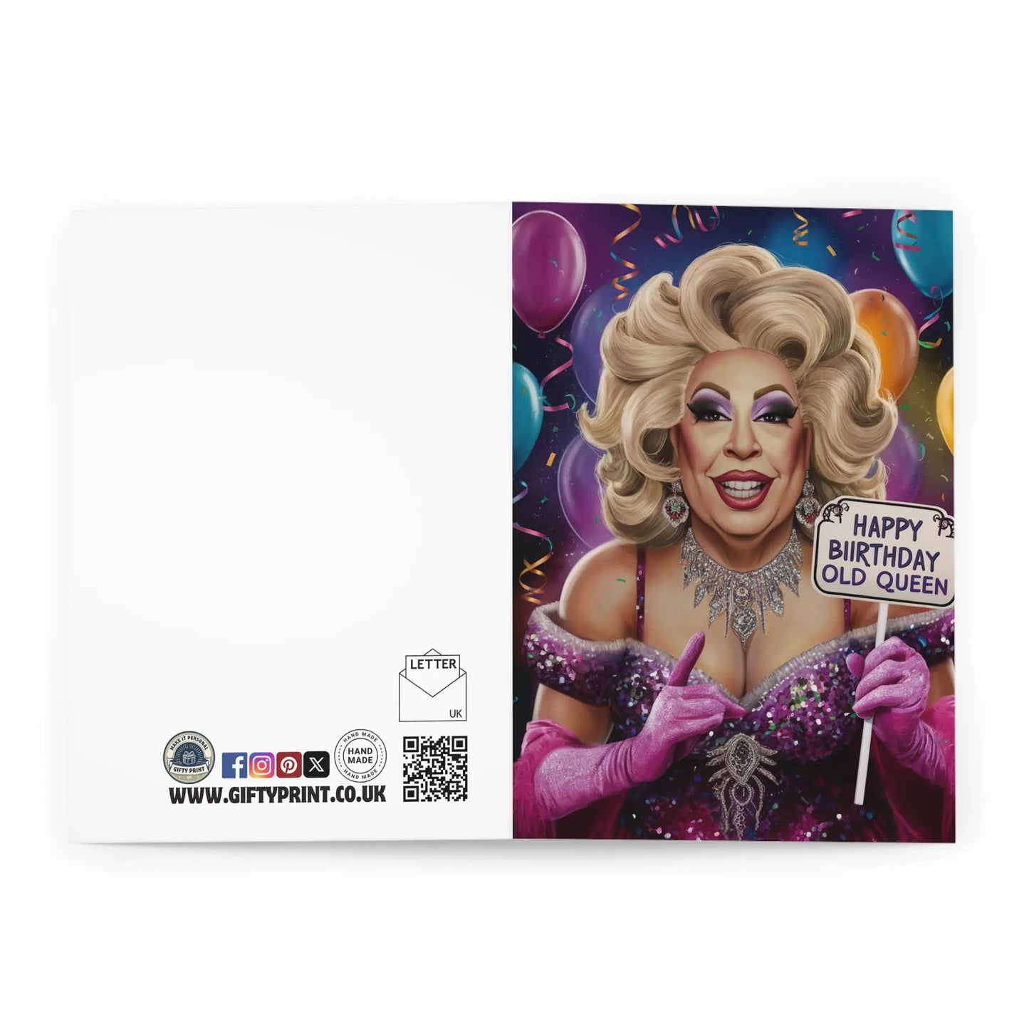 Gay Birthday Card, Celebrate your favourite old queen's special day with our Gay Birthday Card! Featuring a playful design and humorous message, it's the perfect way to show your love and make them feel fabulous on their birthday. (Psst, it's also perfect for anyone with a good sense of humour and a love for word play!)