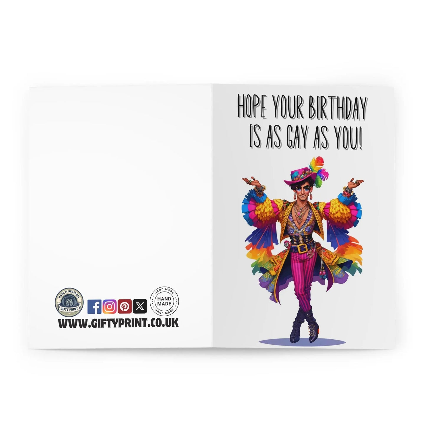 Gay Birthday Card, Celebrate your friend's birthday with this Gay Birthday Card! Let them know you hope their special day is as fabulous, colorful, and full of love as they are. Perfect for spreading cheer and showing your support for the LGBTQ+ community. (Extra points if they're extra gay!)
