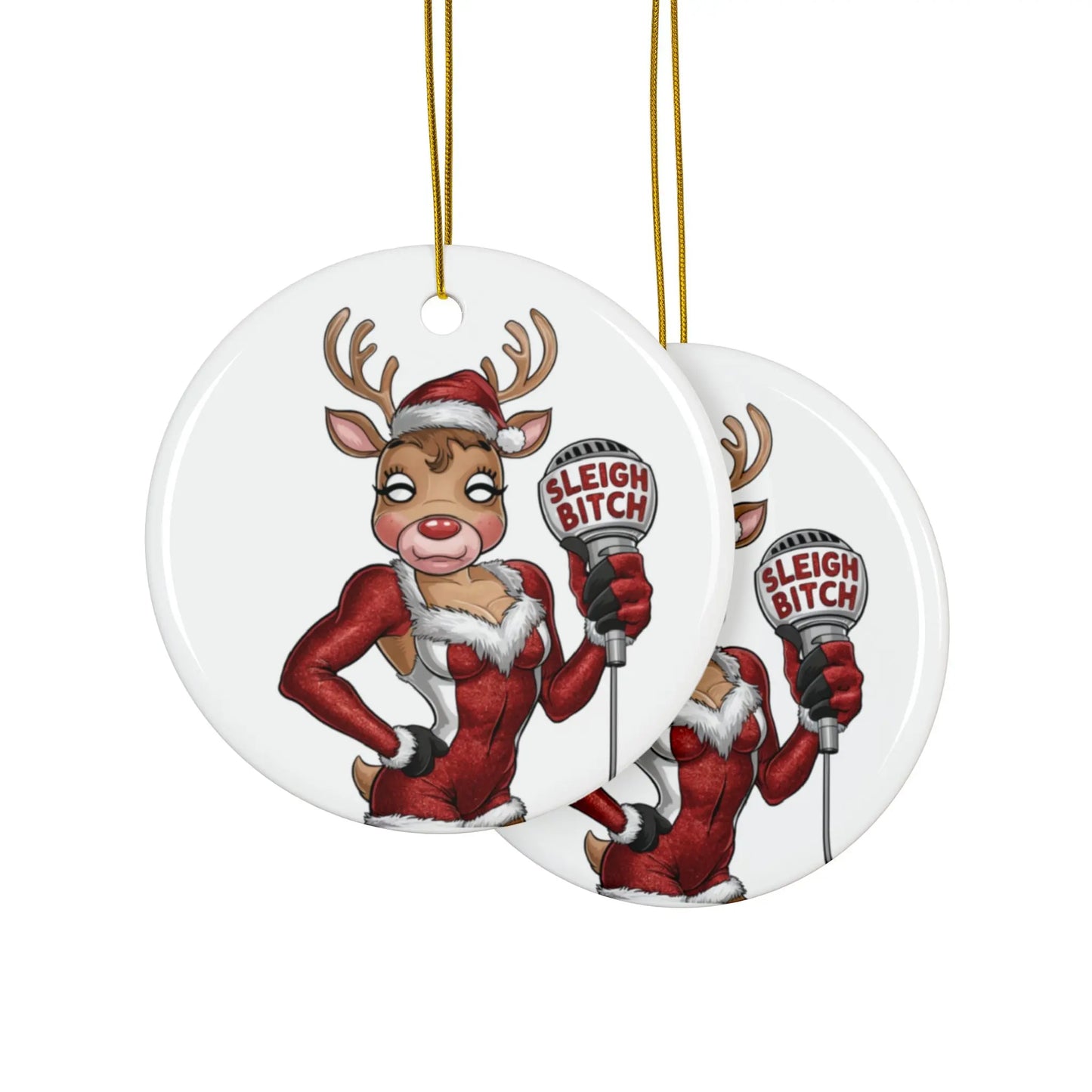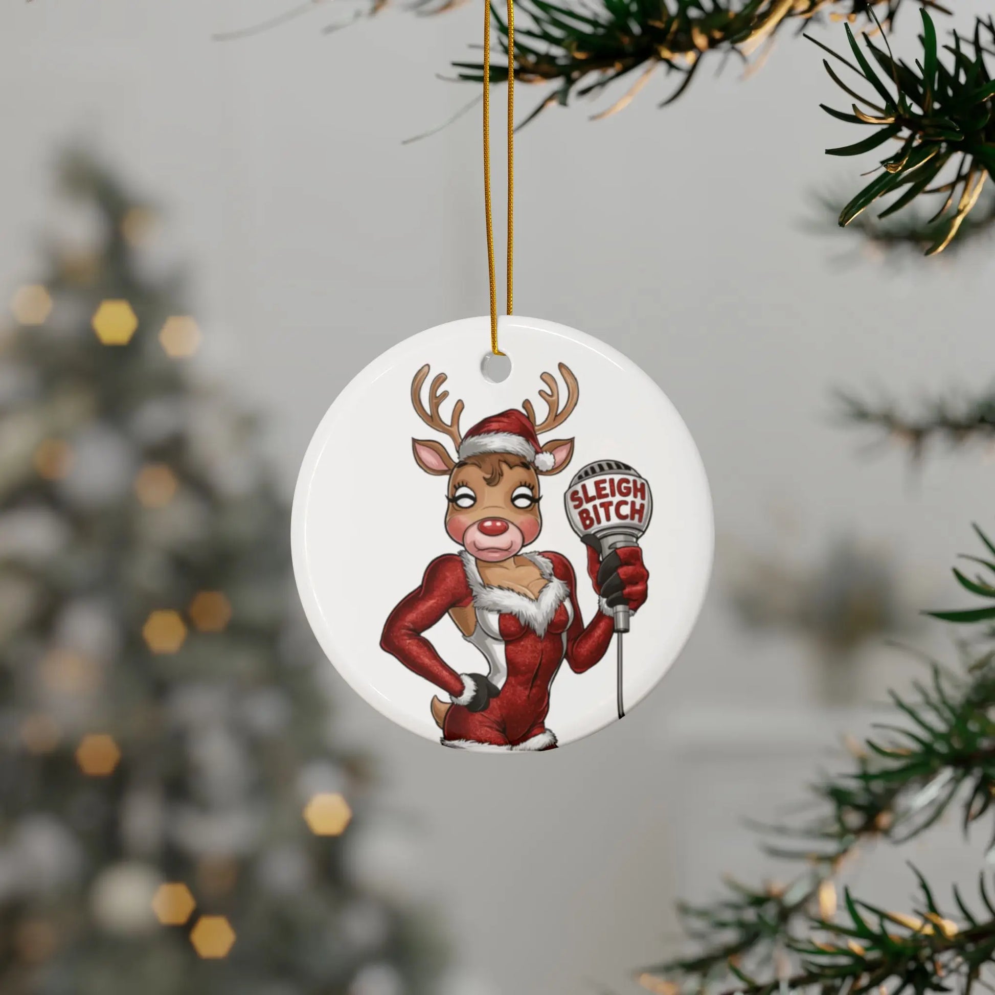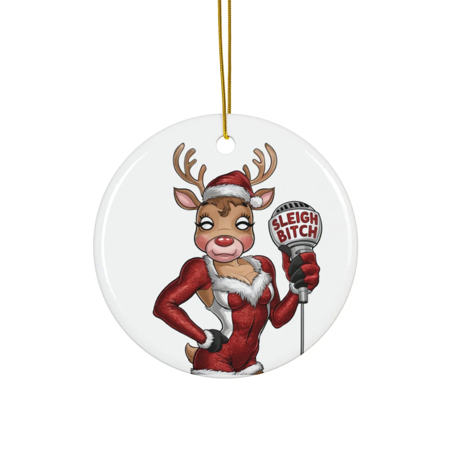 Product Details For Gay Christmas Bauble Ceramic Sassy Gay Reindeer Sleigh Bitch