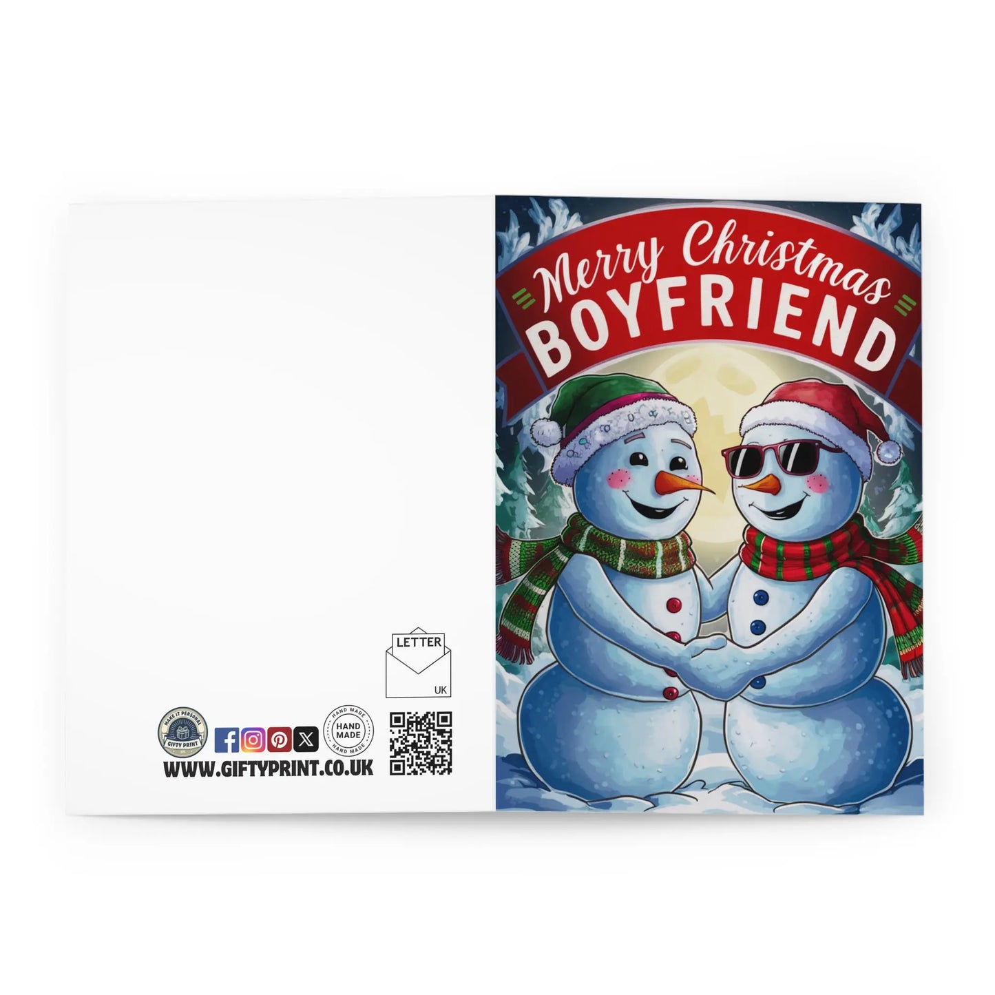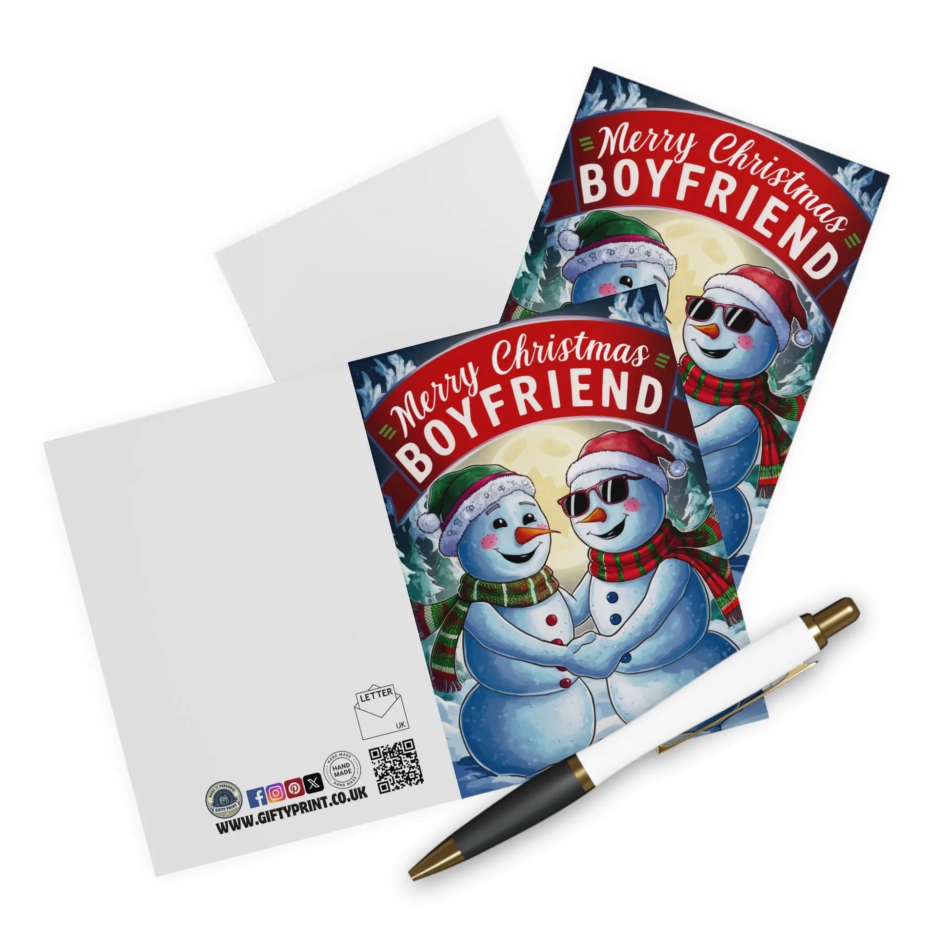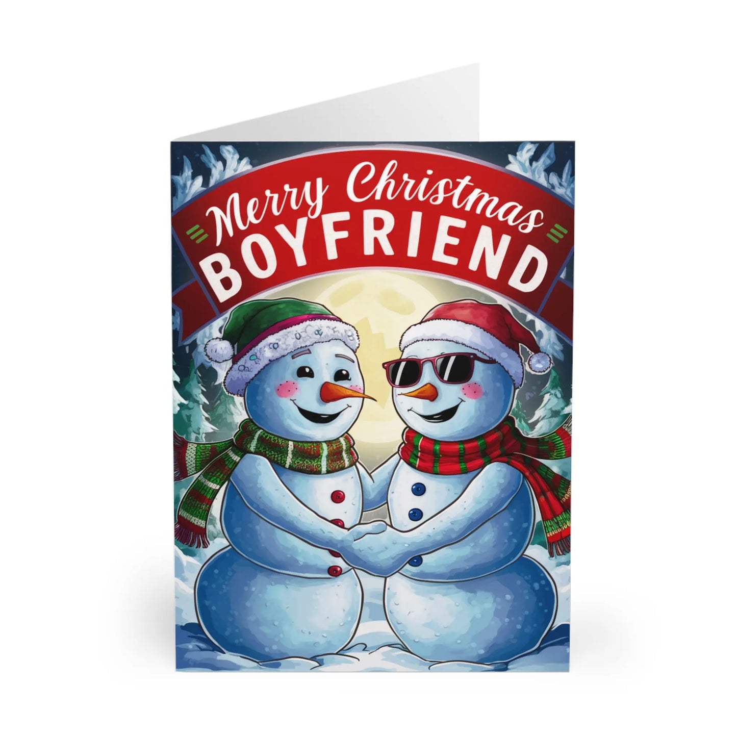 Gay Christmas Card, Celebrate with this adorable gay Christmas card featuring two snowmen holding hands and the words "Merry Christmas, Boyfriend"! Show your love and spread holiday cheer with this unique and heart warming card. Perfect for any gay couple during the holiday season.