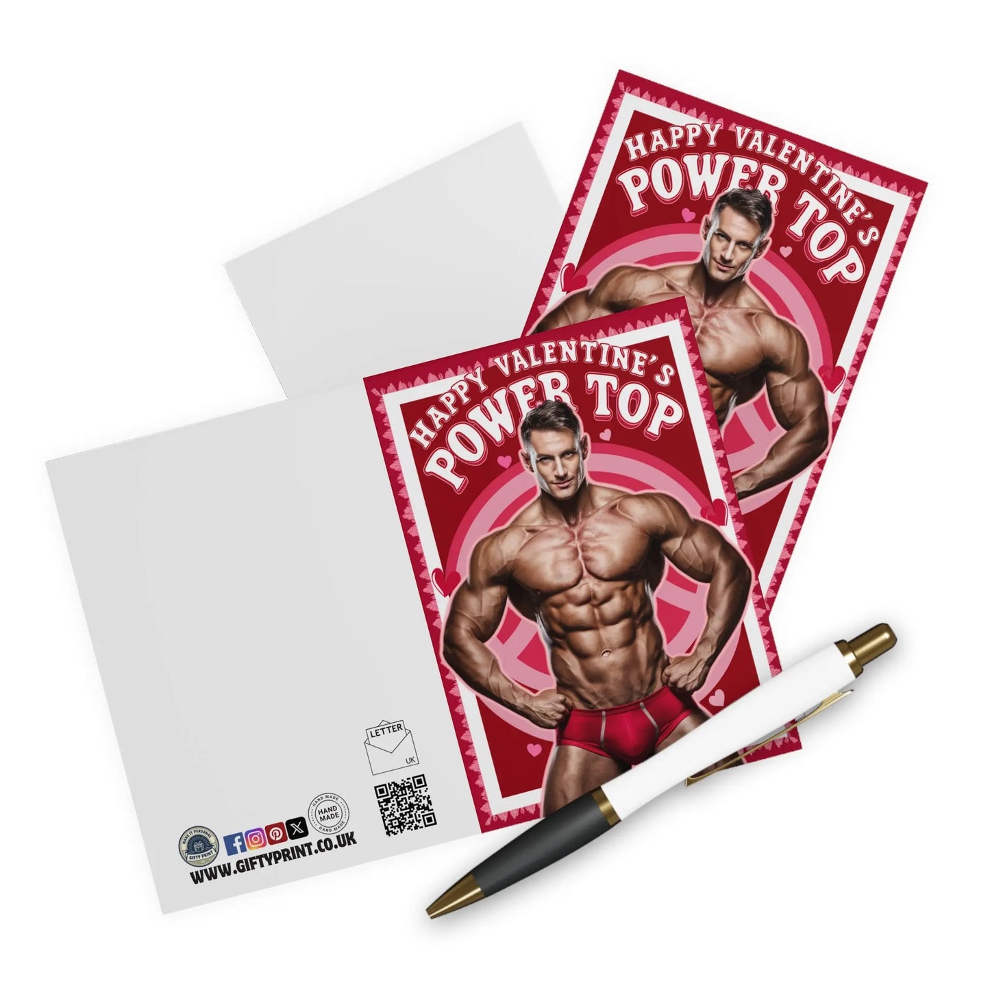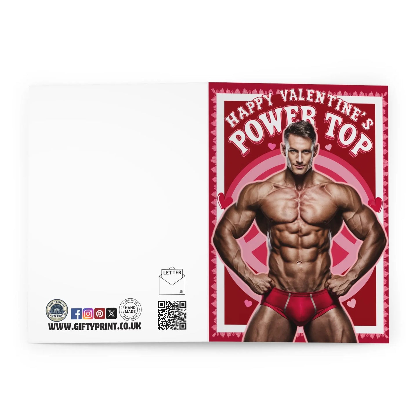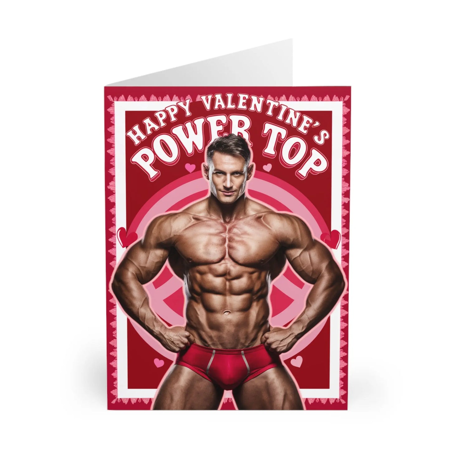 Gay Valentines Day Card, Looking for a playful way to express your love to that special someone this Valentine's? This funny card featuring a muscular "power top" is sure to bring laughs and smiles. Give your partner a card that they won't forget, while making them feel loved and appreciated.