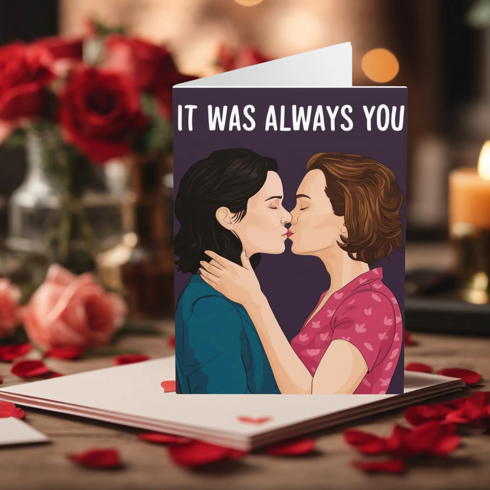 Gay Valentines Day Card, Celebrate love and pride with the Gay Lesbian Valentines Day Card. With the sweet message "It Was Always You" and a playful design, this card is perfect for your special someone. Show them how much they mean to you with this quirky and fun card.