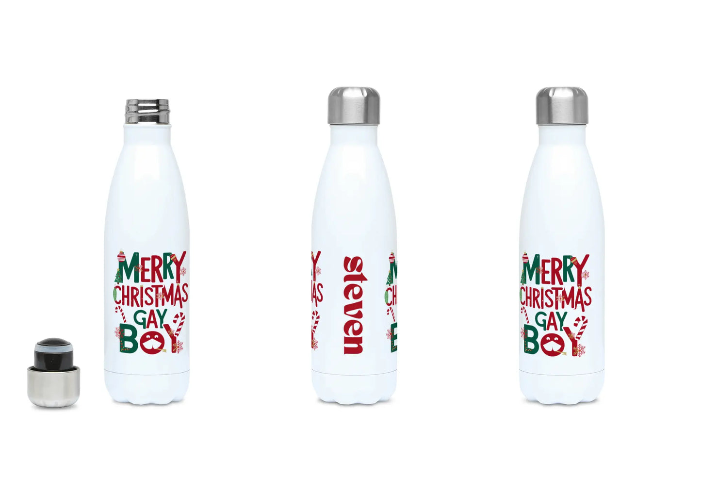 Gay Water Bottle Personalised Merry Christmas Gay Boy