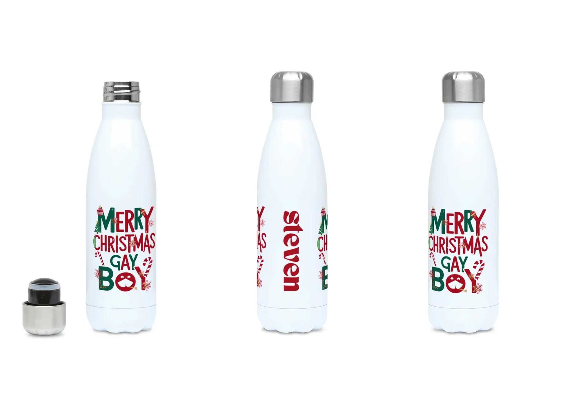 Product Details For Gay Water Bottle Personalised Merry Christmas Gay Boy