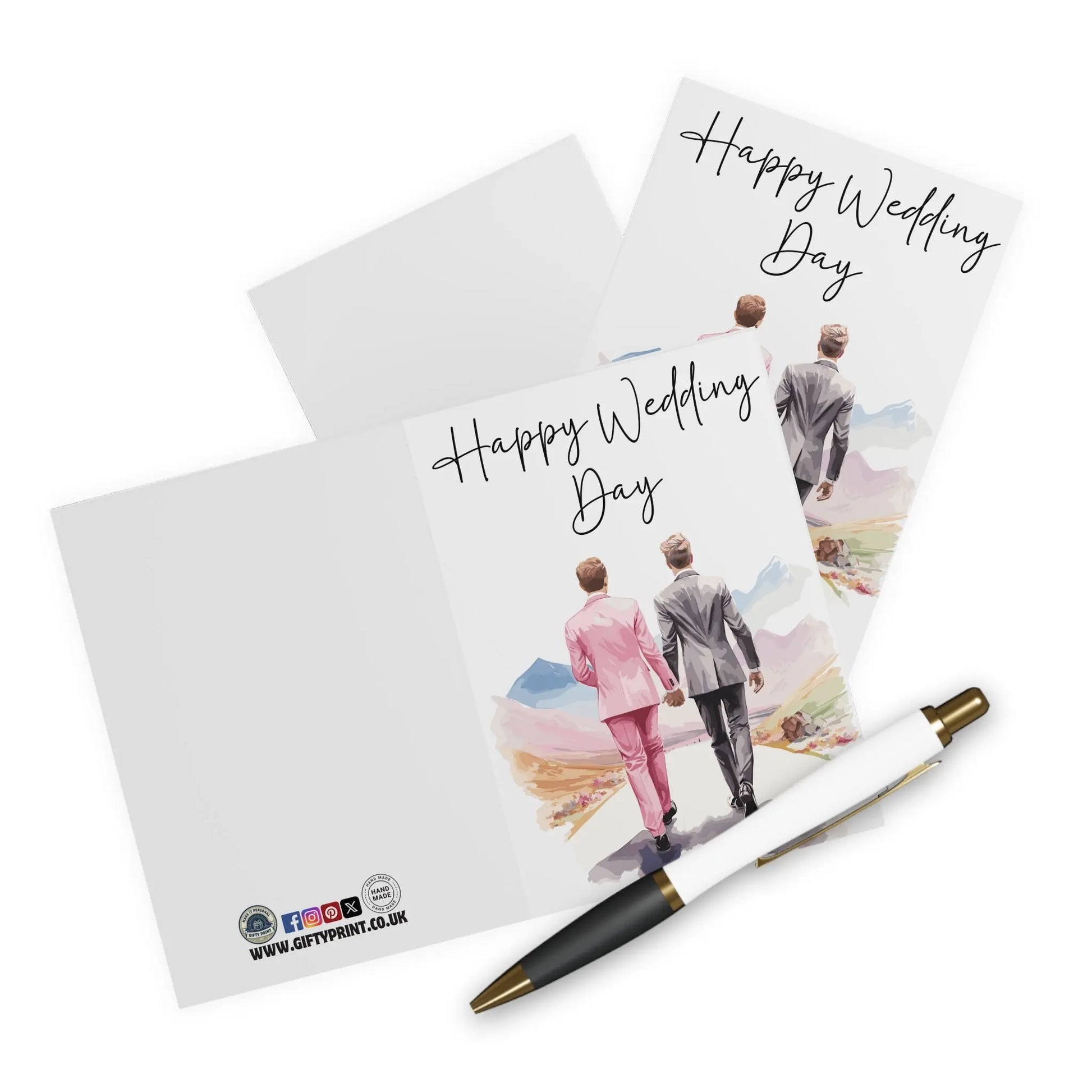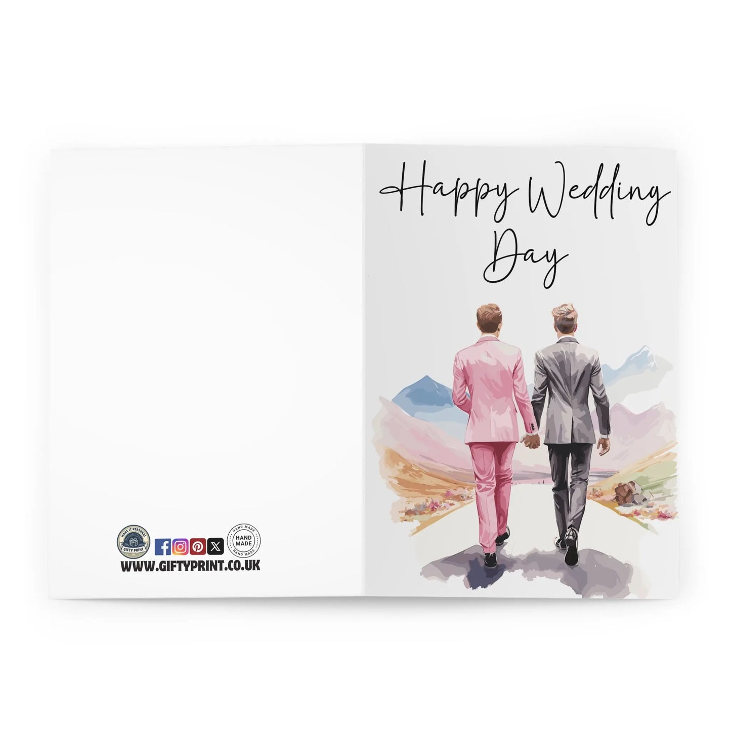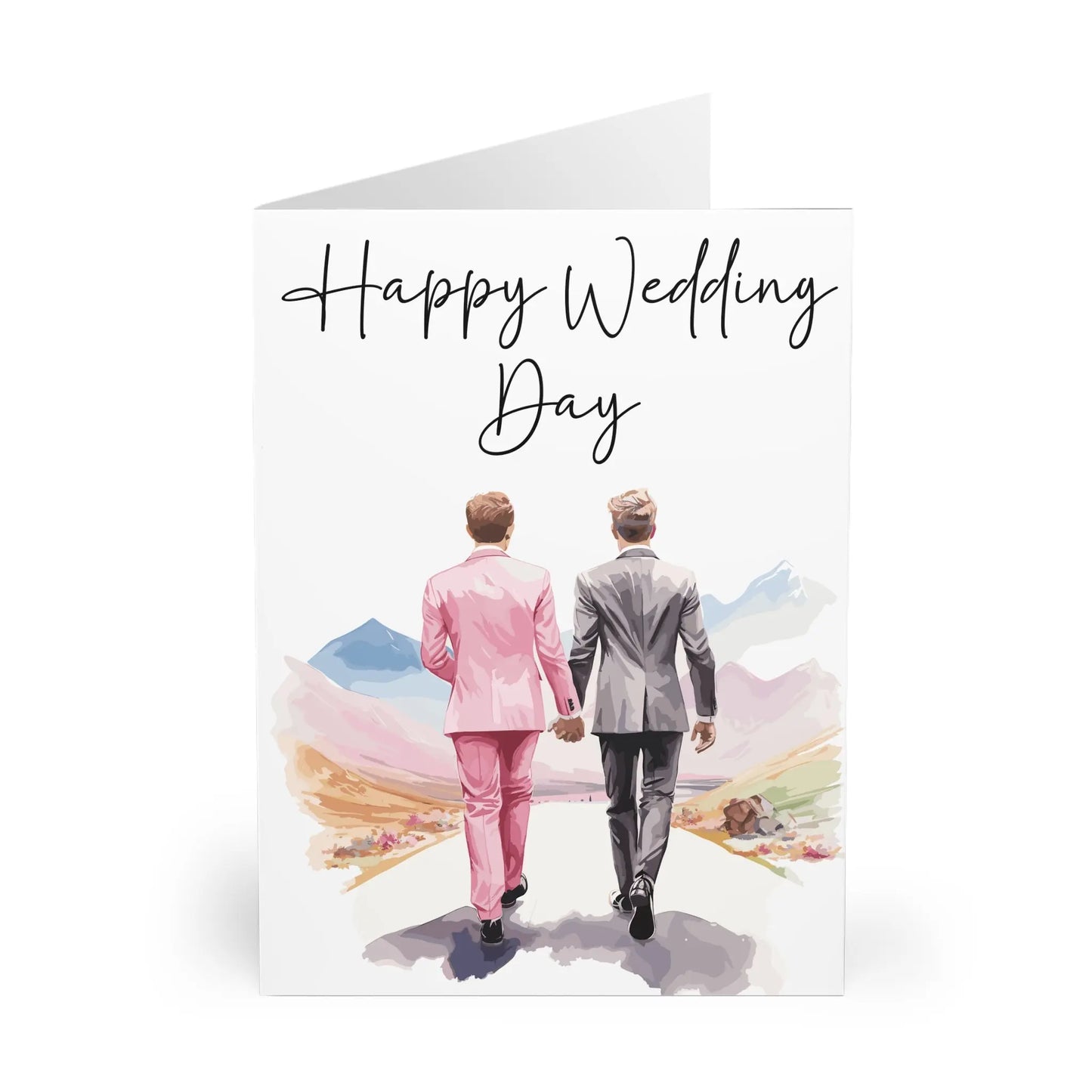 Gay Wedding Card, Celebrate love and humor with this playful Gay Wedding Card featuring two men walking into the distance. Perfect for those who don't take themselves too seriously, this card adds a touch of quirkiness to any special day. Congratulate the happy couple with this unique and fun token of love.