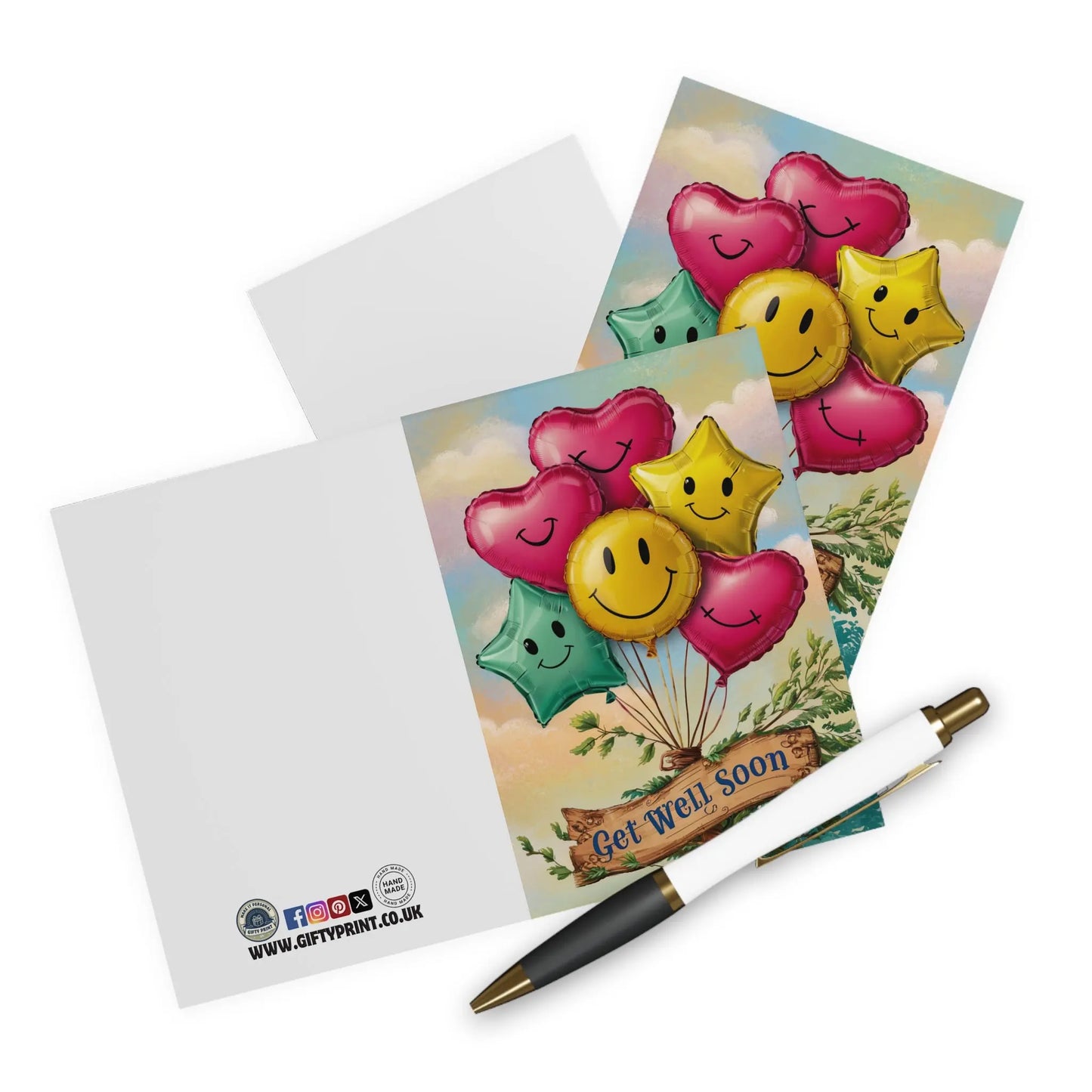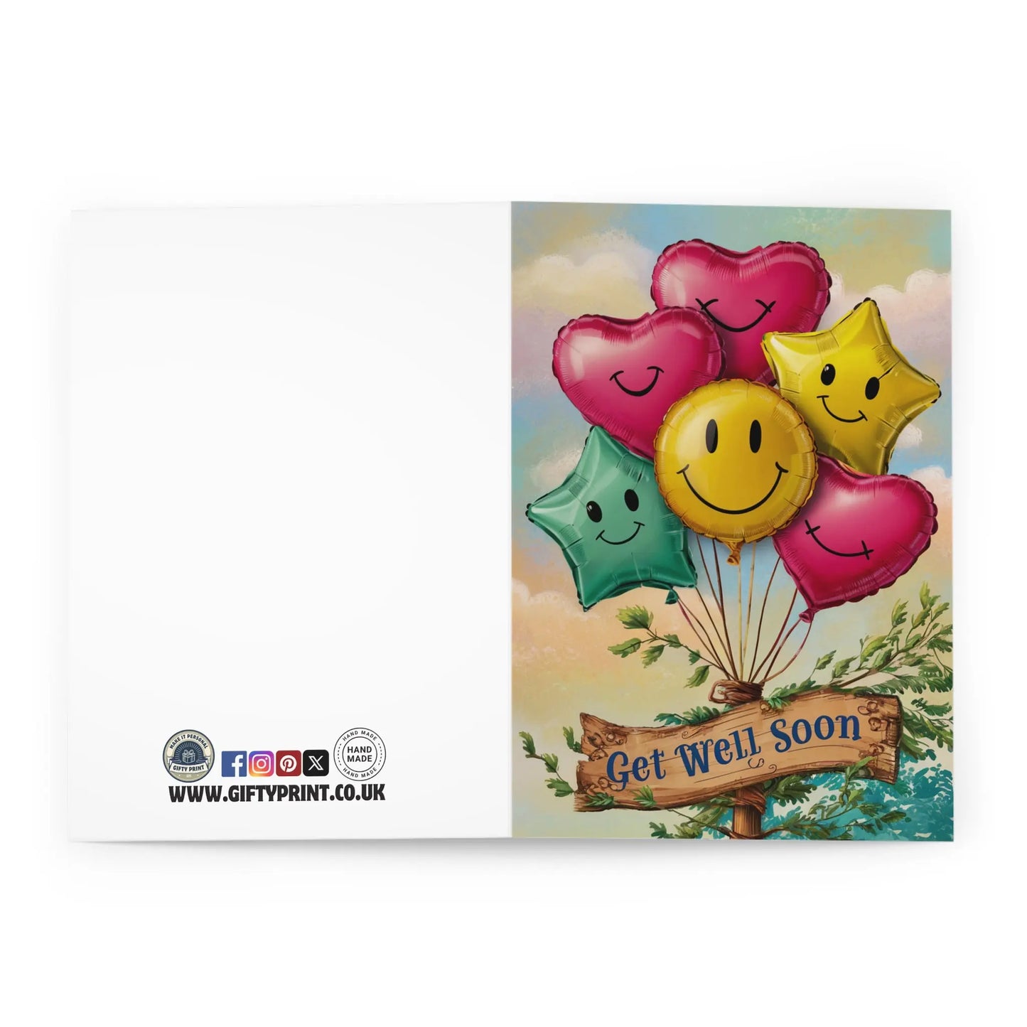 Get Well Soon Card, Send smiles and healing vibes with this Get Well Soon card featuring colourful helium balloons. Lift their spirits and show them you care.
