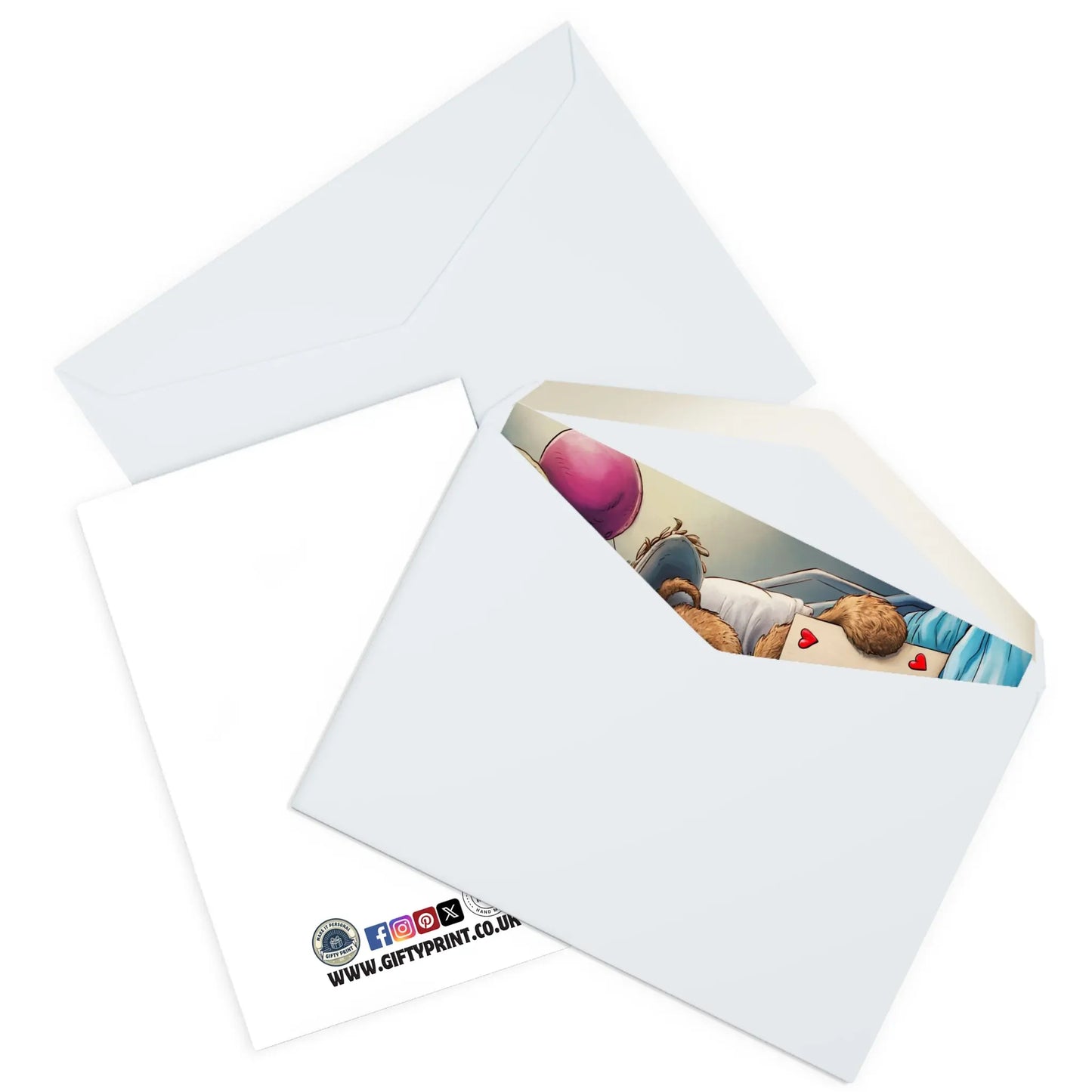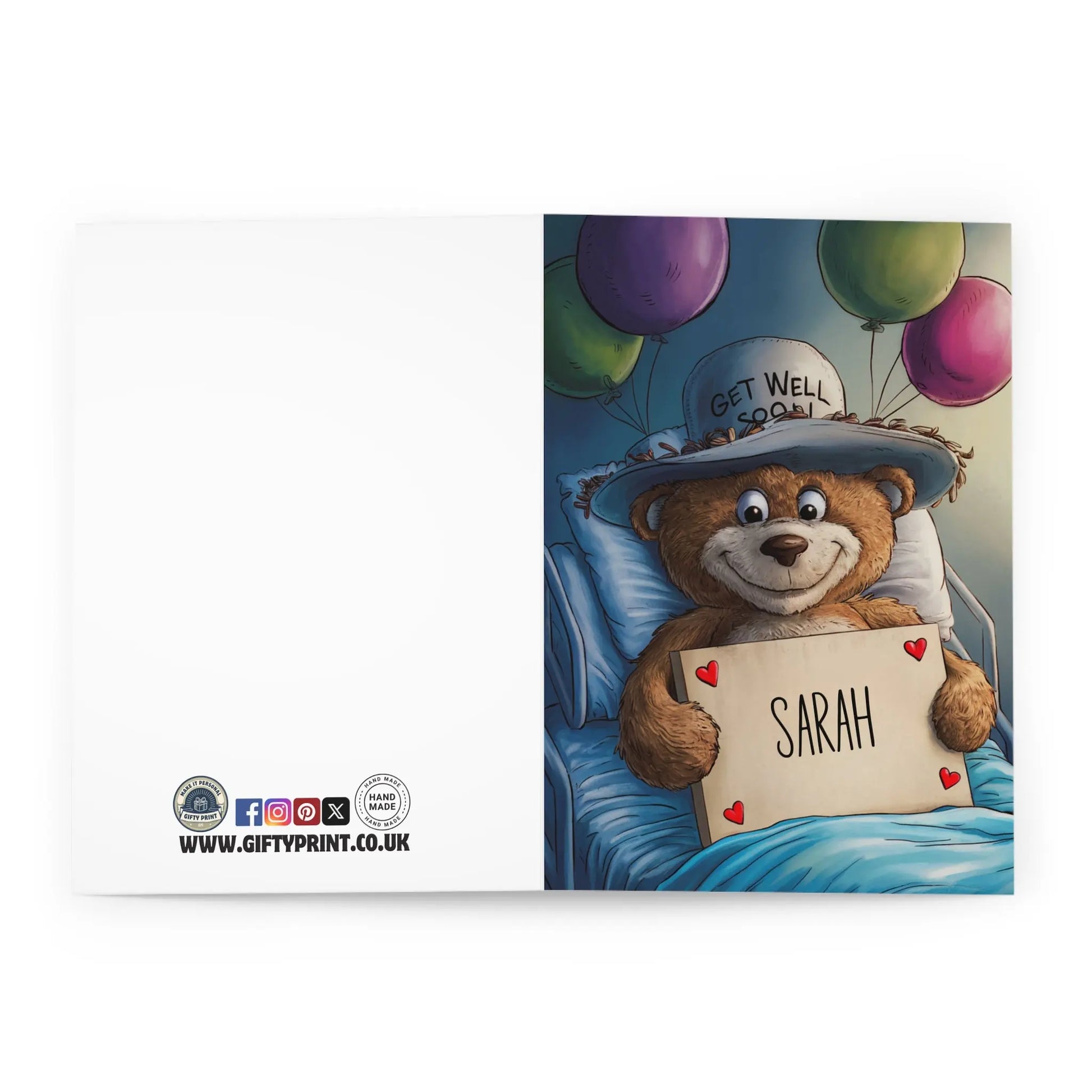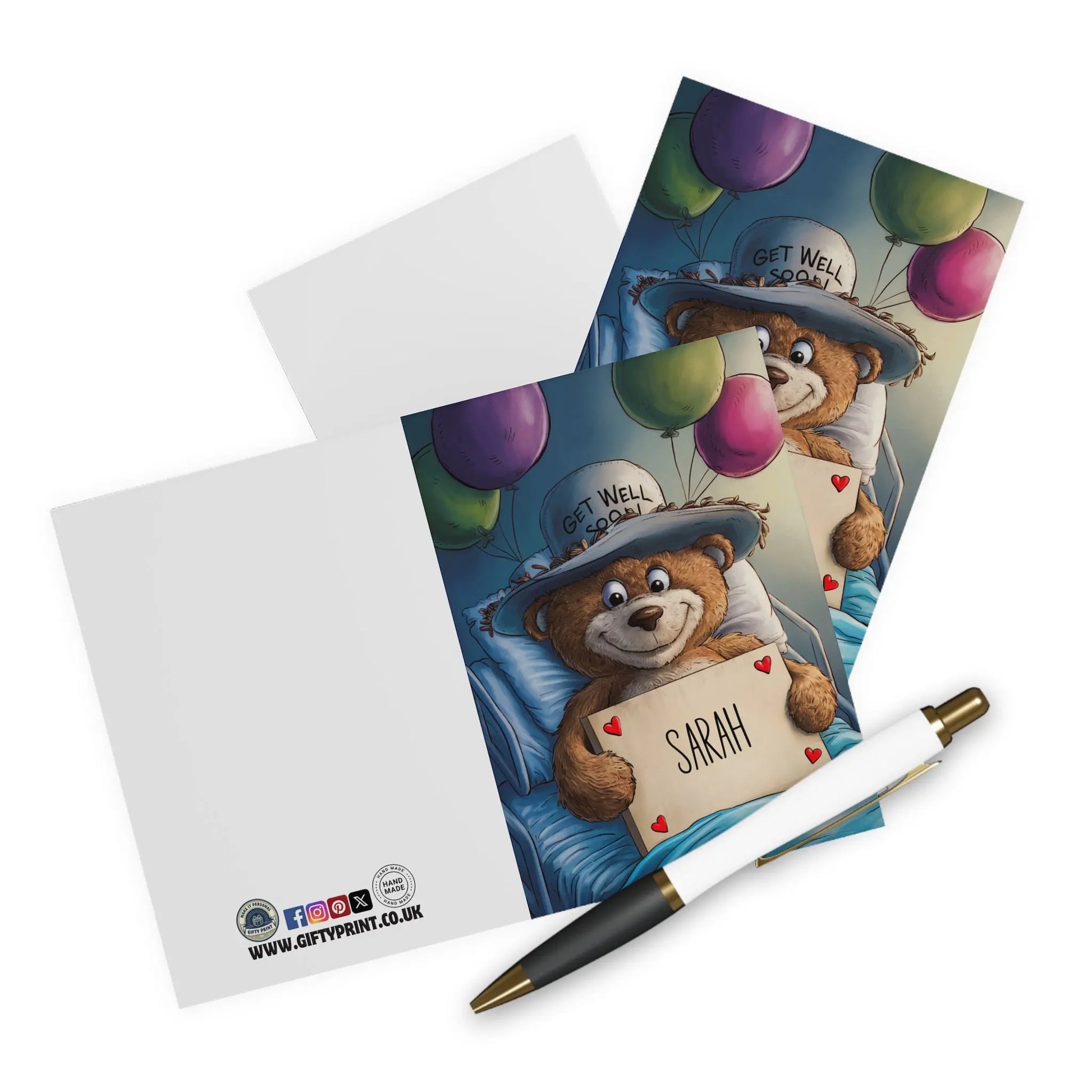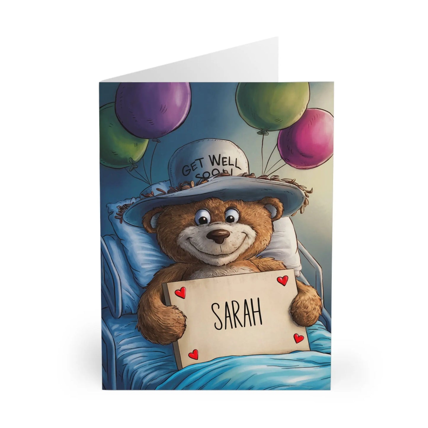 Get well Soon Card, Give a little extra love with our Get Well Soon Card featuring a personalised bear and balloons. Lift their spirits with a custom message and show them you care. Perfect for spreading smiles and hugs during tough times. (Seriously, they'll love it! 🐻🎈)