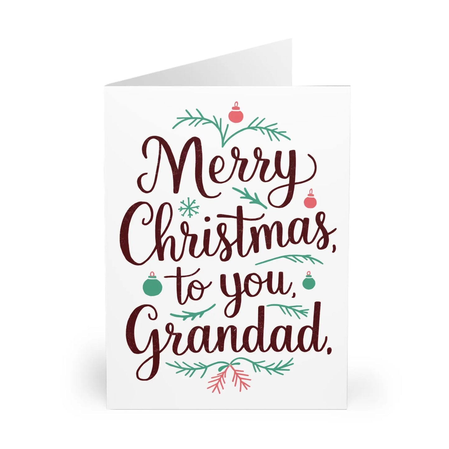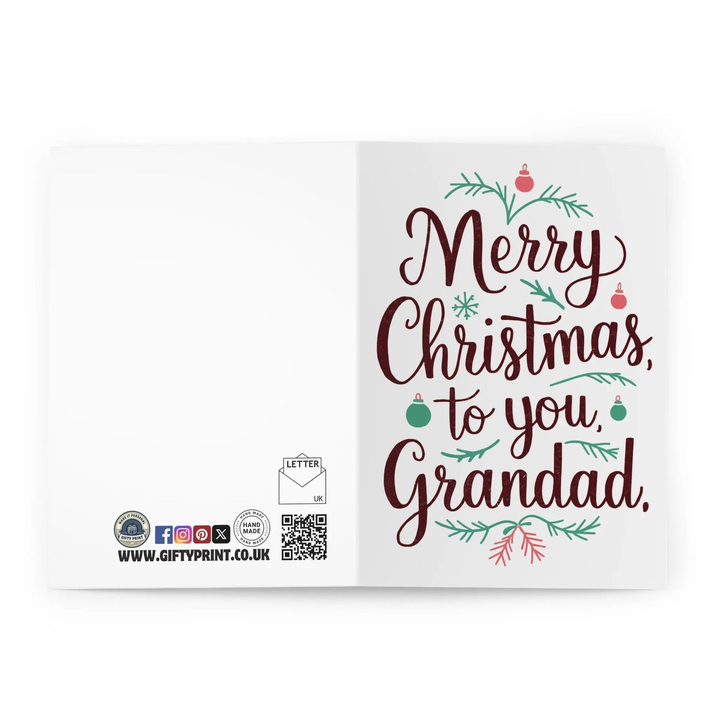 Grandad Christmas Card, Celebrate the special bond with your grandad this holiday season with our Christmas card! Featuring a festive garland design and the words "Merry Christmas To You Grandad," this card will surely warm his heart. Show your love and appreciation with this thoughtful gesture. Happy holidays!