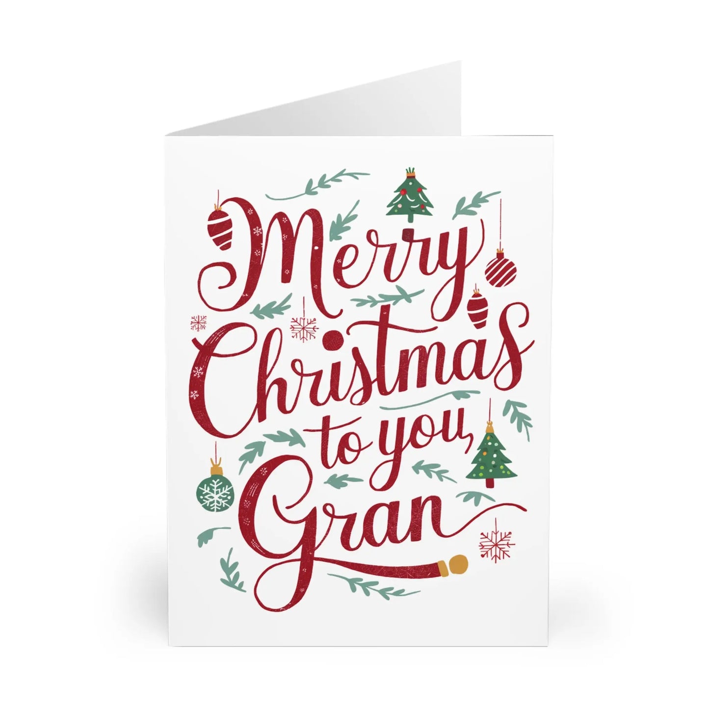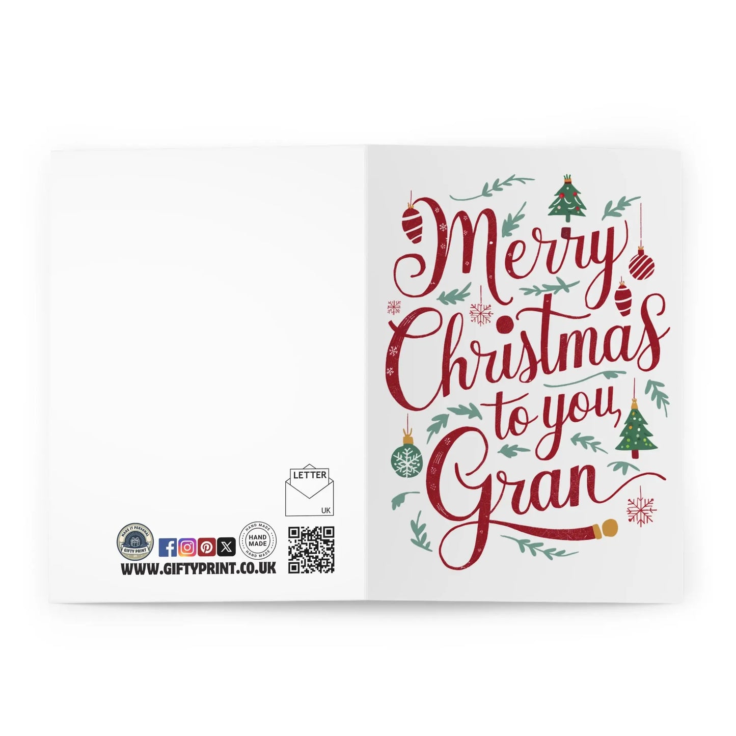 Grandma Christmas Card, Spread joy and love with our Christmas Card, specifically designed for your amazing gran. Show her how much she means to you by sending her this heartfelt message and beautiful design. Wishing her a Merry Christmas has never been more special!