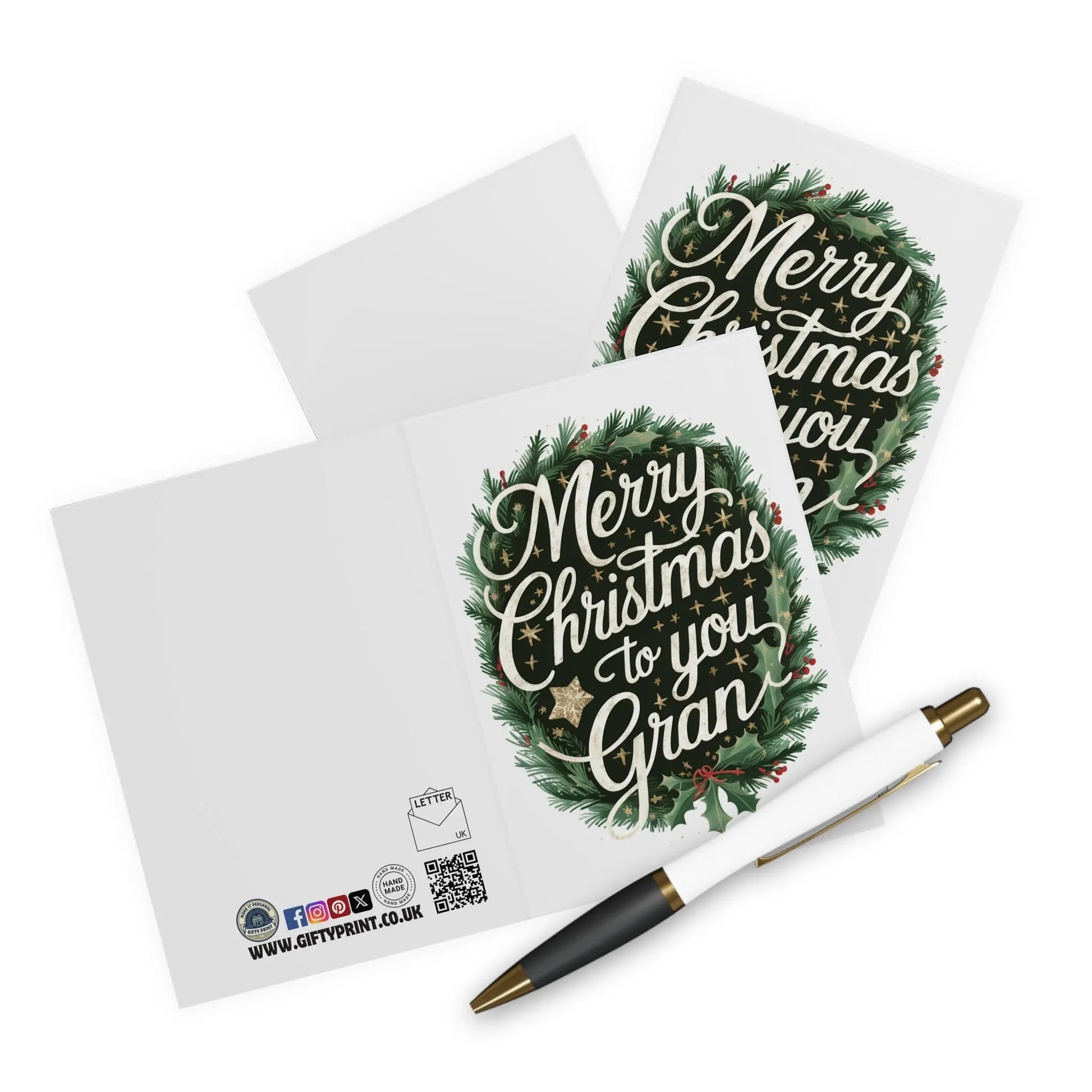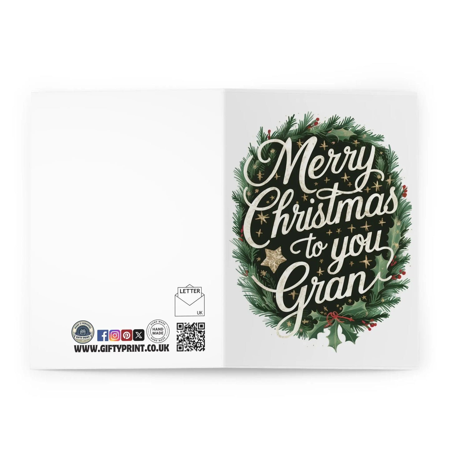 Grandma Christmas Card, Celebrate the joy of the season with our Christmas Card Merry Christmas To You Gran Wreath! Share warm wishes and festive greetings with your beloved gran. This beautiful wreath design adds a touch of holiday magic to your message. Show your love and appreciation with our heartfelt card. Happy holidays!