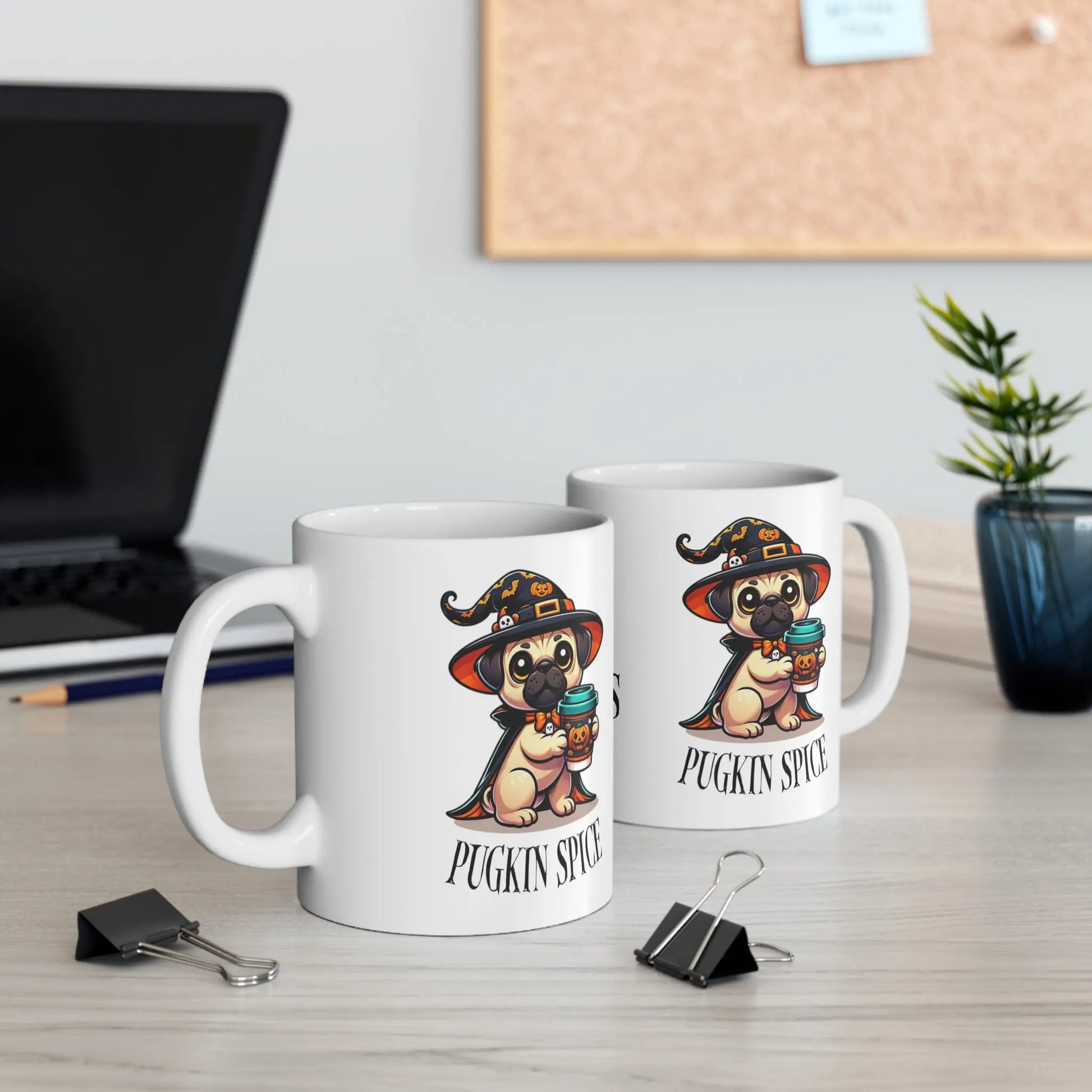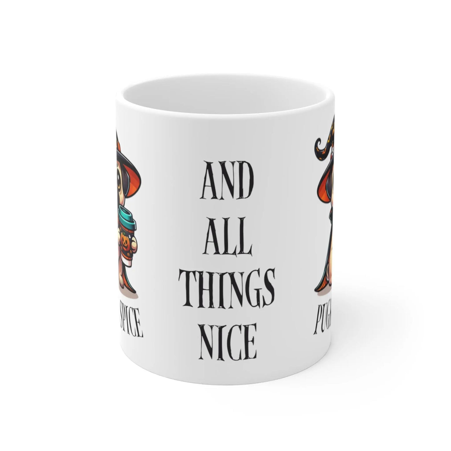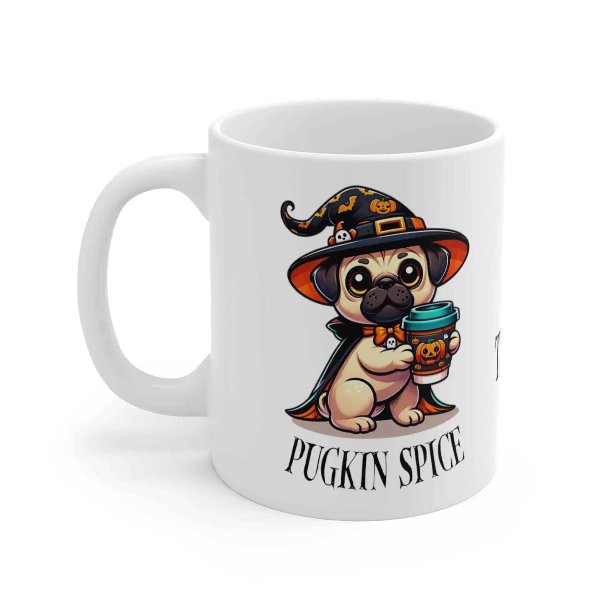 Halloween Mug, Get ready for the spookiest season with our Halloween Mug Pug Dog Pugkin Spice And All Things Nice! This adorable mug features a pug dressed in a witch costume and is perfect for sipping on your favorite pumpkin spice drink. With its playful design and quirky charm, it's sure to be a hit at any Halloween gathering. Don't miss out on this must-have seasonal mug!