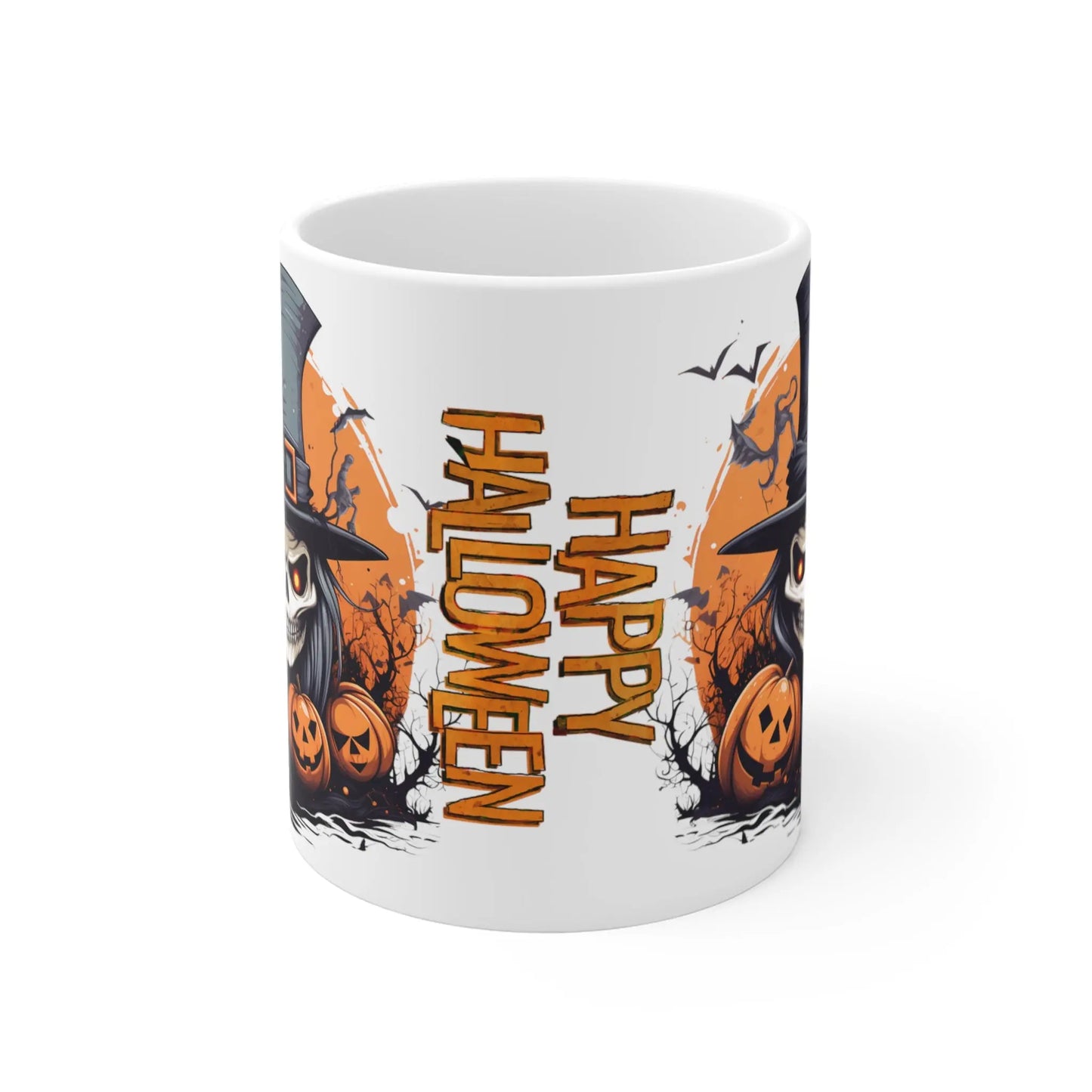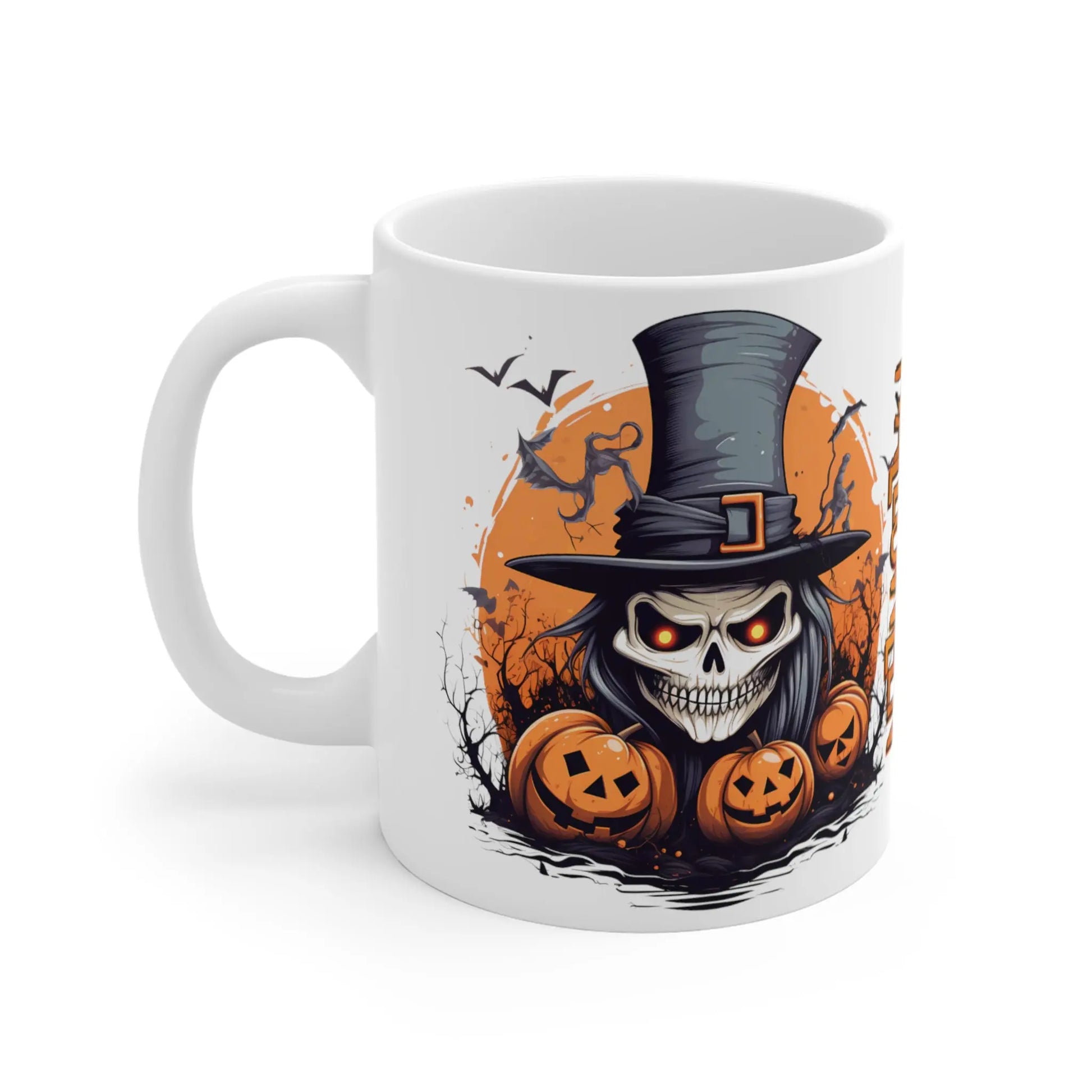 Halloween Mug, Get into the spooky spirit with our Halloween Mug Pumpkin Skeleton Head! This quirky mug features a unique skeletal pumpkin design that will add a touch of fun and humour to your morning coffee routine. Perfect for Halloween lovers, this mug is sure to bring a smile to your face every day. (Cheers to spooky sips!)