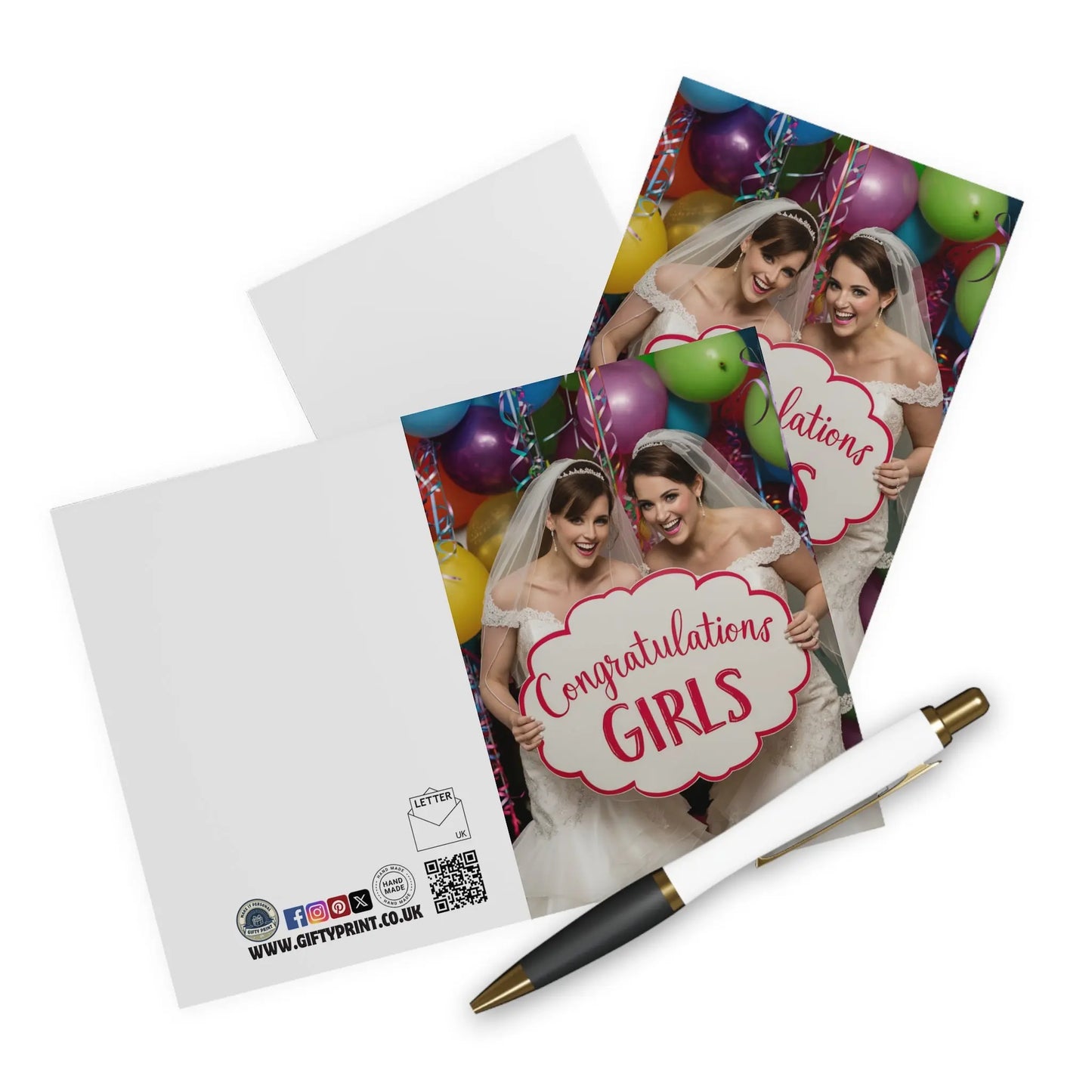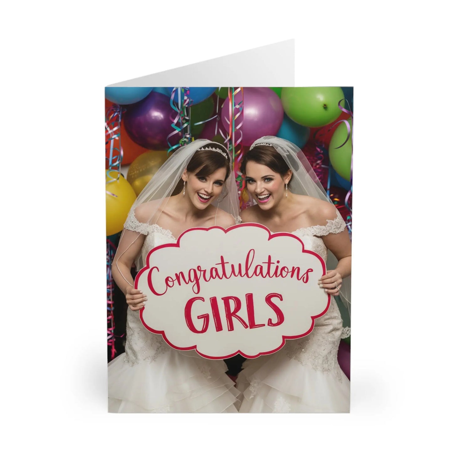 Lesbian Wedding Card, Celebrate love with our Gay Lesbian Wedding Card! Perfect for congratulating the lovely couple, this card features two happy girls and a playful message. Show your support for the LGBTQ+ community with this quirky and fun card. (Love is love!)