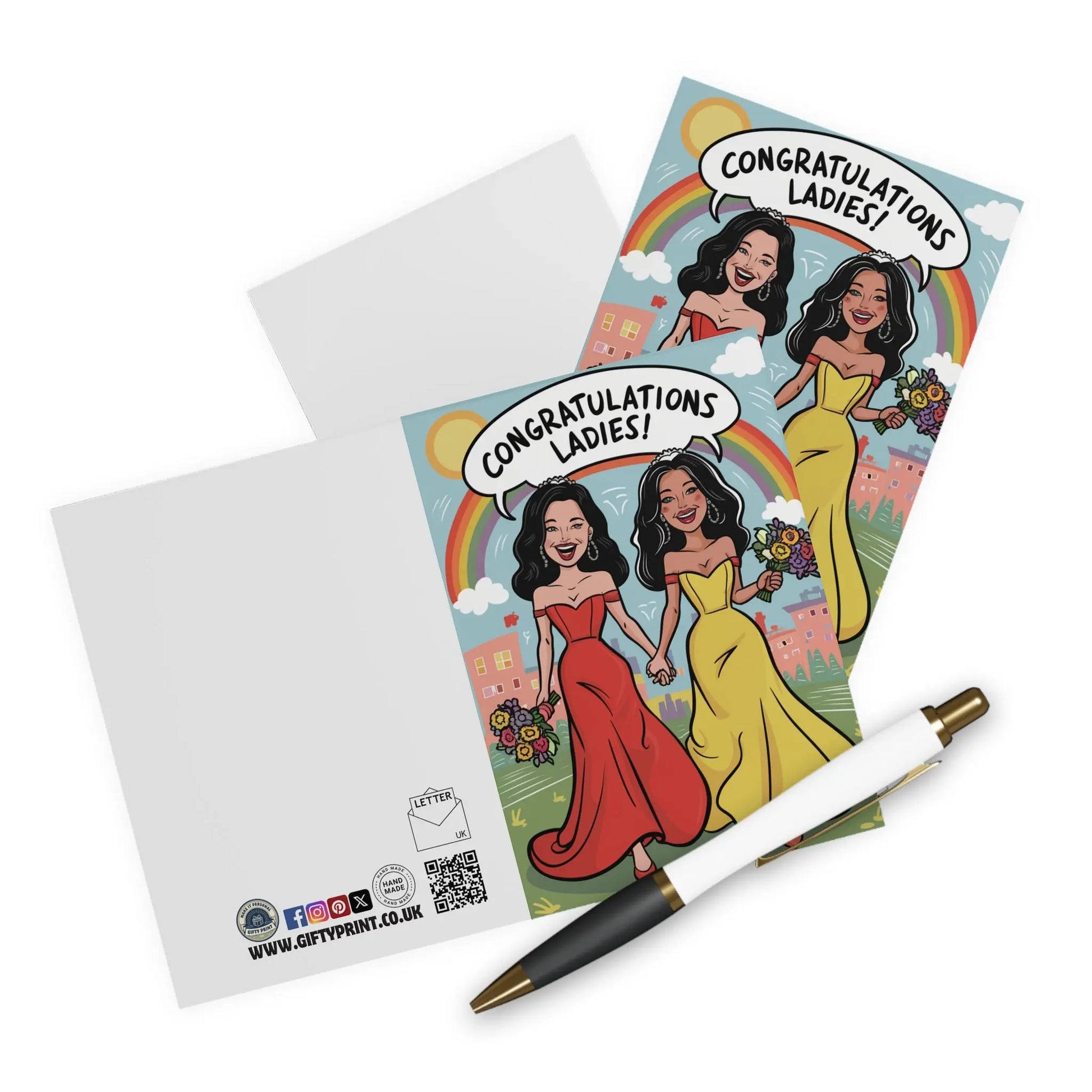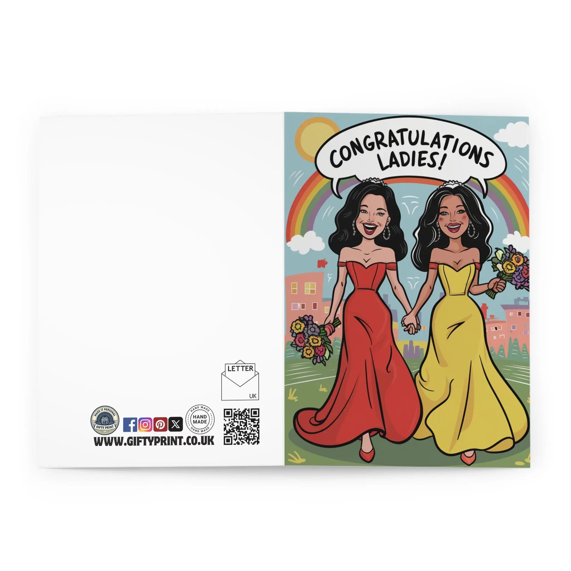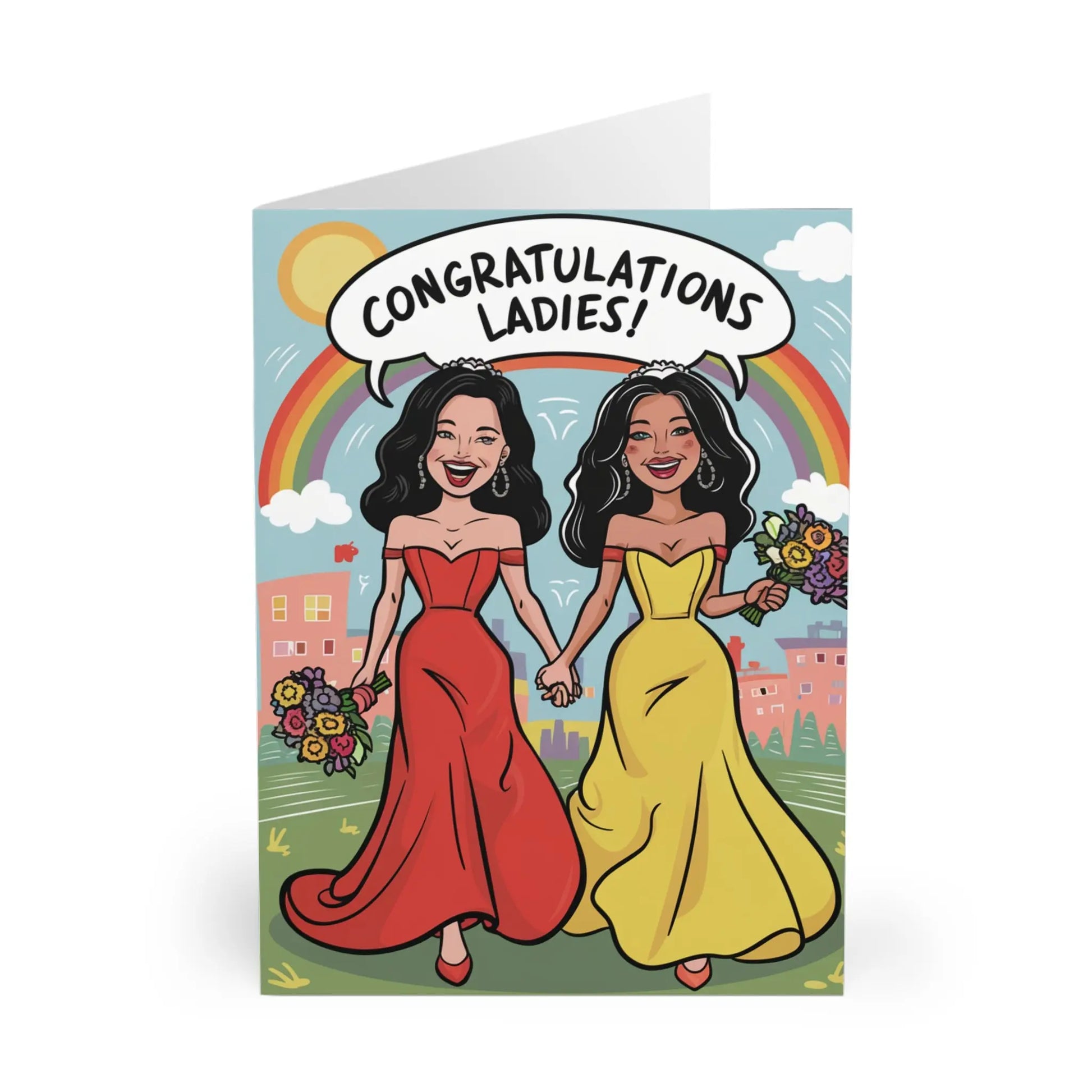 Lesbian Wedding Card, Celebrate love with our Gay Lesbian Wedding Card! Perfect for showing your support and congratulations to the happy couple. Share in the joy and excitement as two amazing ladies tie the knot. Spread love and positivity with this beautiful card.