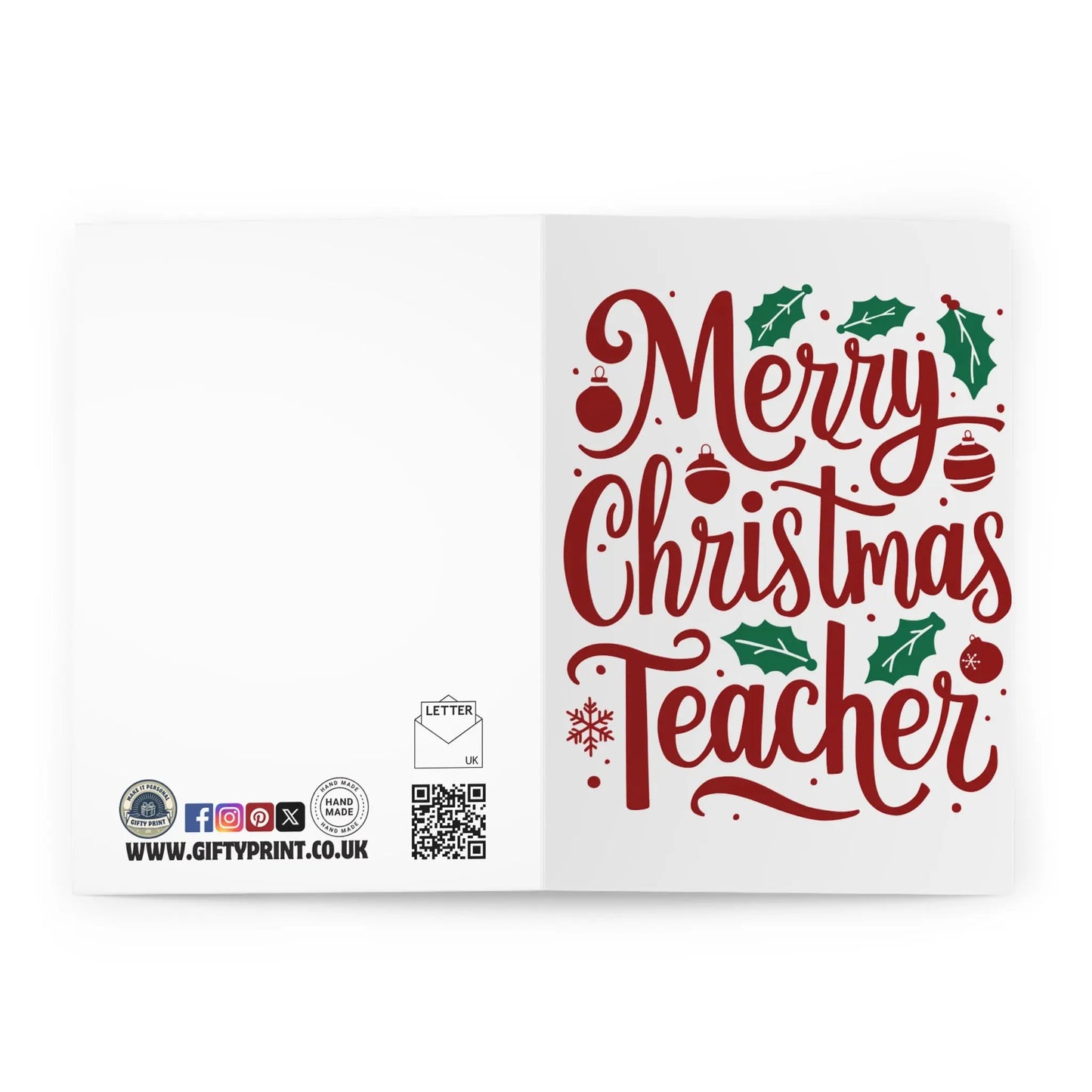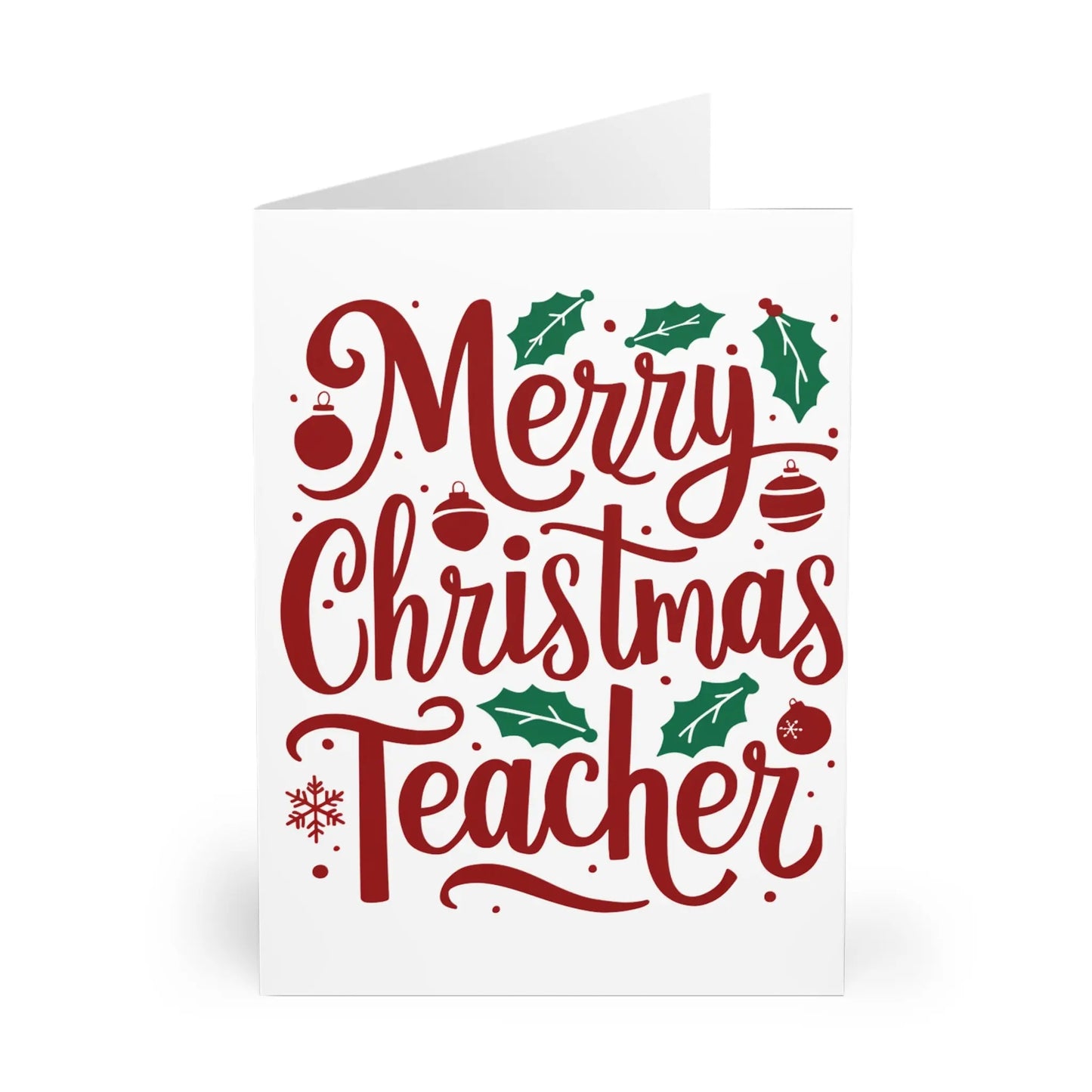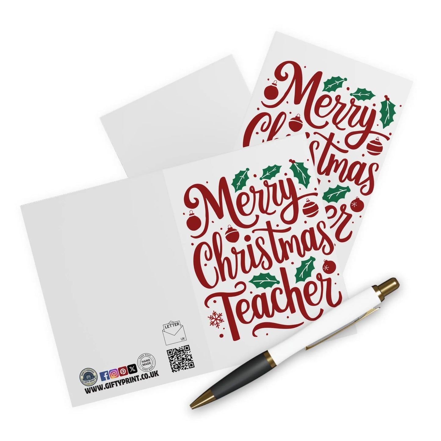 Wish your favourite teacher a holly jolly Christmas with this festive card! Featuring a cheerful design with the phrase "Merry Christmas Teacher," this card is perfect for showing your appreciation. Give the gift of holiday cheer with this Merry Christmas Teacher Christmas Card.
