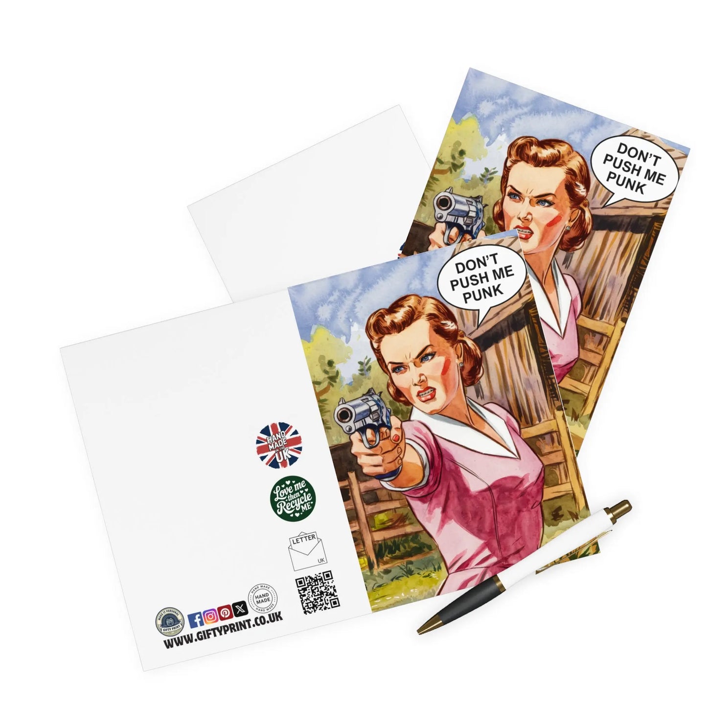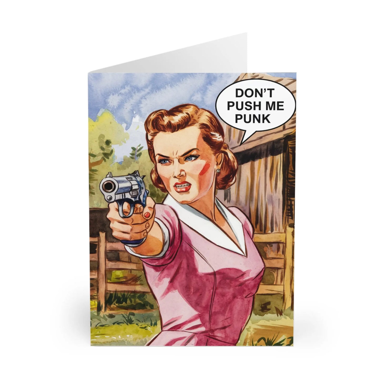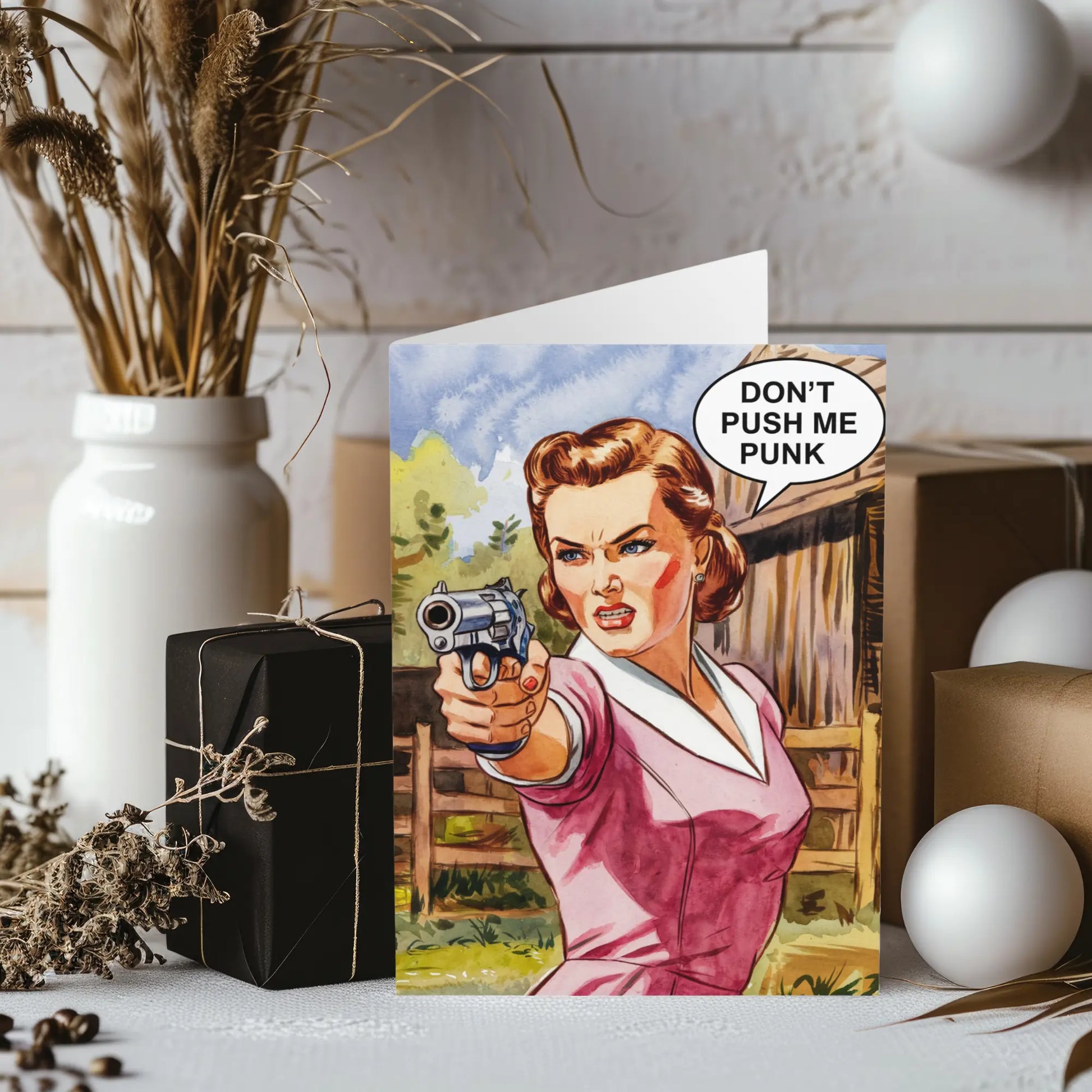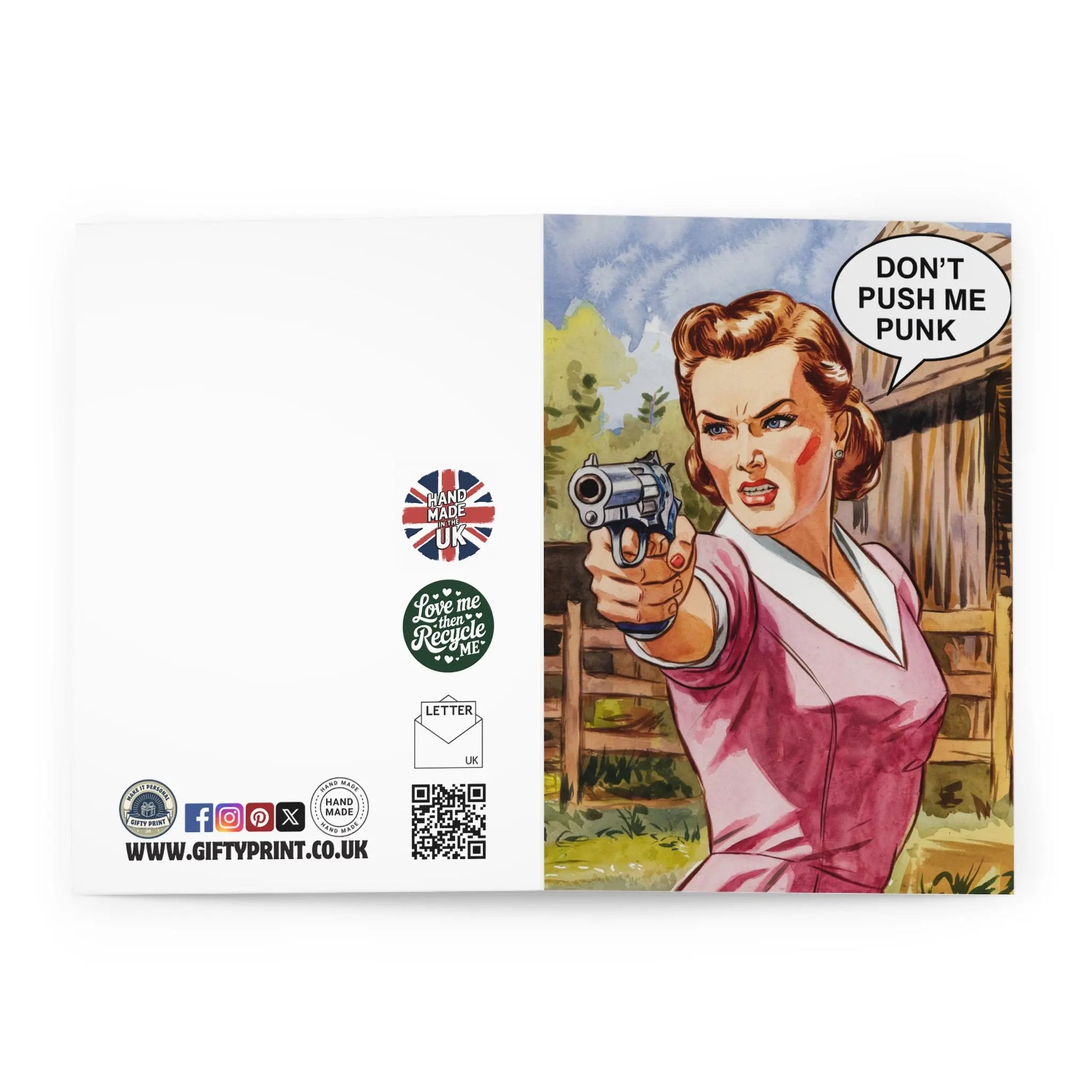 Mothers Day Card, Celebrate your mother in a unique way with our "Don't Push Me Punk" Mother's Day card. Playful and humorous, this card is perfect for someone who loves a good laugh. Show your appreciation for all the times they pushed you (but not too hard).