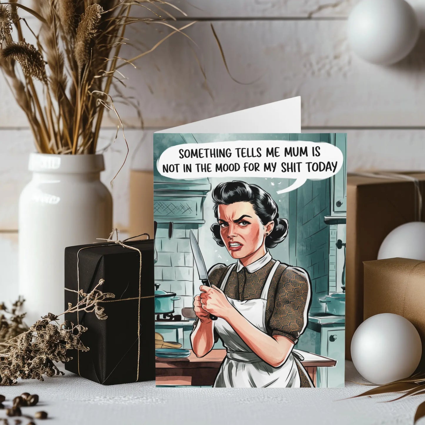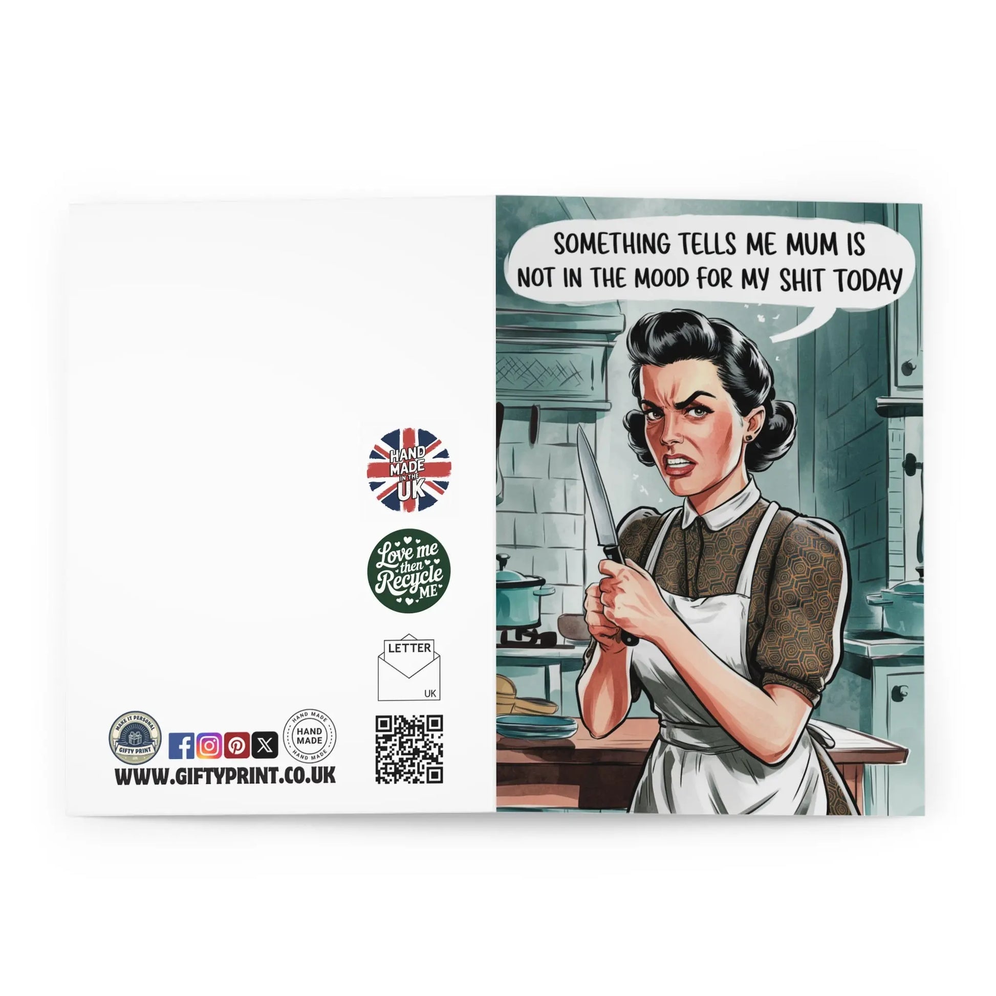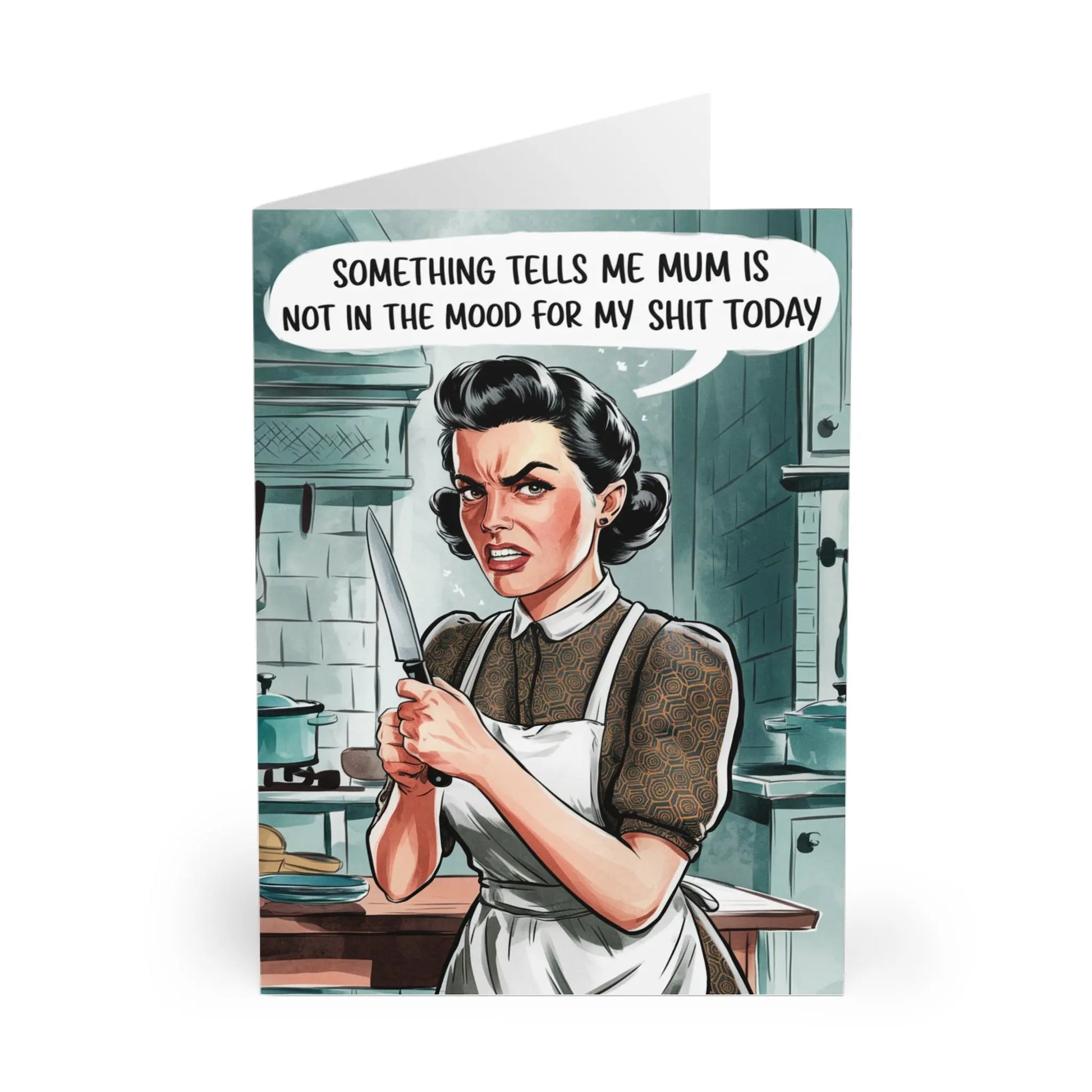 Mothers Day Card, Apologise to Mum with a humorous twist with this Mothers Day card. Featuring the witty phrase 'Mum Was Not In The Mood For My Shit Today', this card is perfect for the playful and quirky mom in your life.