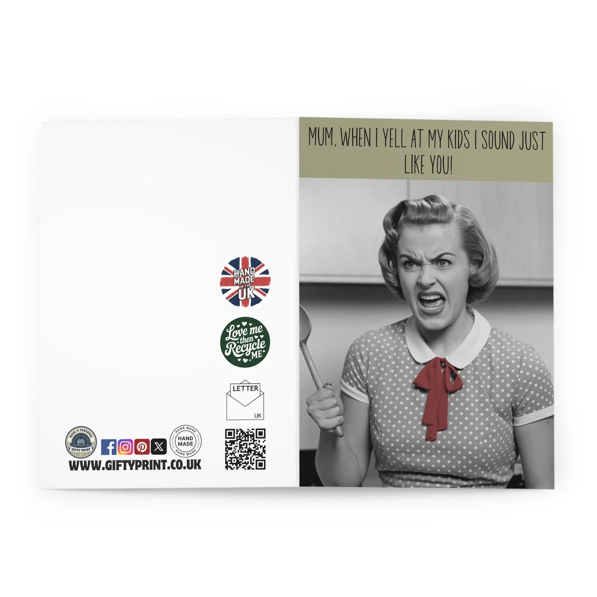 Mothers Day Card, The perfect card for any mum on Mother's Day! With a witty message that reads "When I Yell At My Kids I Sound Like You", this card is sure to make her laugh and appreciate all the times she sounded just like mum. Show your love with a little humour and celebrate the amazing moms in your life!
