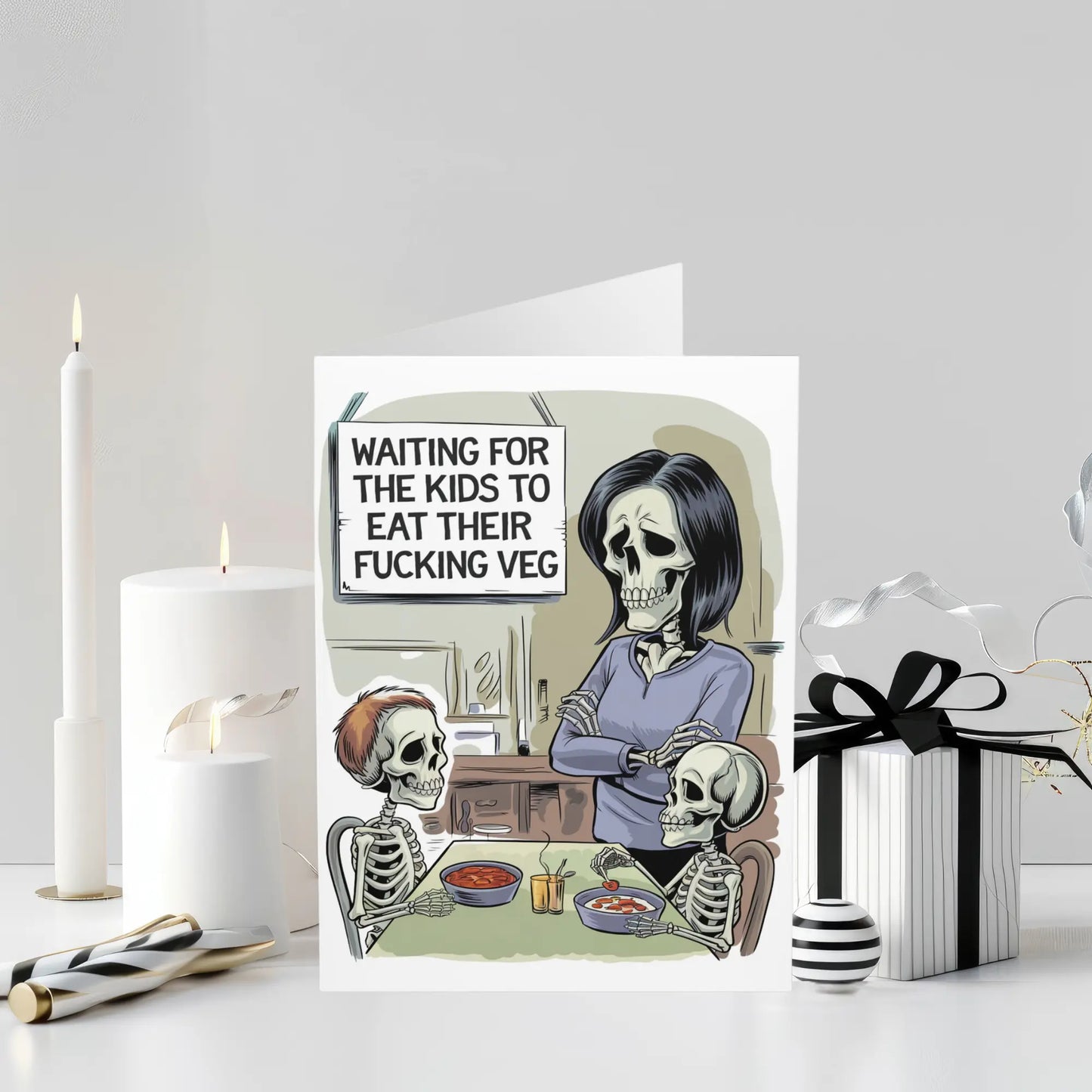 Mothers Day Card Waiting For The Kids To Eat Their Fucking Veg