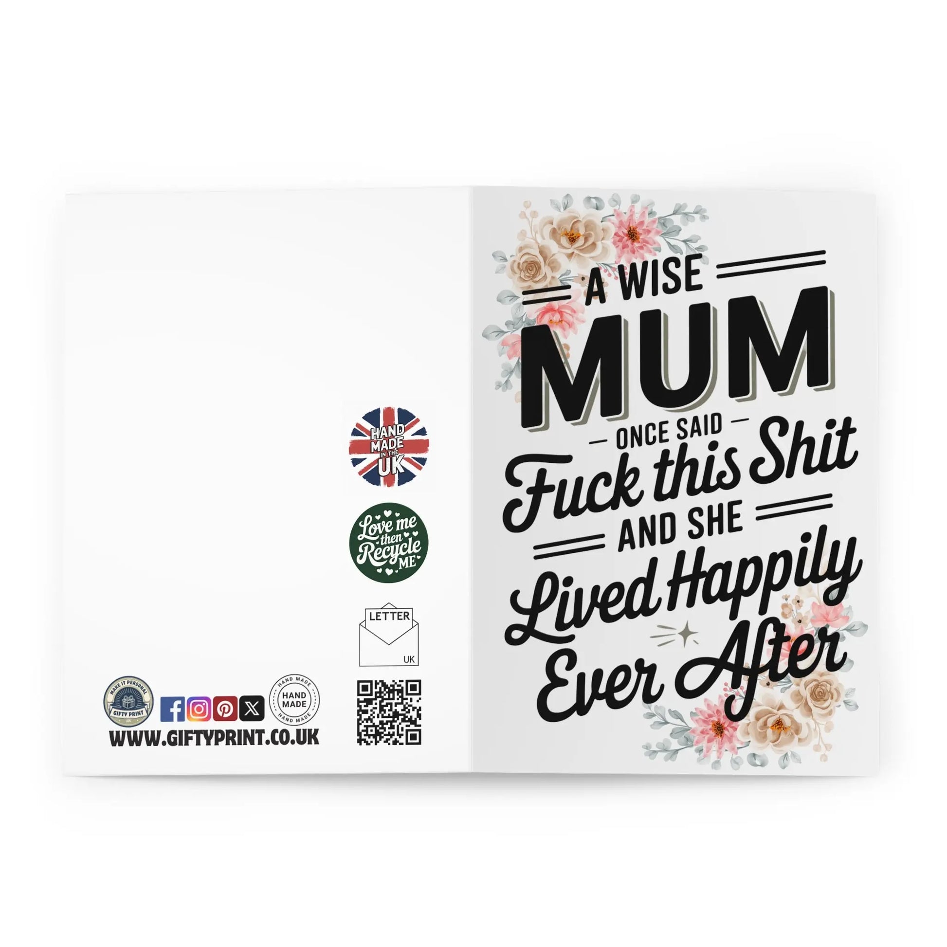 Mothers Day Card, Give your mom a laugh with our Mother's Day cards featuring the wise words, 'A Wise Mum Once Said Fuck This Shit and lived happily ever after'. Show her you appreciate her humour and take after her in the best way possible. Happy Mother's Day!