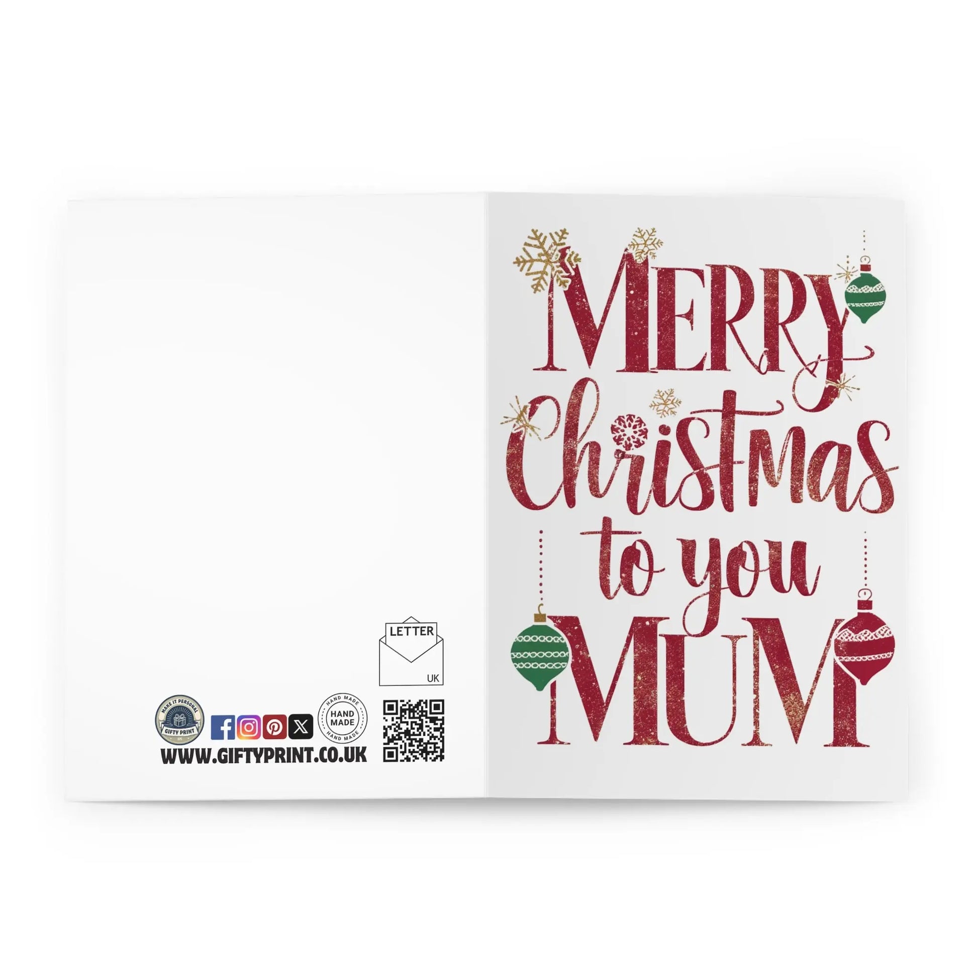 Mum Christmas Card, Celebrate the holiday season with our beautiful Christmas card, wishing your mum a Merry Christmas! Show her how much you appreciate her with this heartfelt message. Spread love and joy with this special greeting.