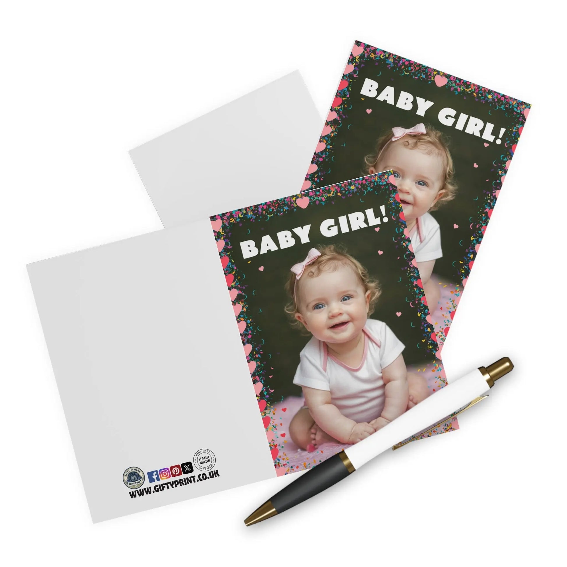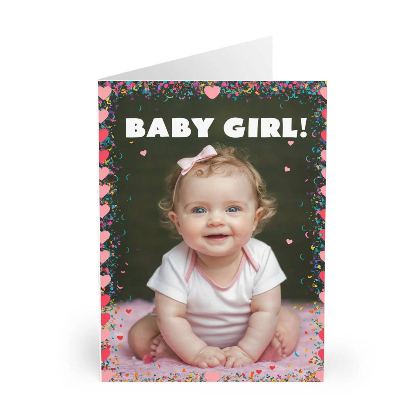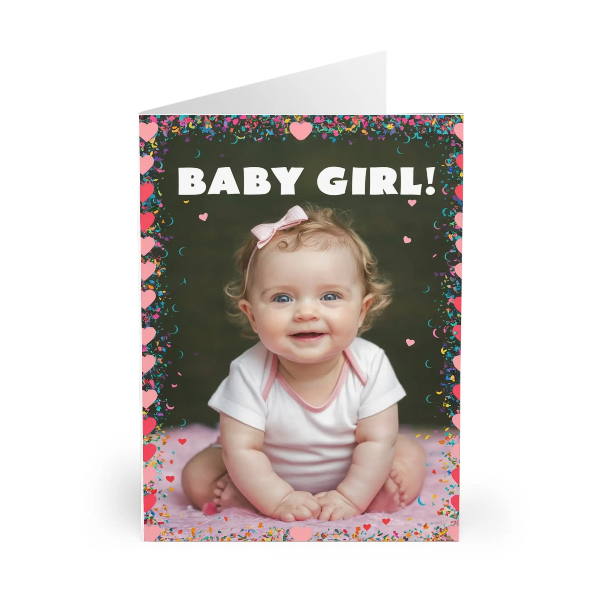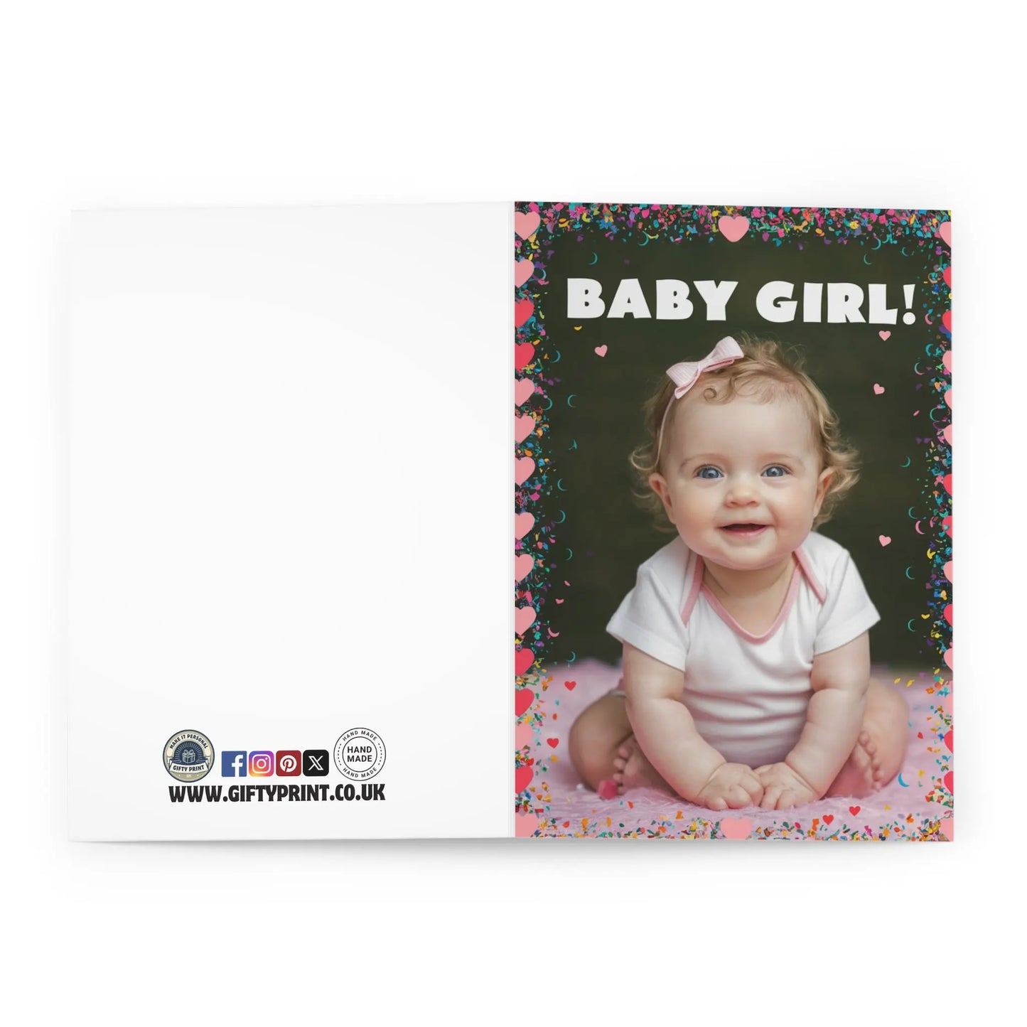 New Baby Card, Welcome the newest addition with this cute Baby Girl Card featuring a heart frame design. Celebrate their arrival with love and charm.