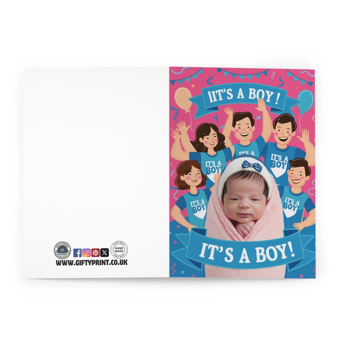 New Baby Card, Welcome the new baby boy with this adorable card! Featuring a charming pink and blue design, it's perfect for celebrating this special occasion. So don't wait, send your congratulations and love with this cute and playful card!