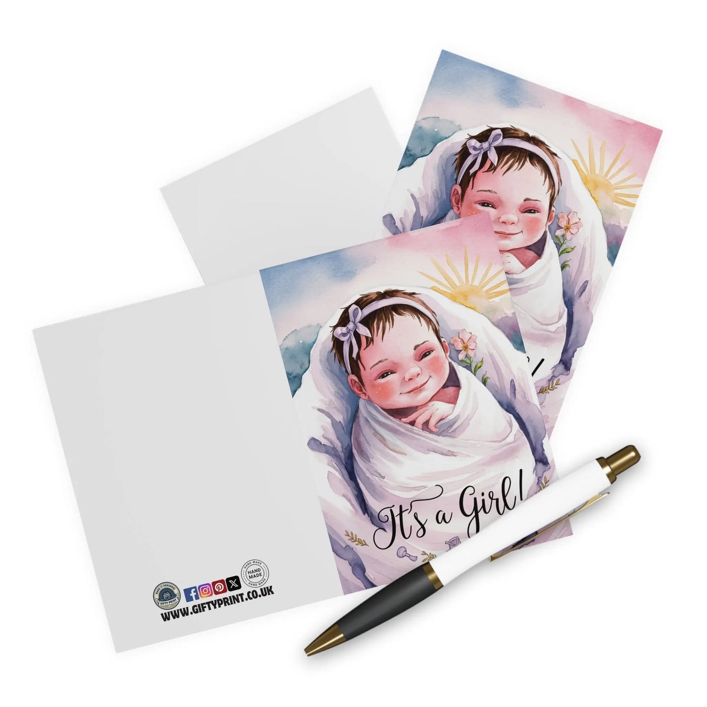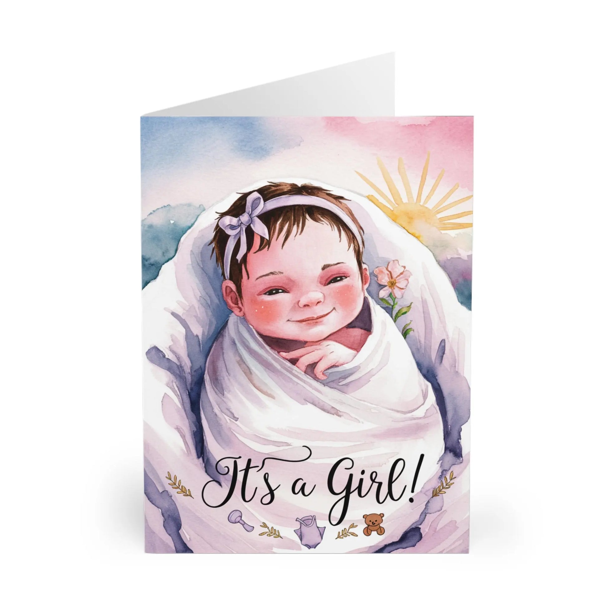 New Baby Card, Celebrate the new bundle of joy with our New Baby Girl Cards! Congratulate the proud parents with our It's A Girl design that exudes joy and happiness. These cards will definitely make them feel the love. Welcome the little one in style with this quirky and playful card.