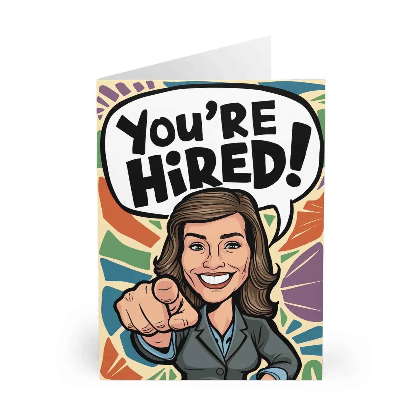 New Job Card Congratulations You're Hired Suited Woman