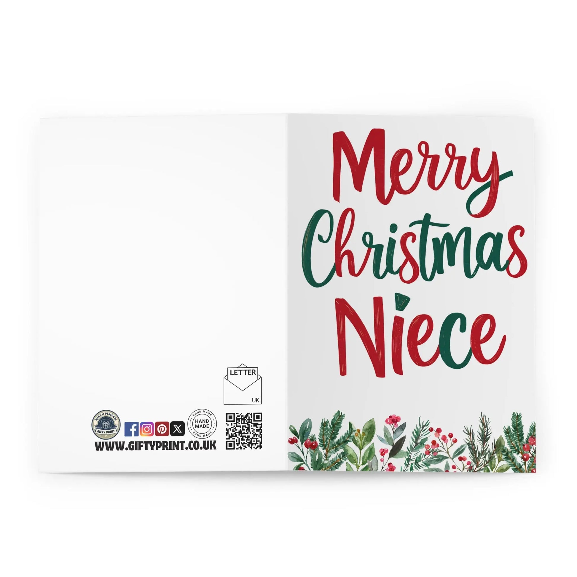 Niece Christmas Card, Spread joy and love to your niece with our Christmas Card Merry Christmas Niece Floral! Featuring a beautiful floral design and heartfelt message, this card will surely make her holiday extra special. Show her your love and send your warmest wishes with this perfect holiday greeting.