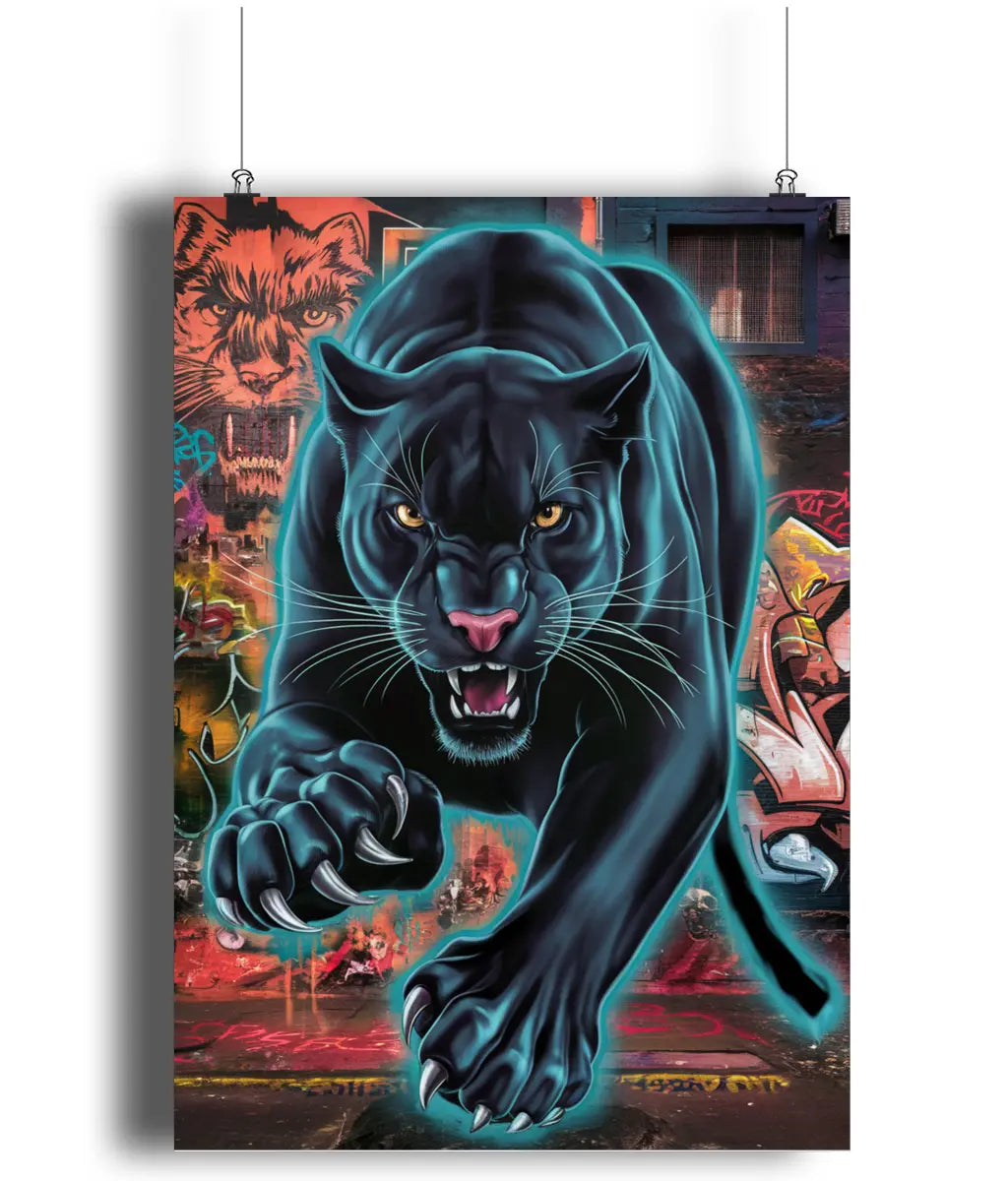 Panther Art Print, Unleash your wild side with this Fierce Graffiti Panther Modern Art print. Bold, colourful graffiti-style design will add a touch of rebellious flair to any space. Perfect for showing off your unique personality.