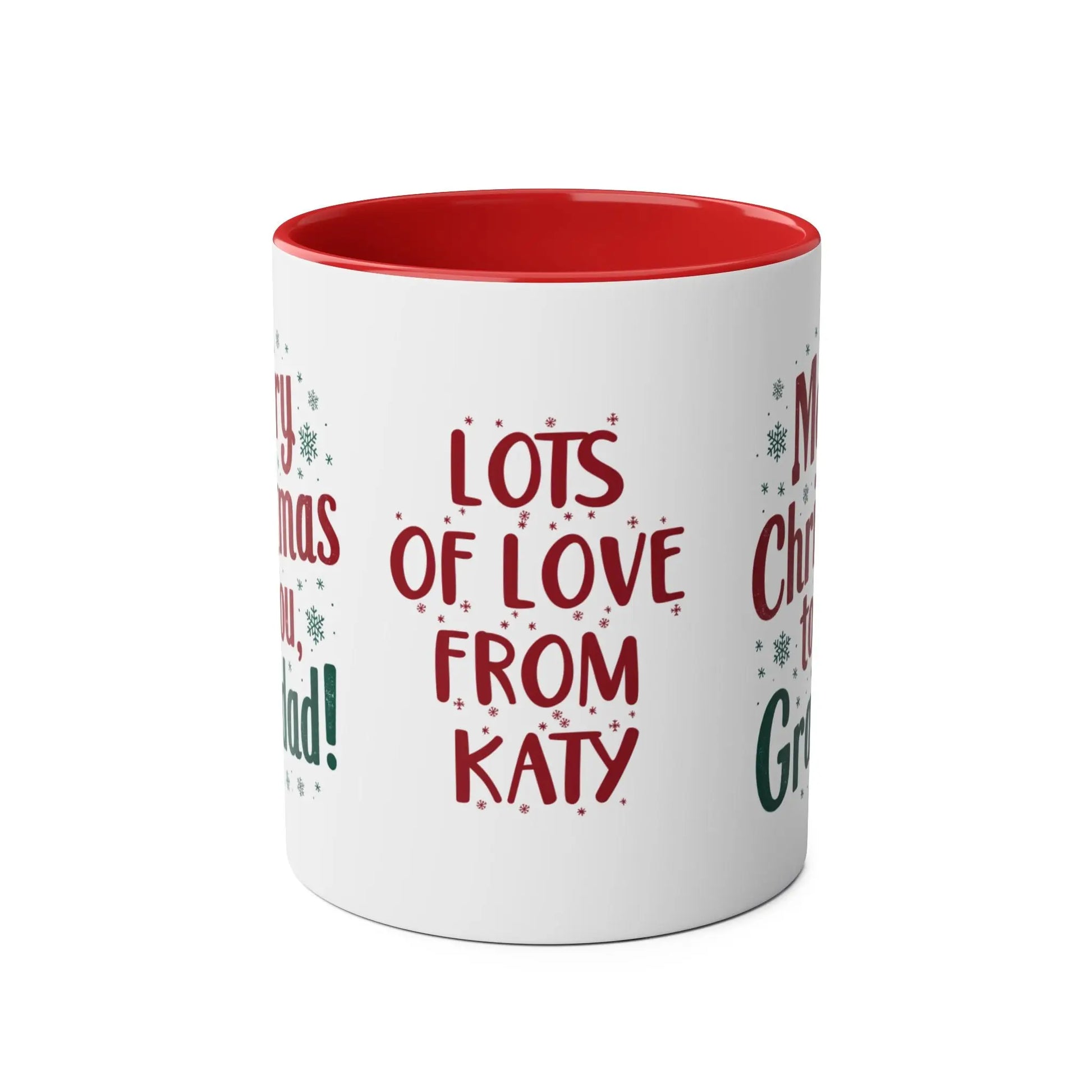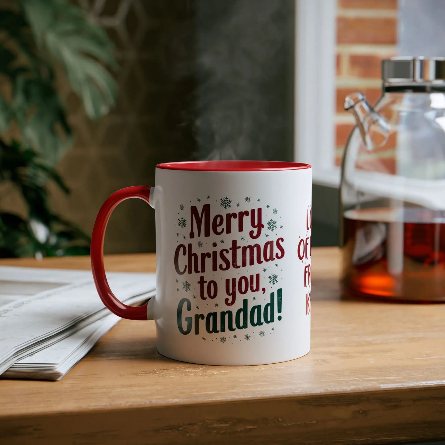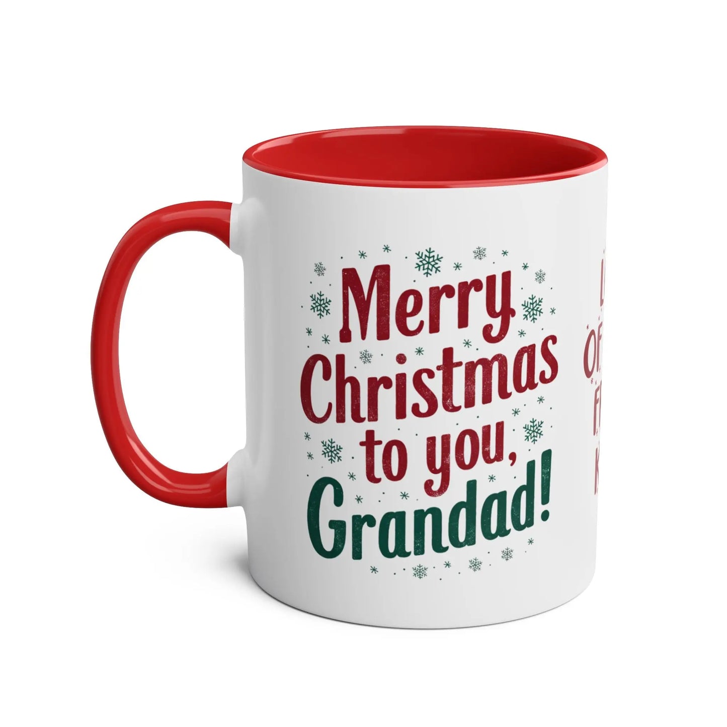 Personalised Christmas Mug, Surprise Grandad with a special mug this Christmas! Our Personalised Grandad Red Christmas Mug is the perfect gift to show your appreciation and love. With its festive red design and customisable personalisation, this mug will bring warmth and joy to every cup of coffee or tea.