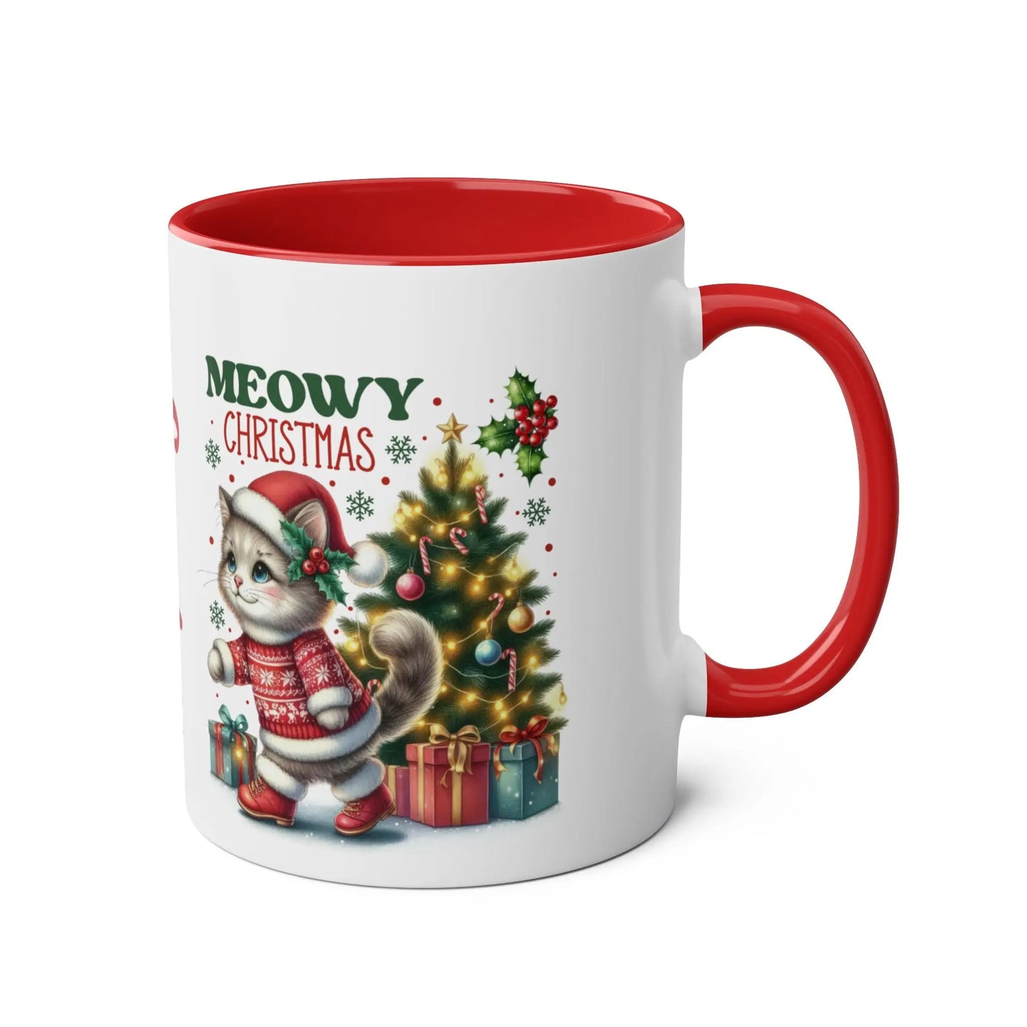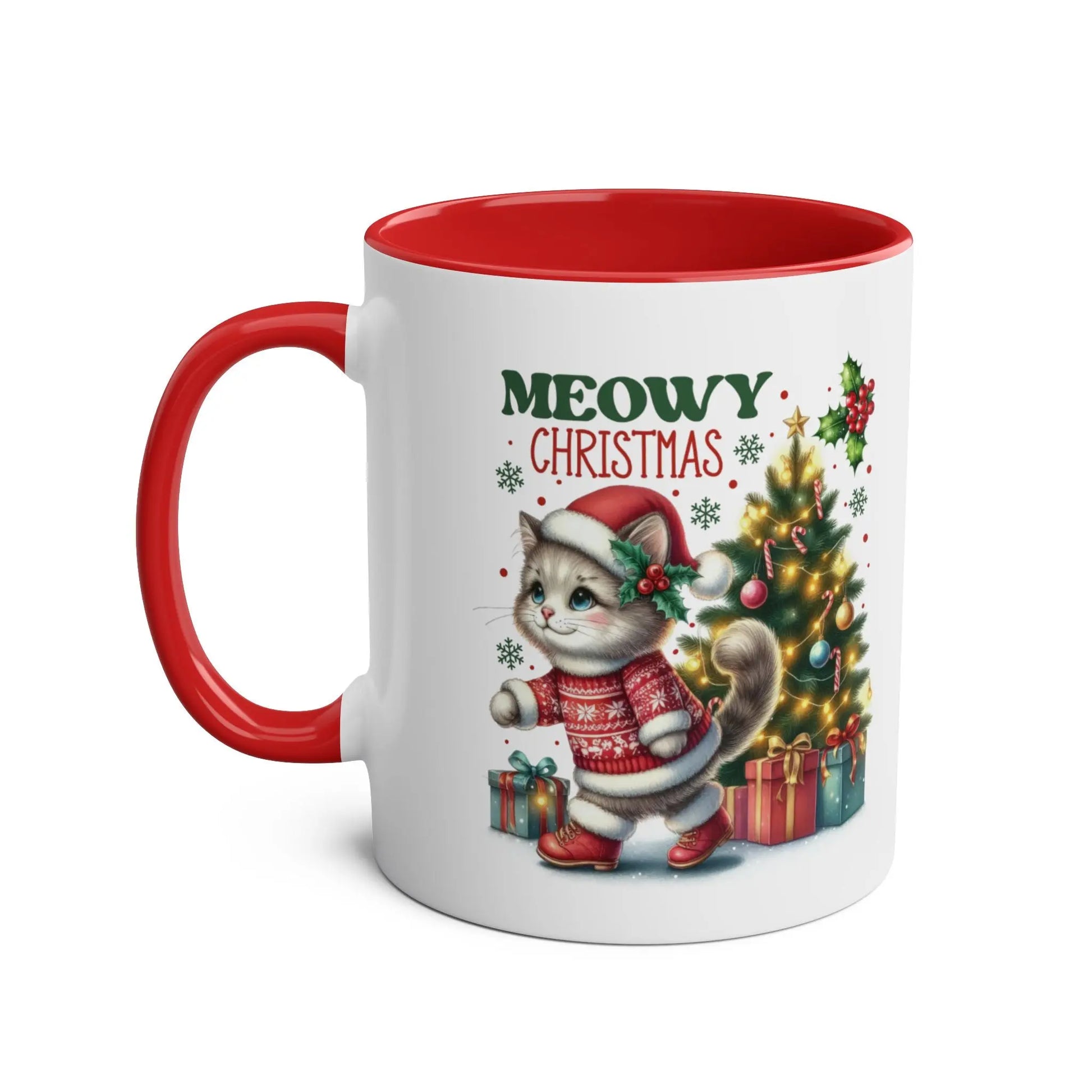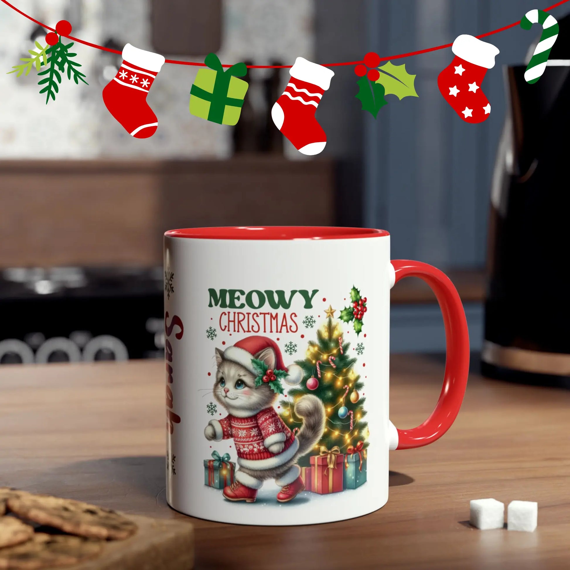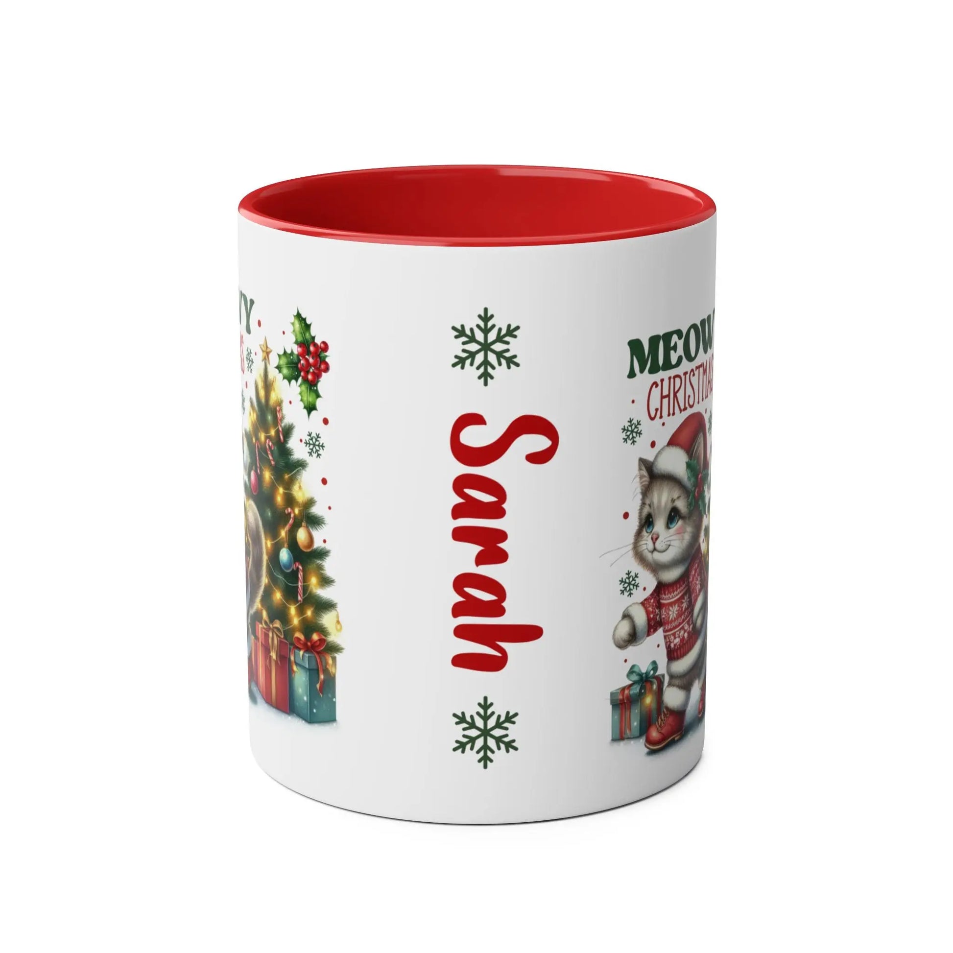 Personalised Christmas mug, Make your Christmas extra merry and bright with our Meowy Christmas Cat Personalised Red Christmas Mug! Featuring a festive design and customizable with your cat's name, this ceramic mug is perfect for your morning coffee or hot cocoa by the fireplace. (Purrfect for cat lovers, too!)