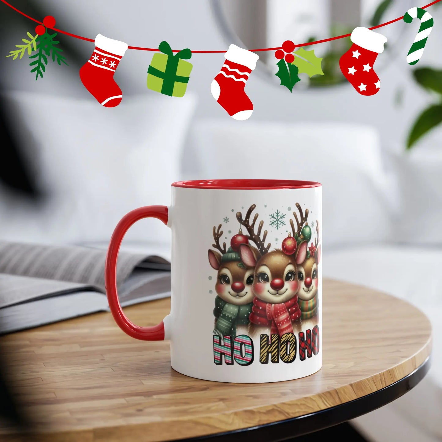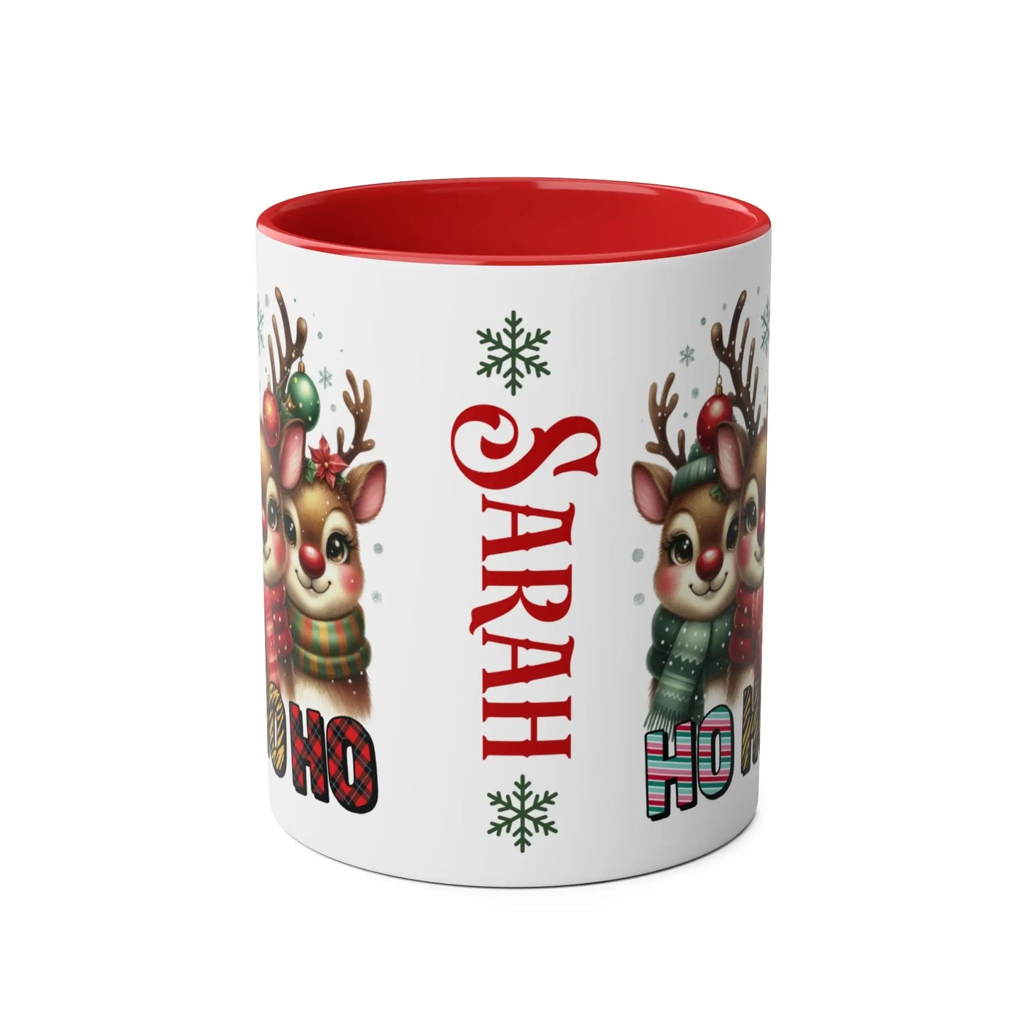 Personalised Christmas mug Red Christmas Deers Ho Ho Ho