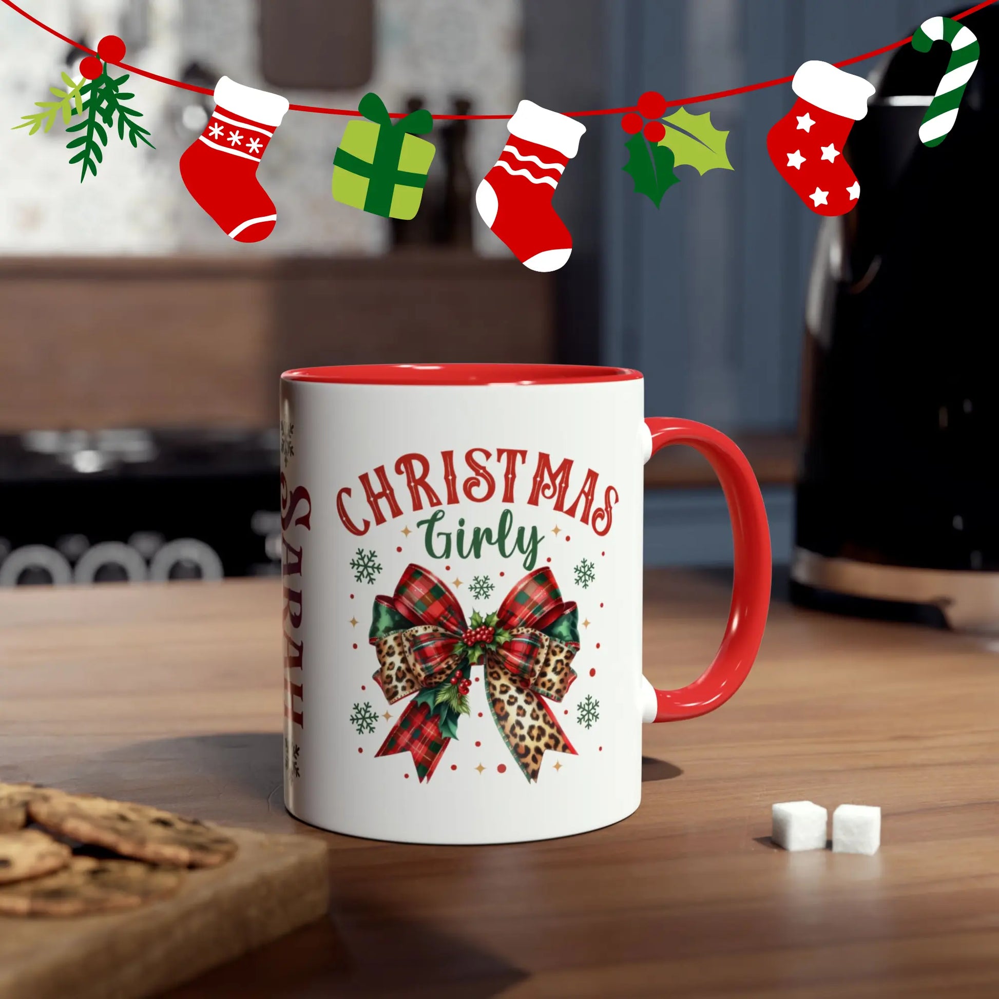 Personalised Christmas mug, Spice up your holiday cheer with our Red Christmas Girly Personalised Christmas Mug! A perfect gift for yourself or your loved ones, this mug adds a personal touch to your morning coffee (or hot cocoa)! Add a playful touch to your Christmas season with this fun and quirky mug. Ho ho ho!