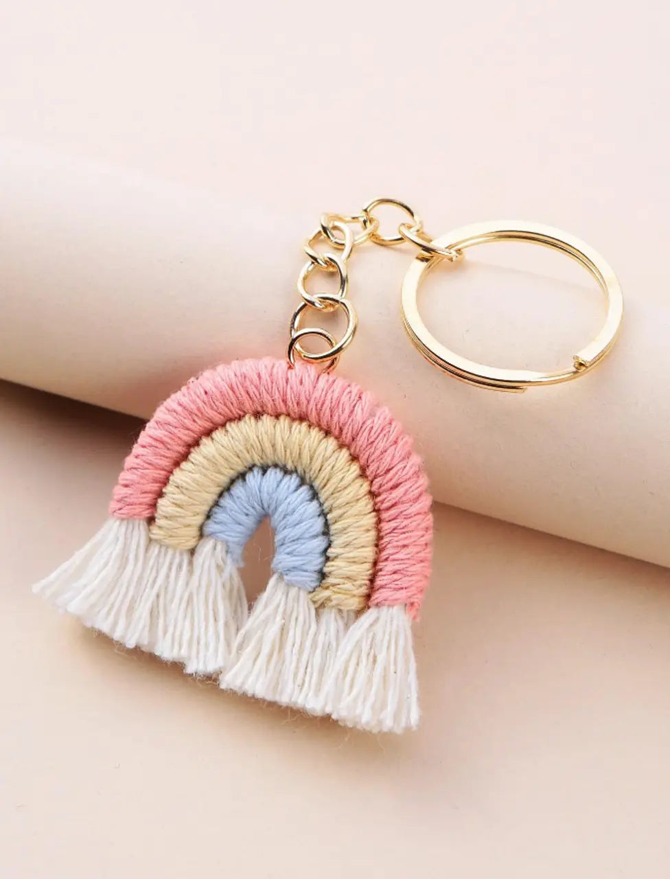 Rainbow Keyring, Add a pop of colour to your keys with our Rainbow Tassels Woollen Keyring Key Charm. Perfect for adding a touch of fun to your everyday routine, this key charm is both functional and stylish. Make a statement with our unique and playful design!