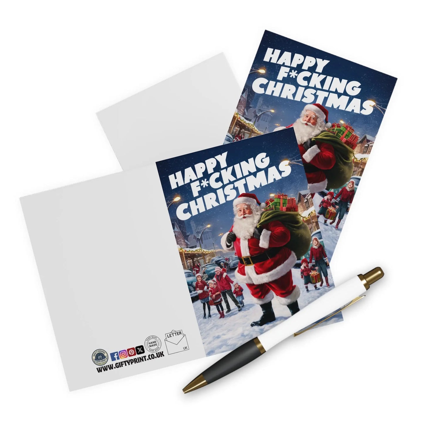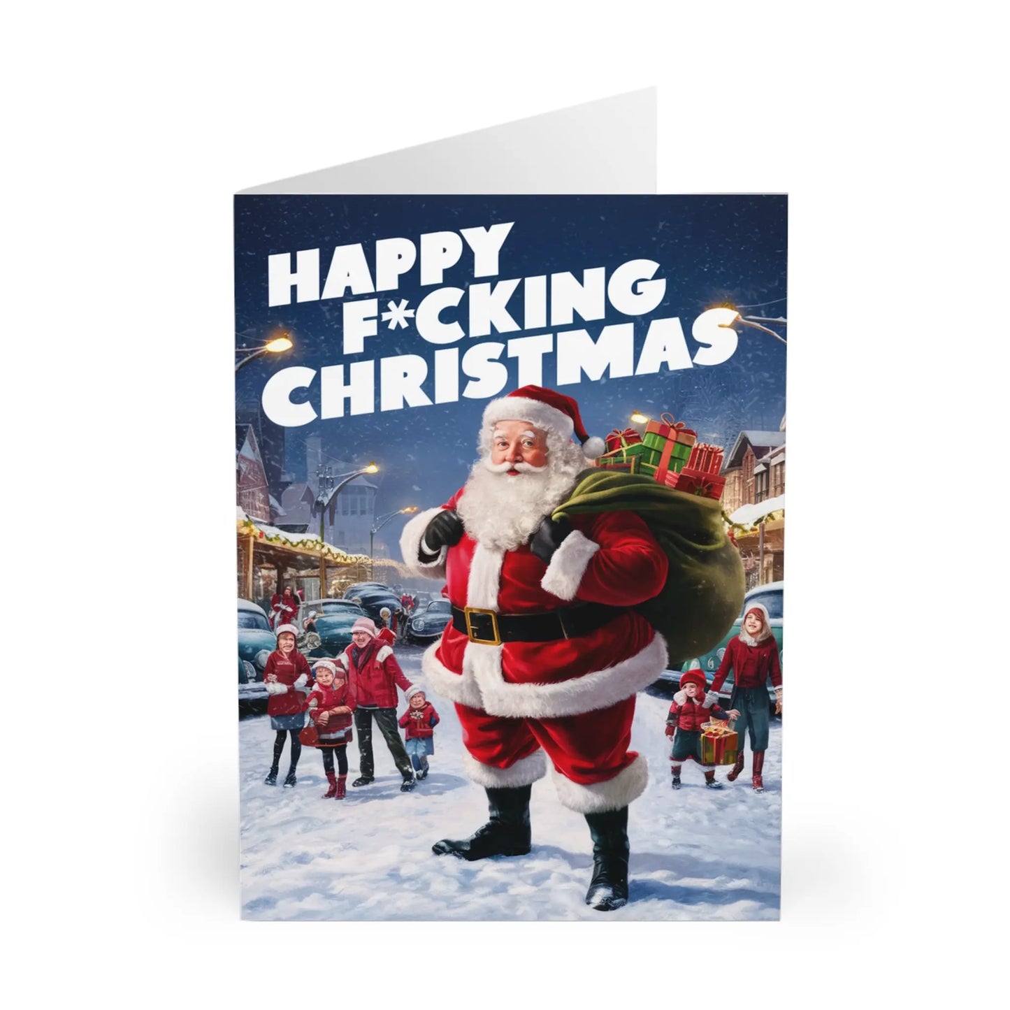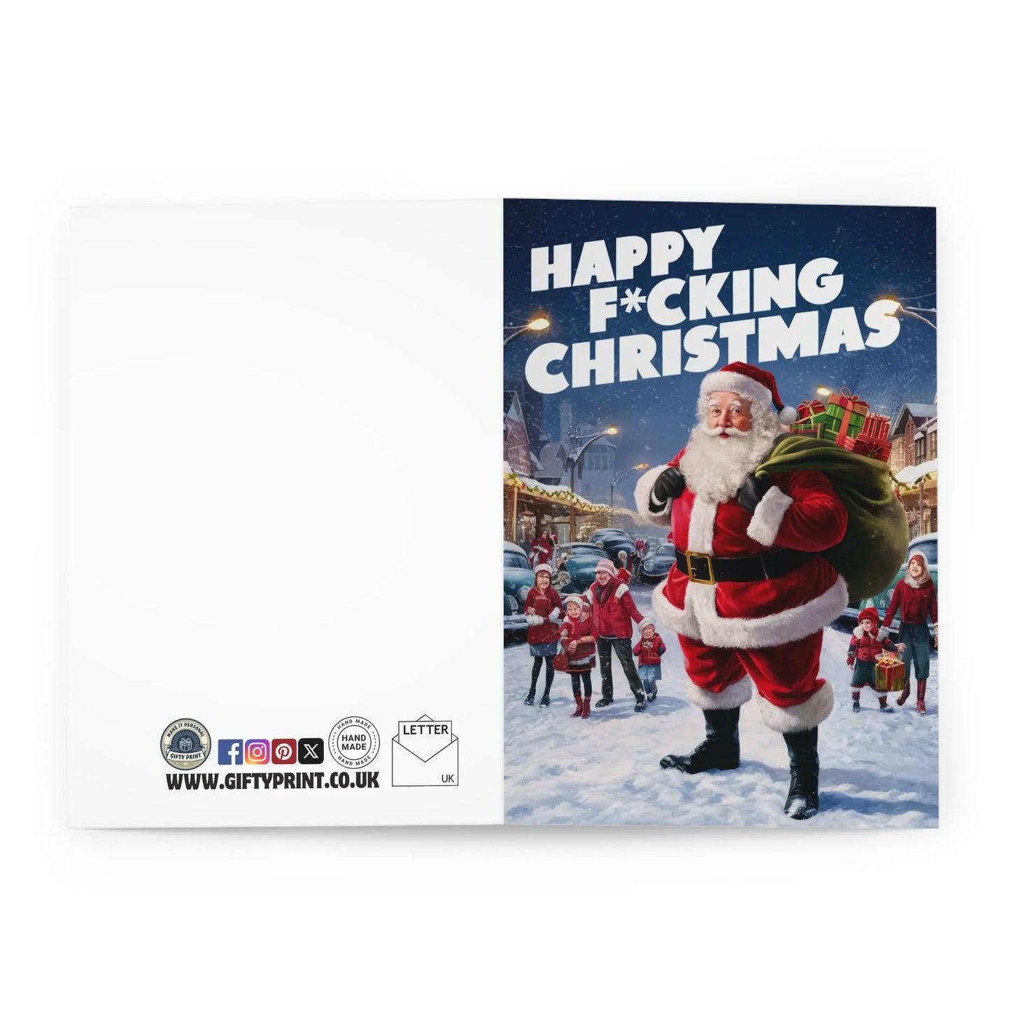 Rude Christmas Card, Surprise your loved ones with this Rude Christmas Card featuring Santa wishing them a Happy Fucking Christmas. Perfect for those with a sense of humor, this card will bring laughs and holiday cheer. Give the gift of laughter this holiday season with this quirky and fun card.