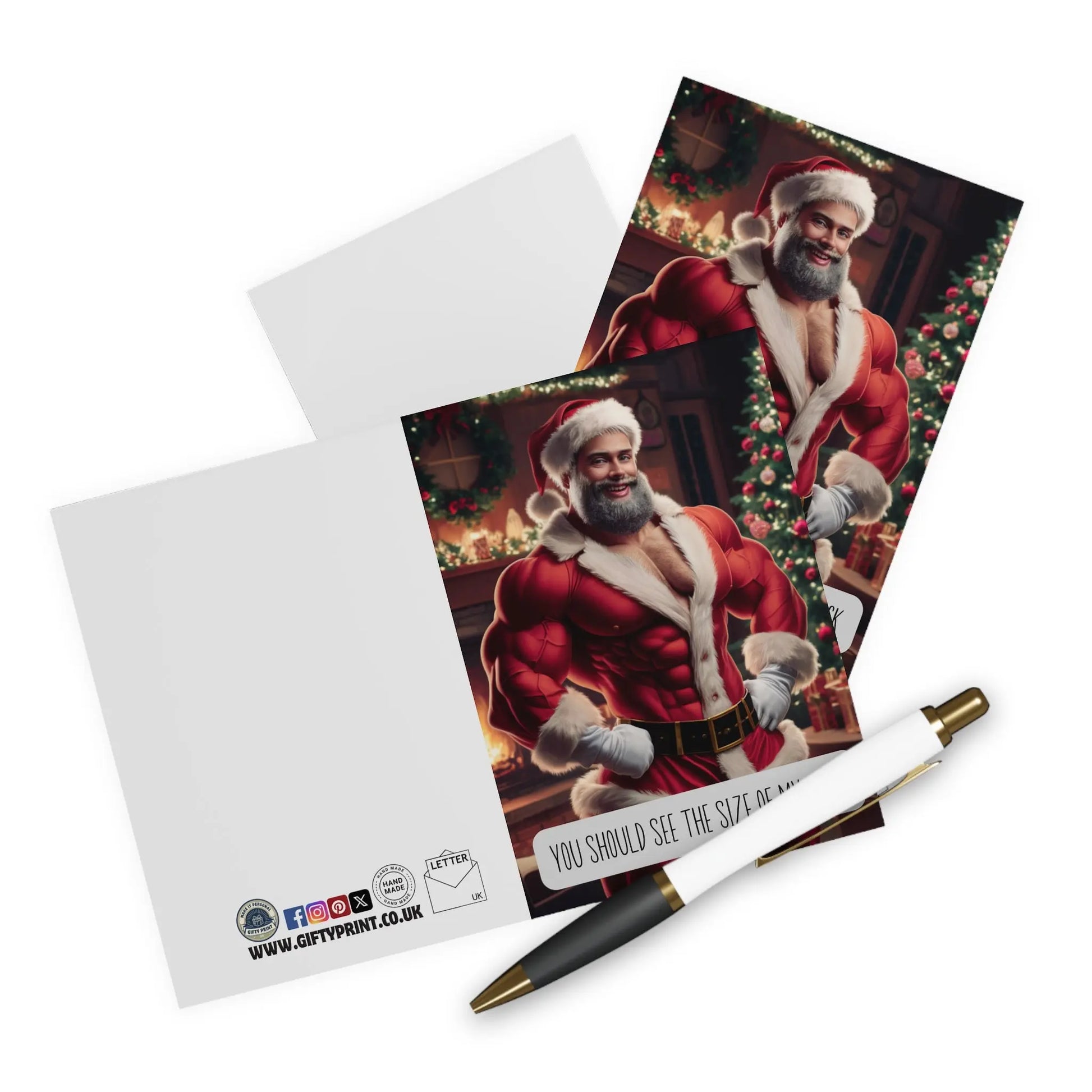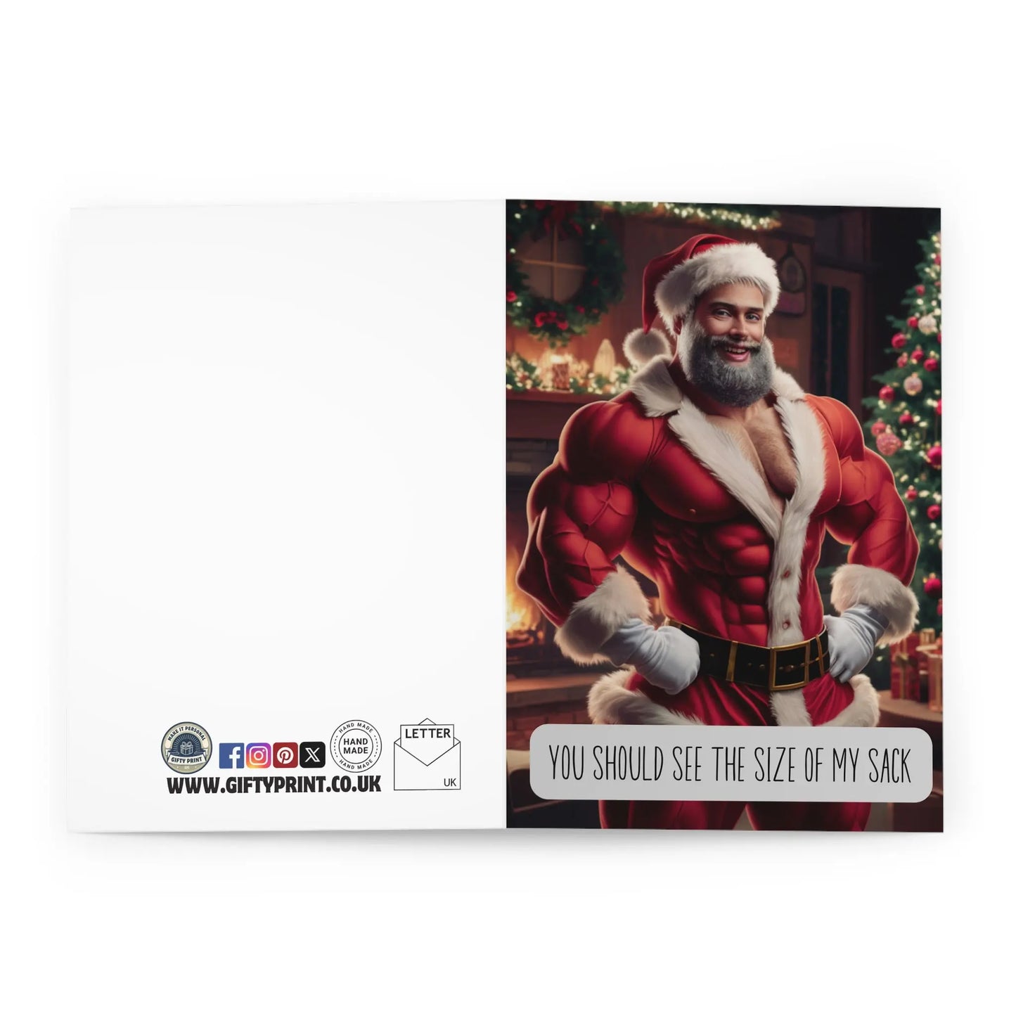 Rude Christmas Card, Get ready for some holiday cheer with this Rude Christmas Card featuring Santa and a cheeky message about the size of his sack. Perfect for those with a playful sense of humour. Make your loved ones laugh with this quirky card!