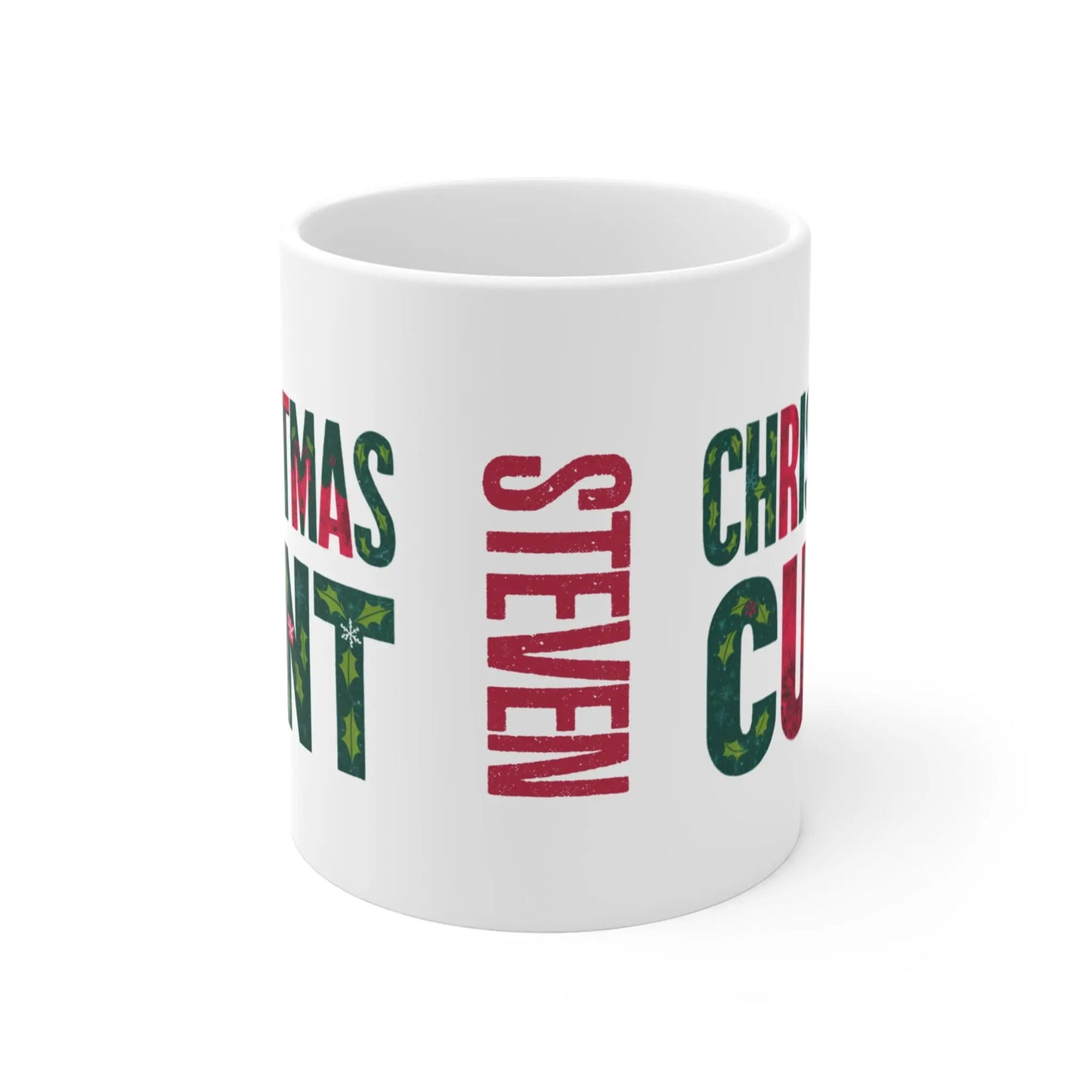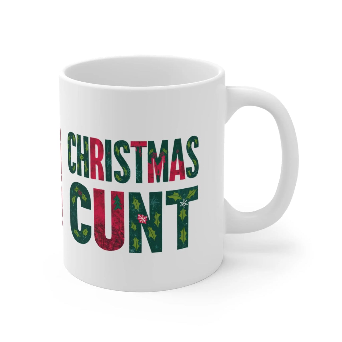 Rude Christmas Mug, Add some humour and edge to your holiday mornings with the Personalised Rude Christmas Cunt Mug. Featuring a personalised design and a playful R-rated name, this mug is sure to bring a smile to your face. Start your day off with a little attitude and a whole lot of caffeine with this unique mug.
