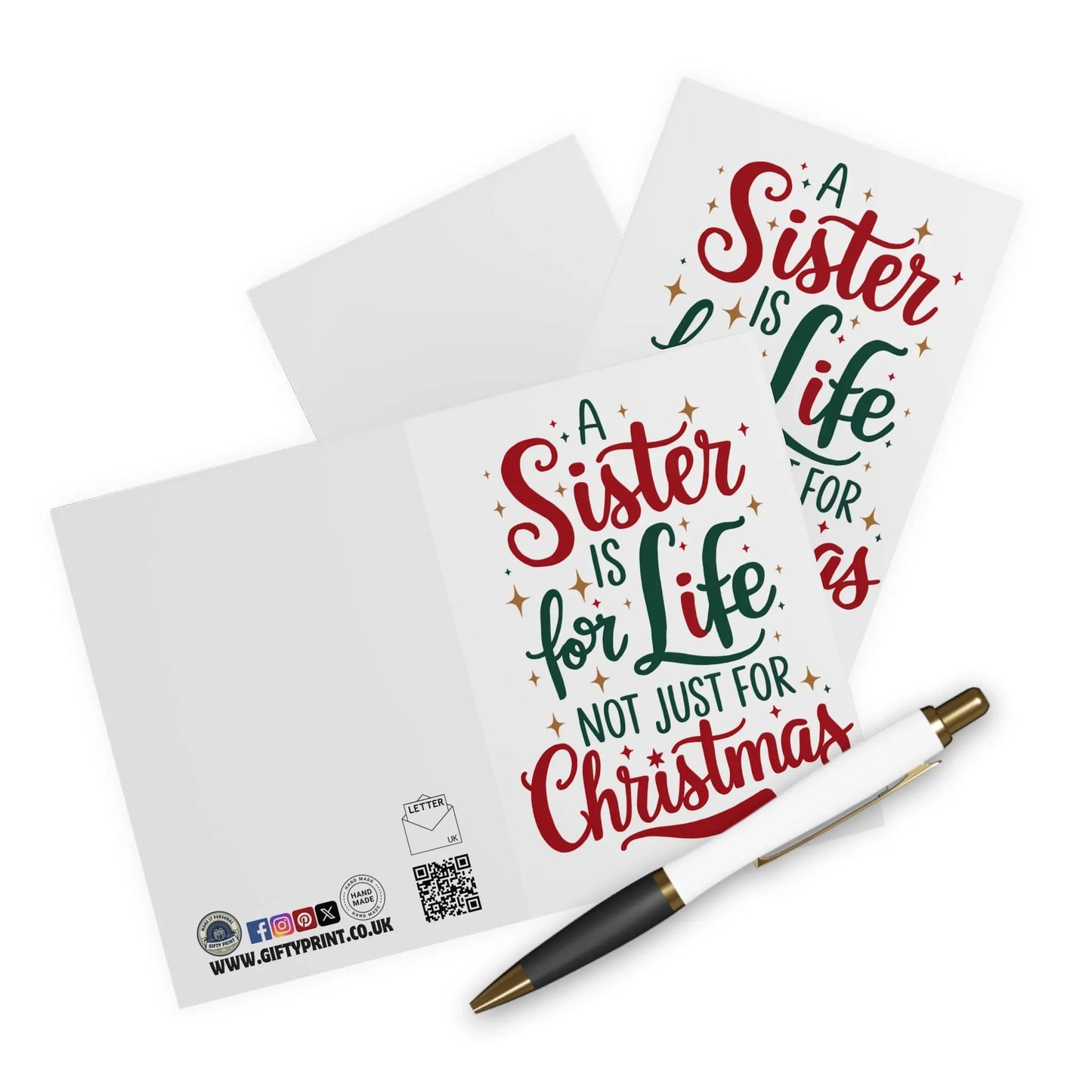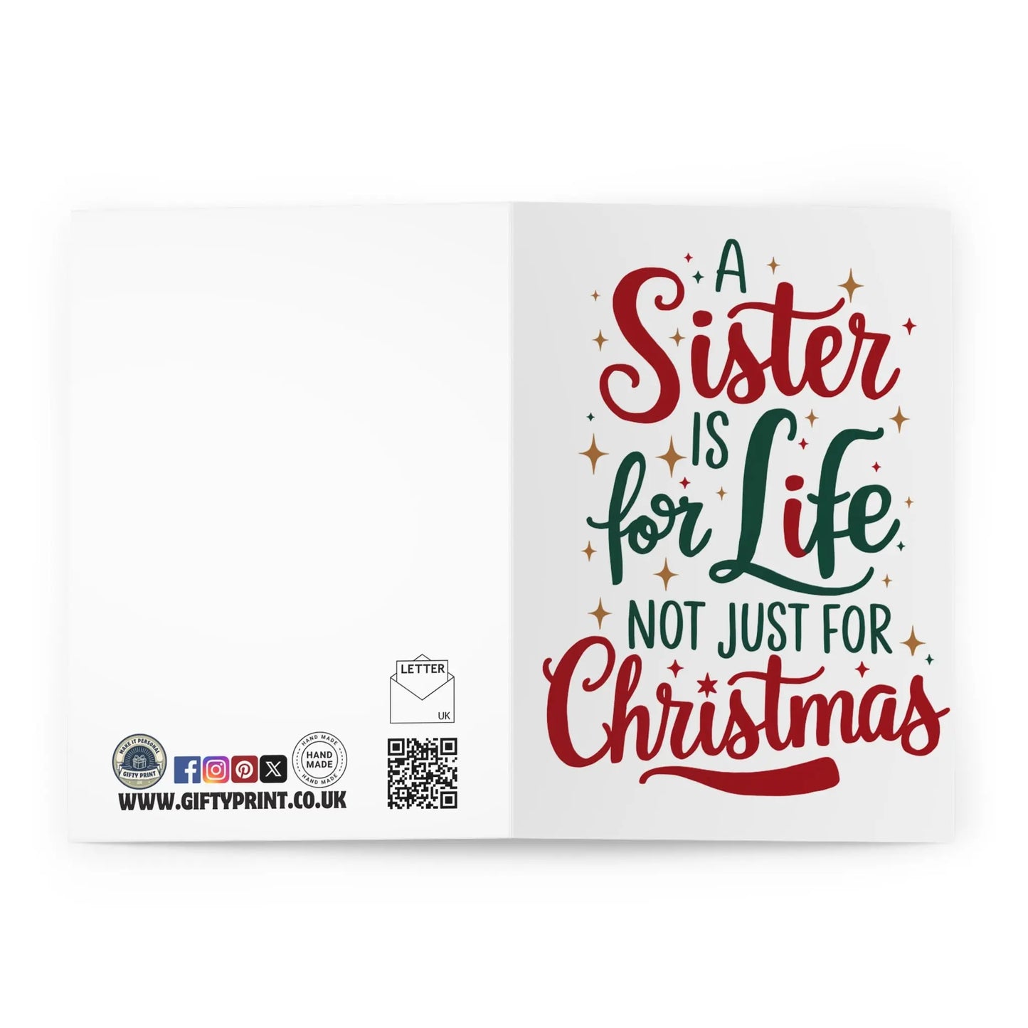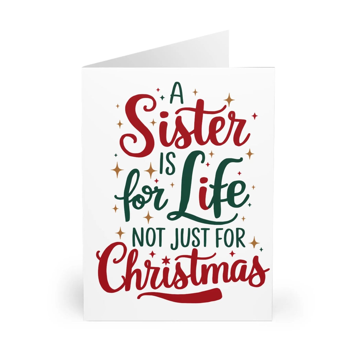Sister Christmas Card, Show your sister how much she means to you with our "A Sister Is For Life Not Just for Christmas" Christmas card. Perfect for the holidays, this card features a heartfelt message that celebrates the special bond between siblings. Let your sister know that she's not just a sister for Christmas, but for life!