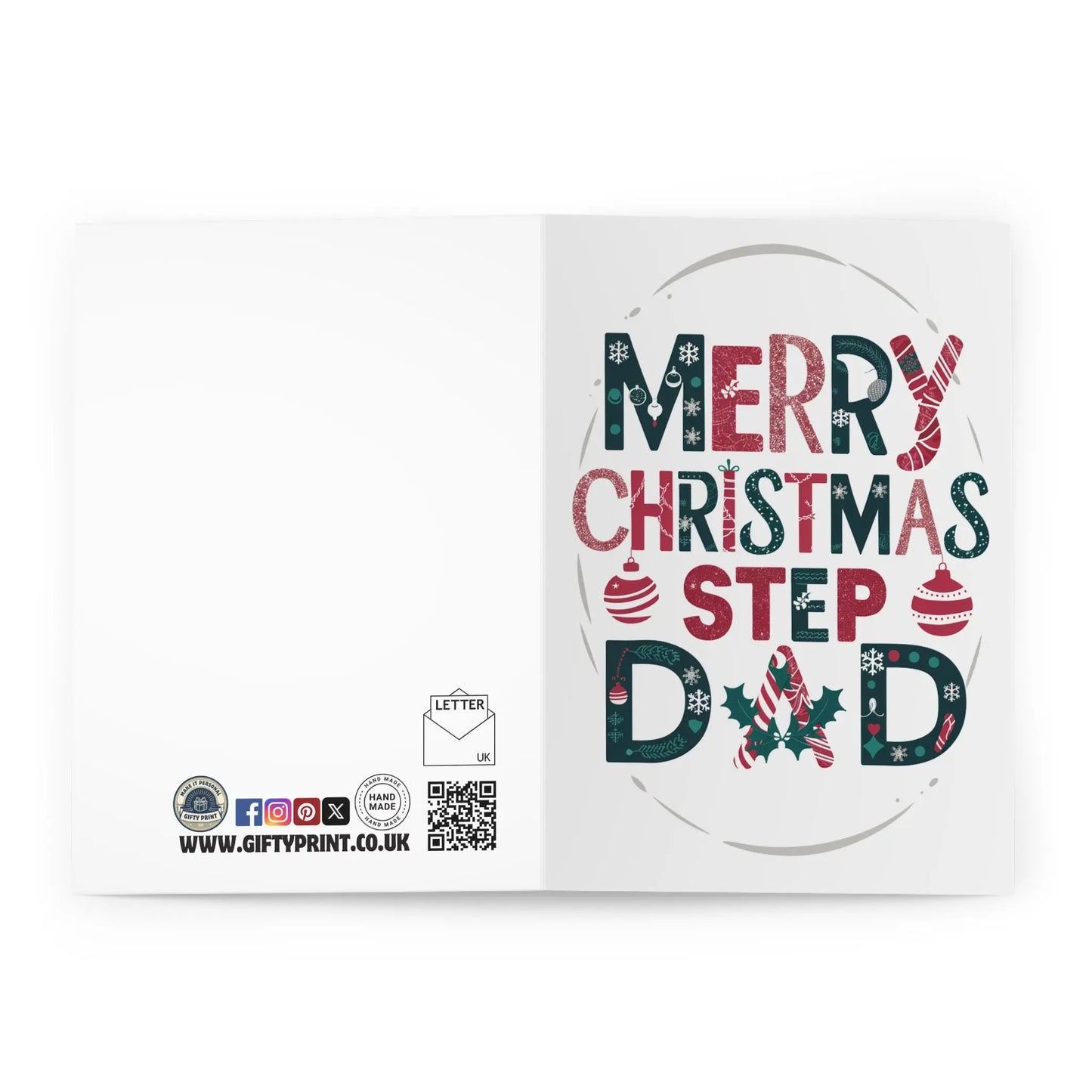 Step Dad Christmas Card, Celebrate the special bond between a step dad and his family with our Christmas card! The festive design and heartfelt message will bring joy and warmth this holiday season. Let your step dad know how much he means to you with this thoughtful and meaningful card.