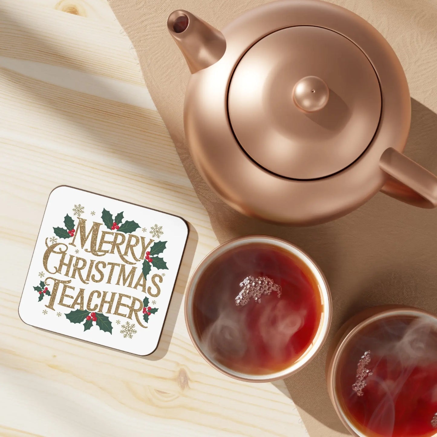 Product Details For Teacher Christmas Gift Merry Christmas Teachers Gold & Holly Coaster