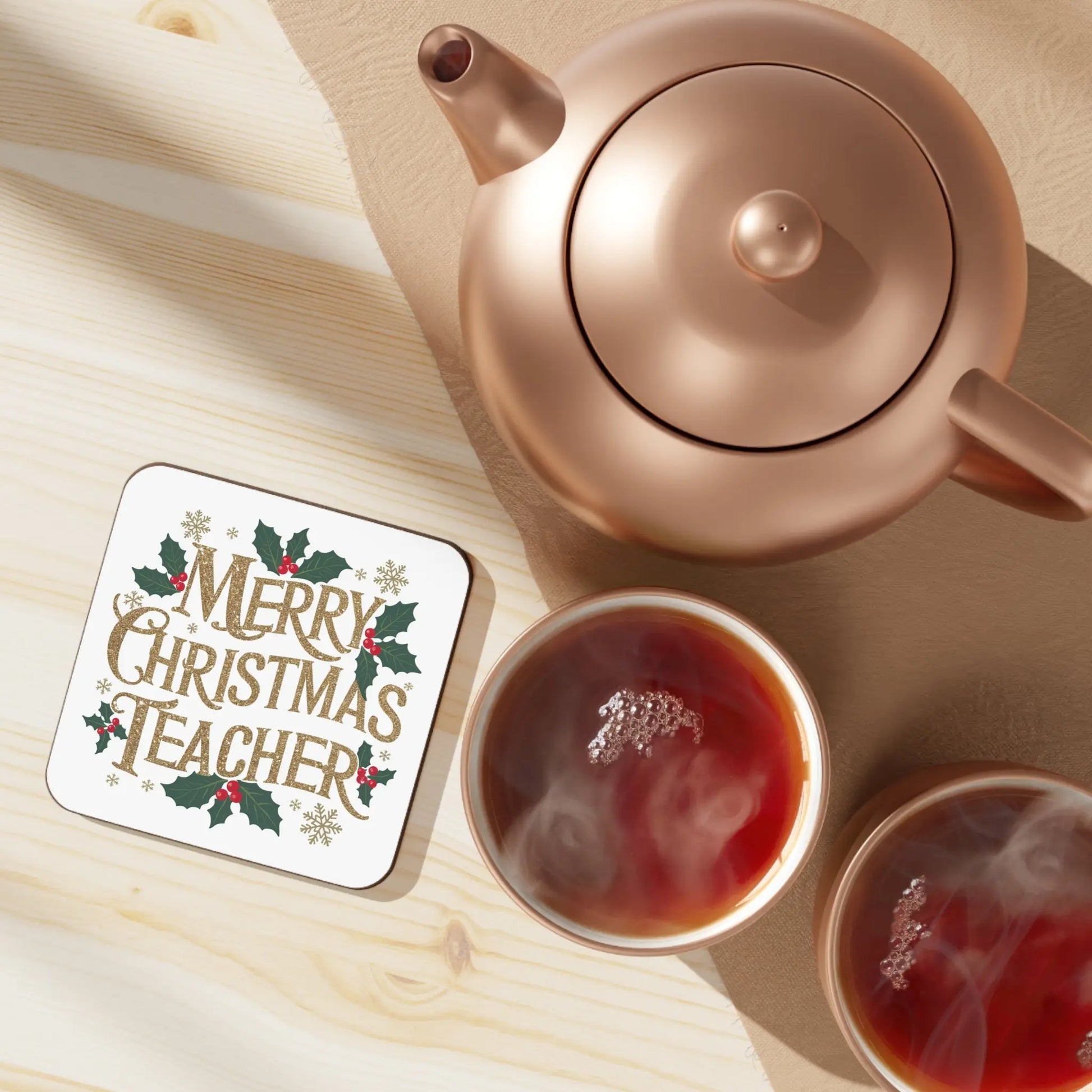 Teacher Christmas Gift Merry Christmas Teachers Gold & Holly Coaster