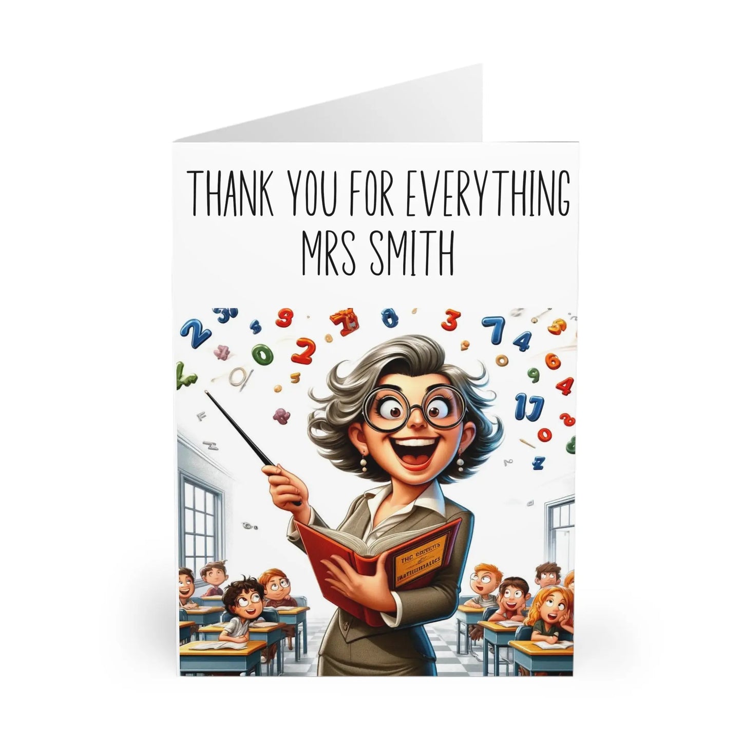 Teachers Card, Show your appreciation for the wonderful teachers in your life with our Teachers Thank You Card featuring a funny female cartoon teacher. This unique card is the perfect way to say thank you and make them smile. Let them know how much they mean to you in a fun and quirky way!